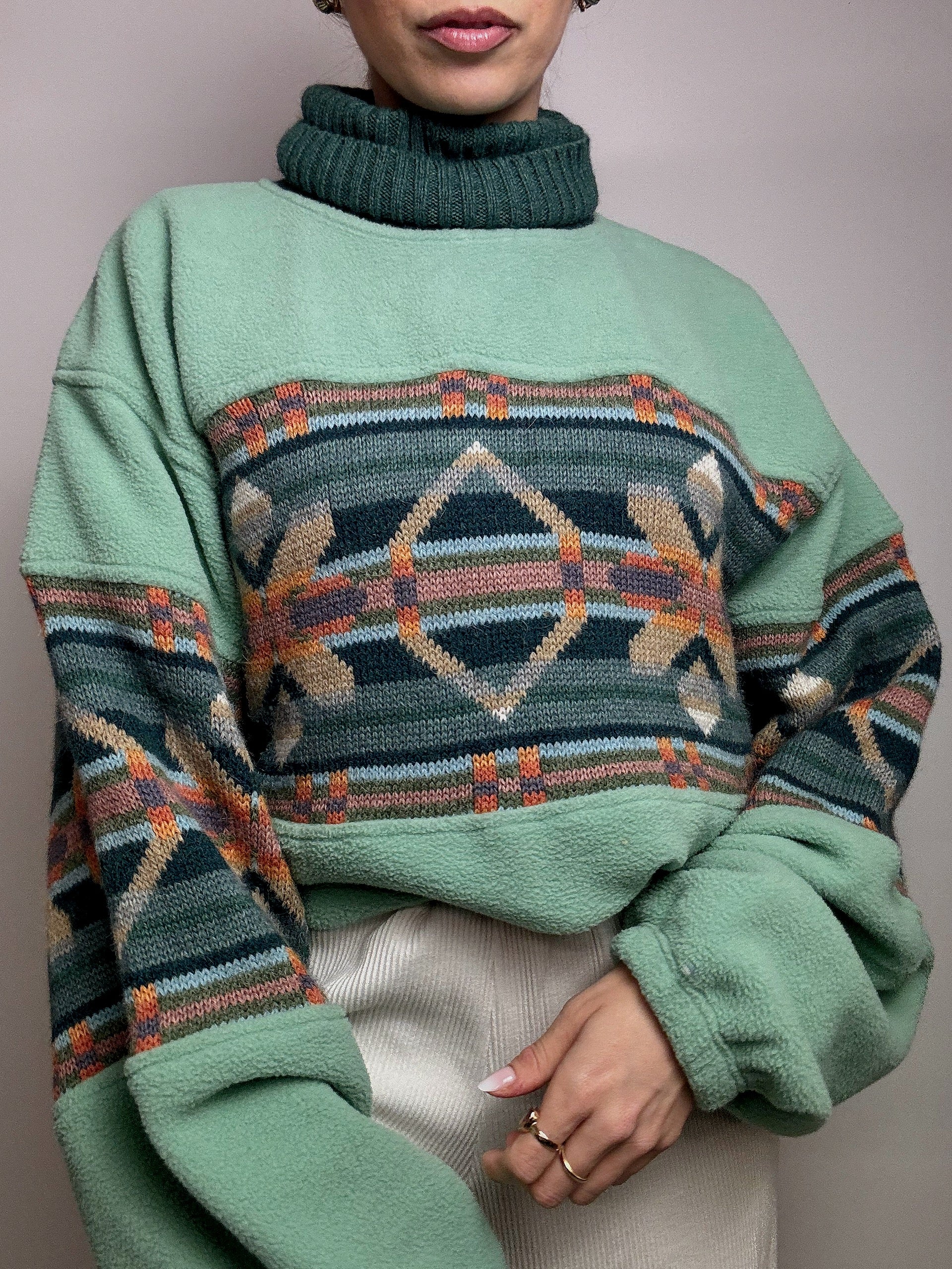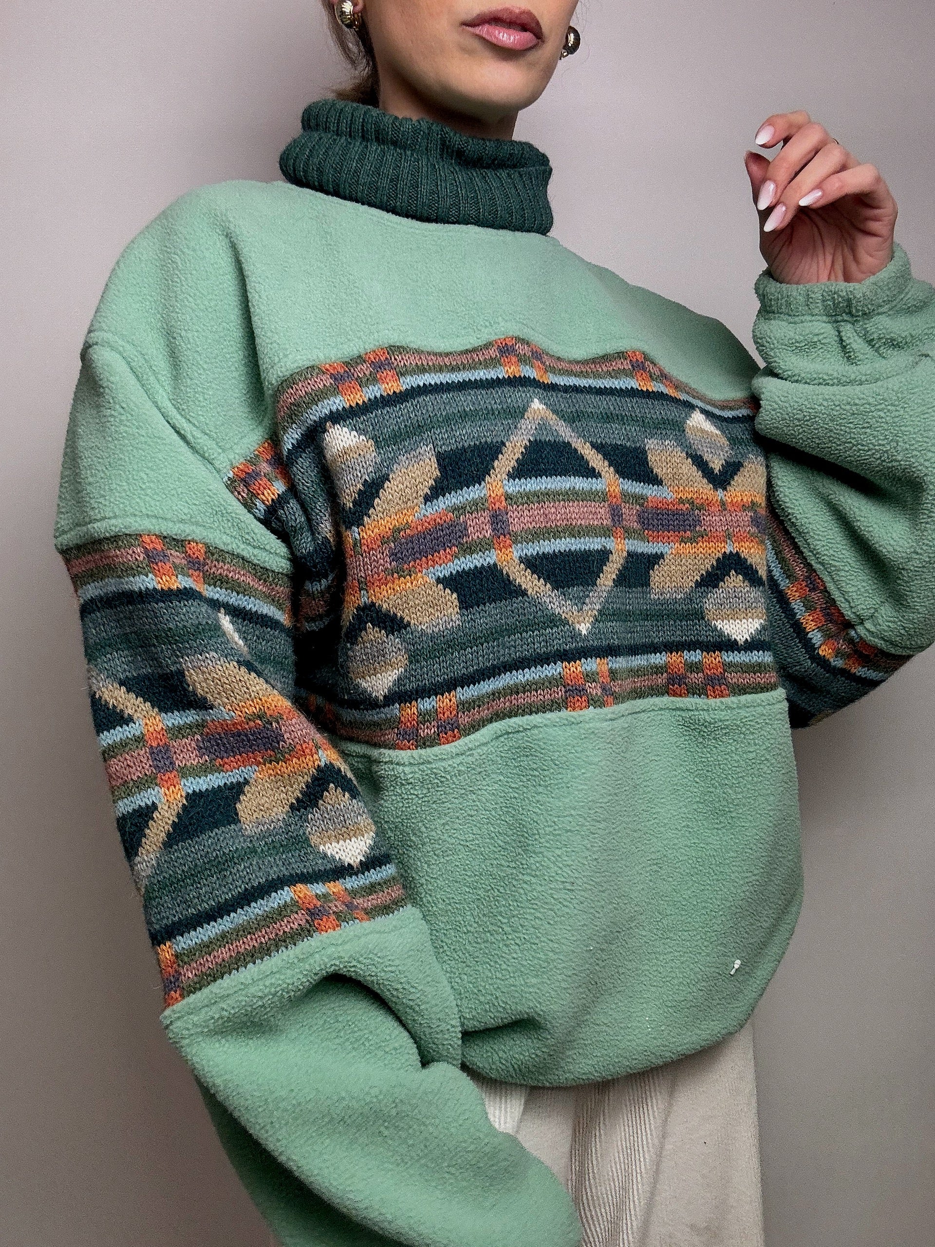 Avec son col en maille et ses graphismes devant et sur les manches en maille tissé, le reste du corp te tiendra bien au chaud grace aux fibres polaires !