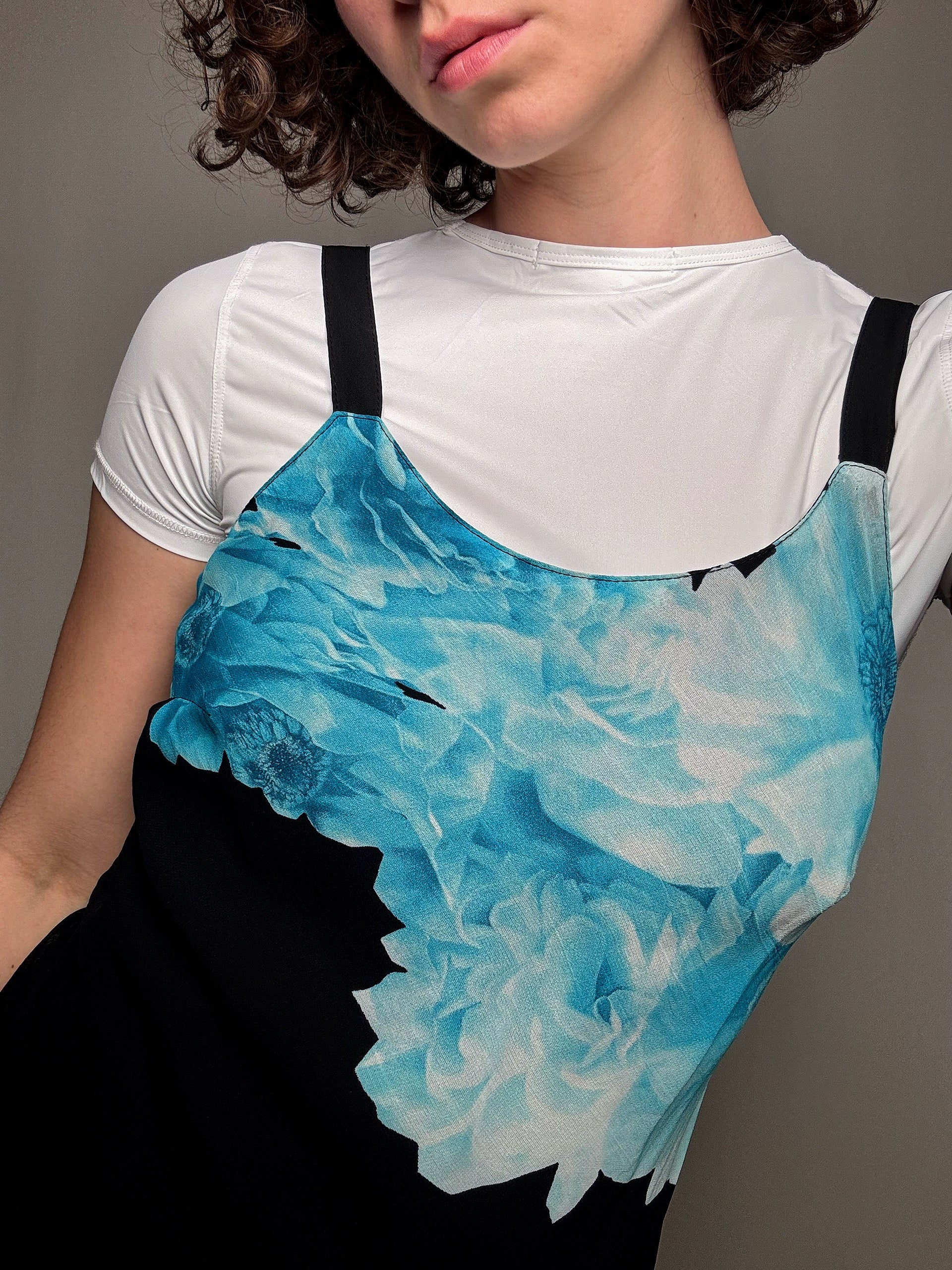 Robe noire avec fleurs bleues M vintage