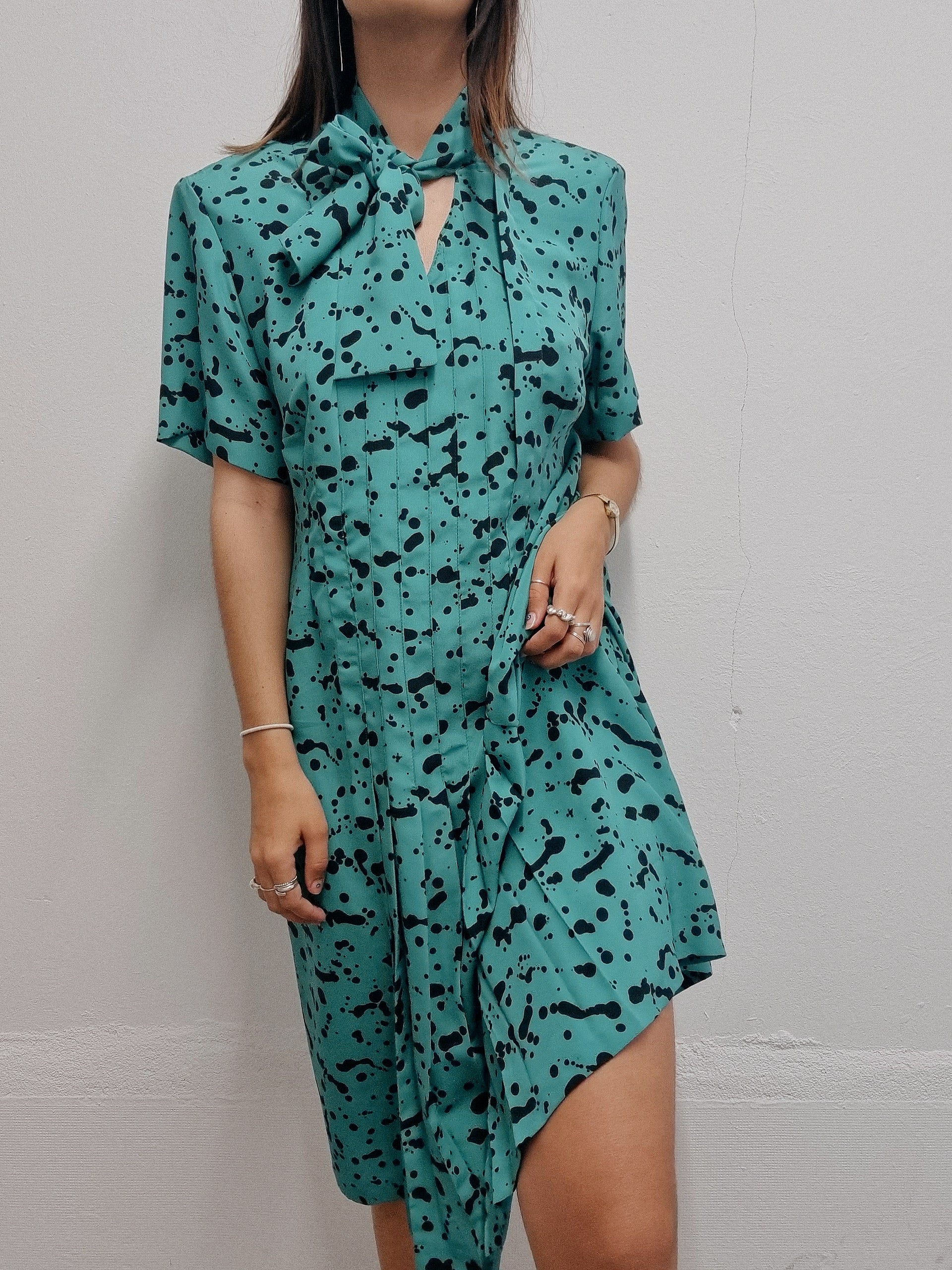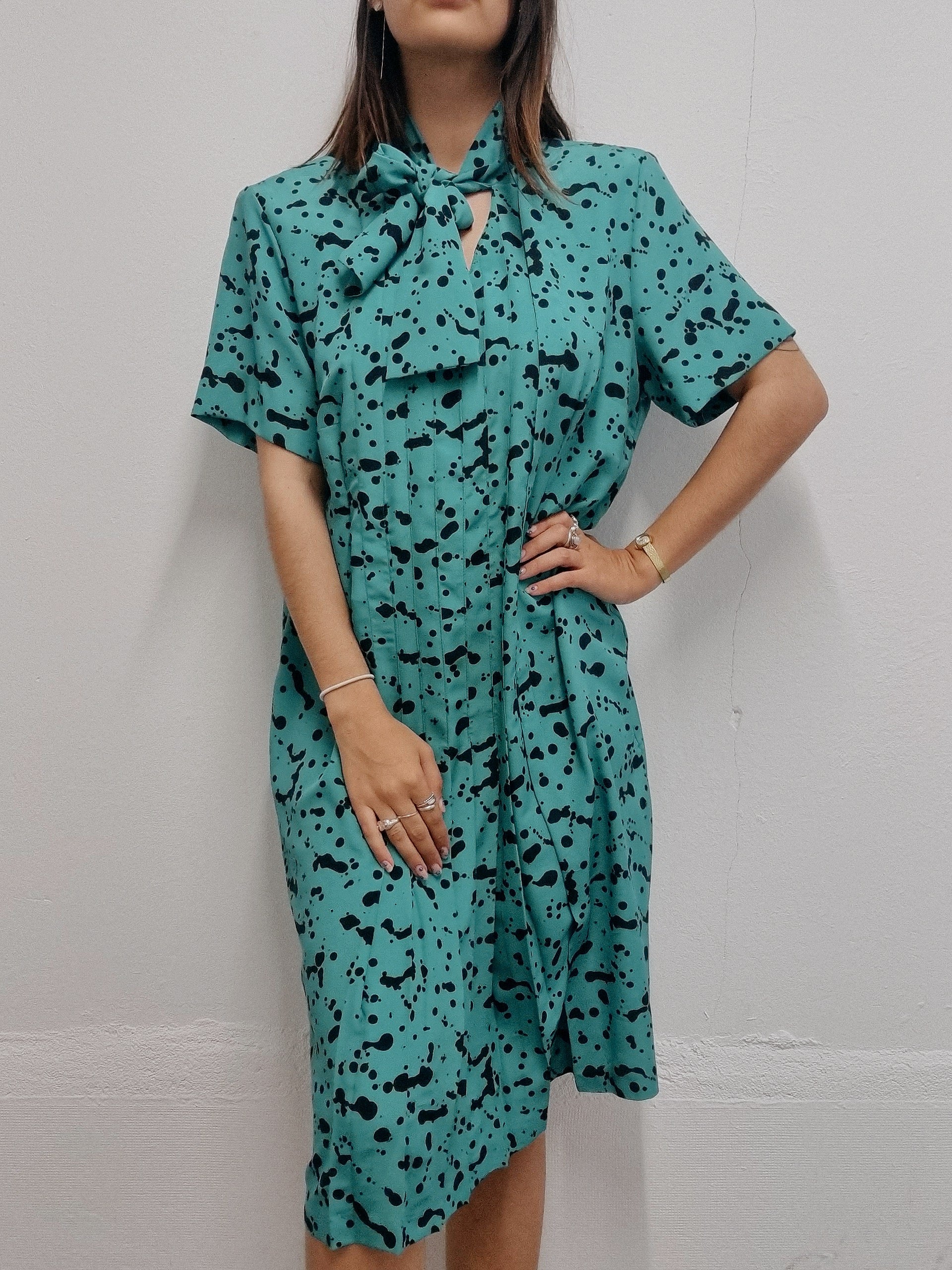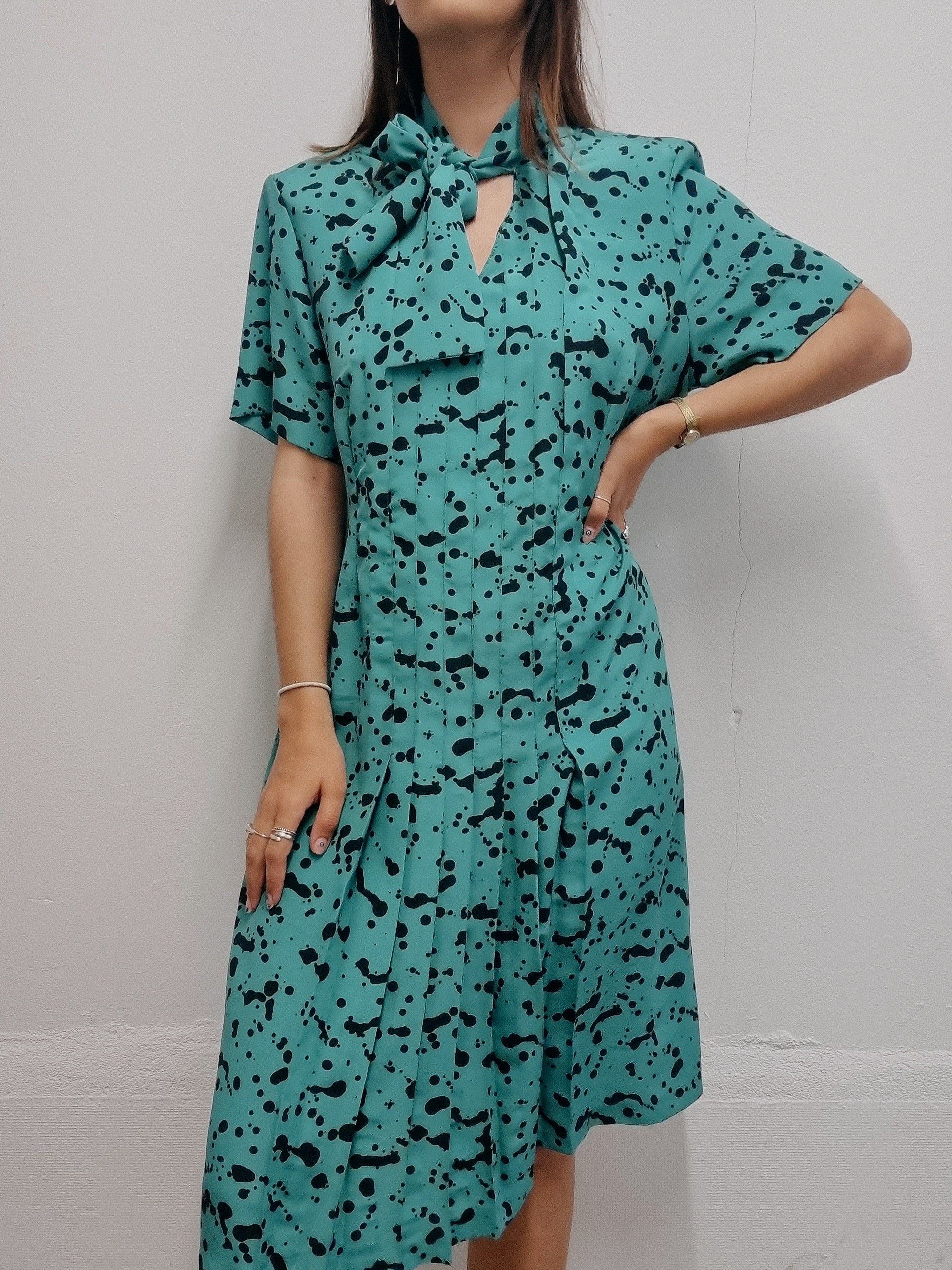 Robe vintage verte à fleurs M