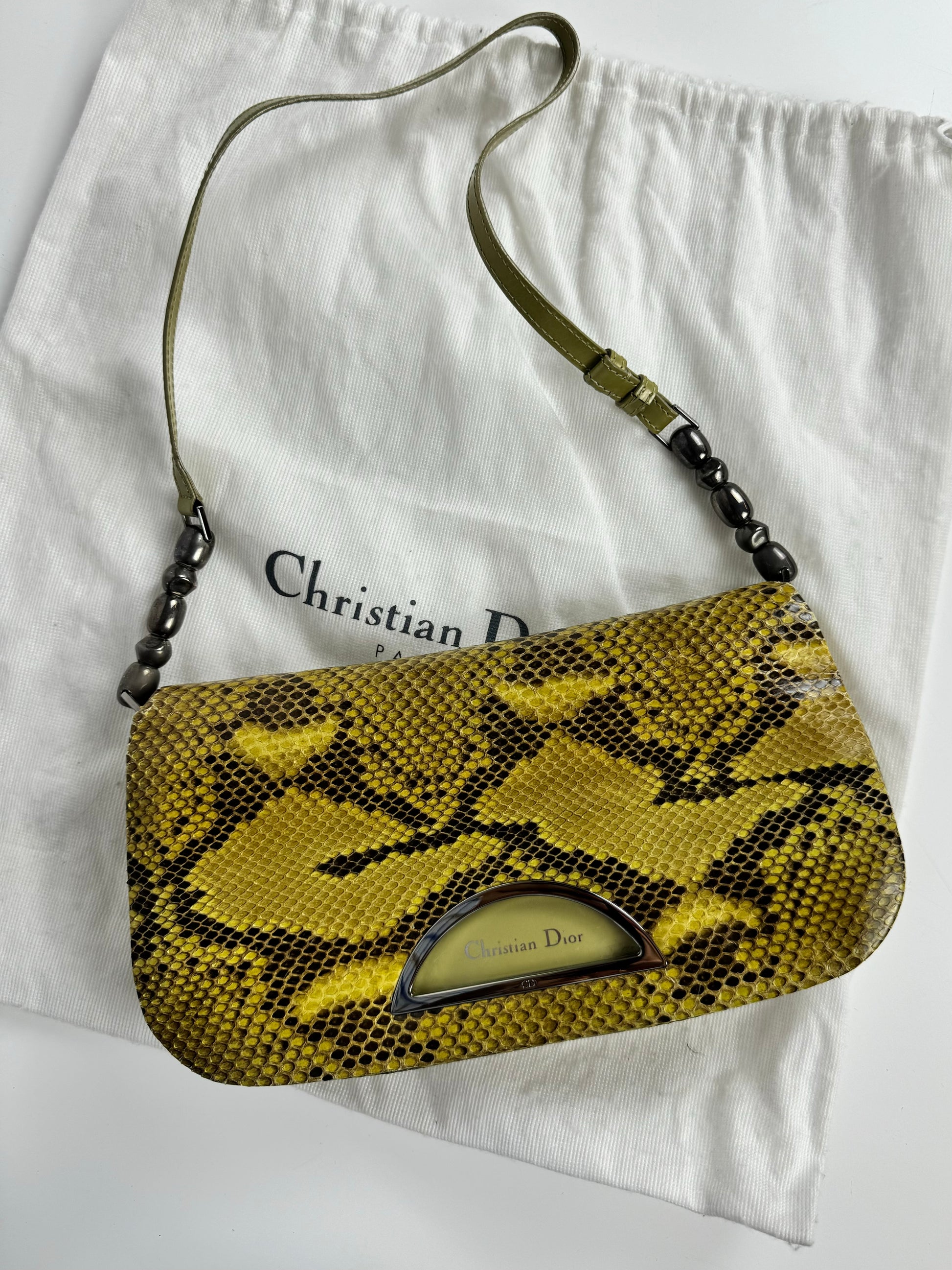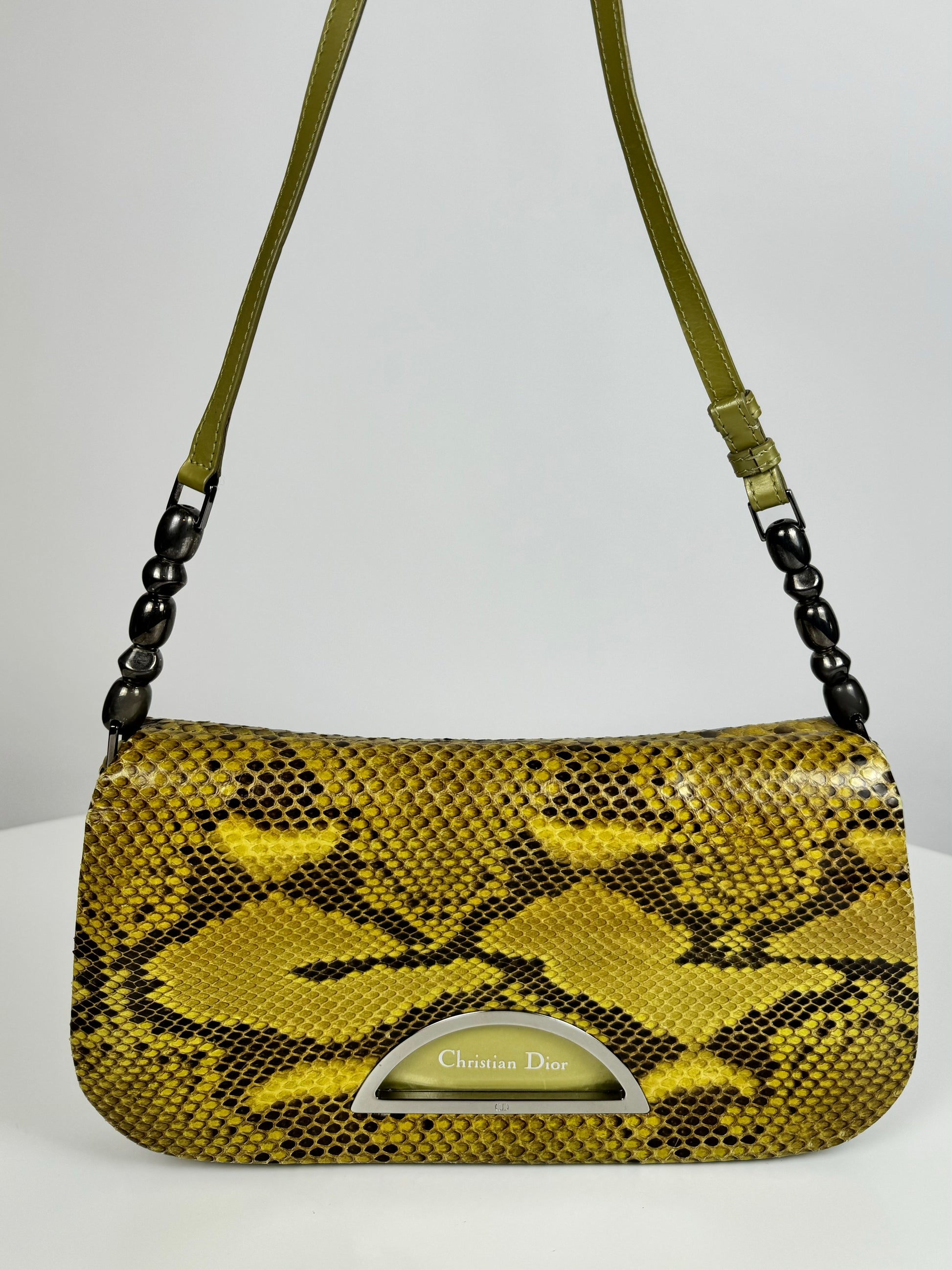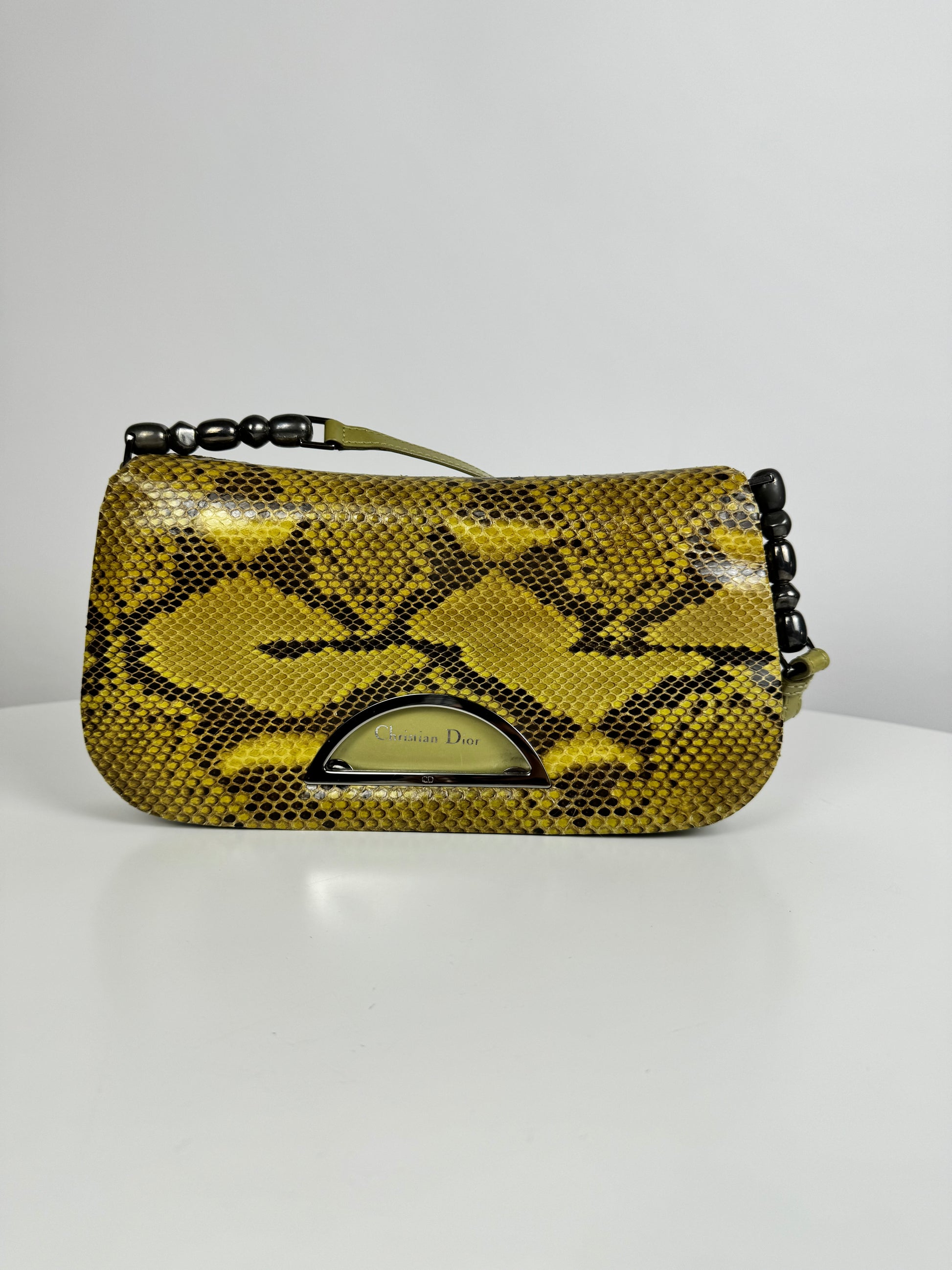 Sac Dior modèle Malice vert en python, Fermoir par système aimanté, intérieur en nylon vert. Fourni avec dustbag. Veuillez voir toutes les photos pour l'état