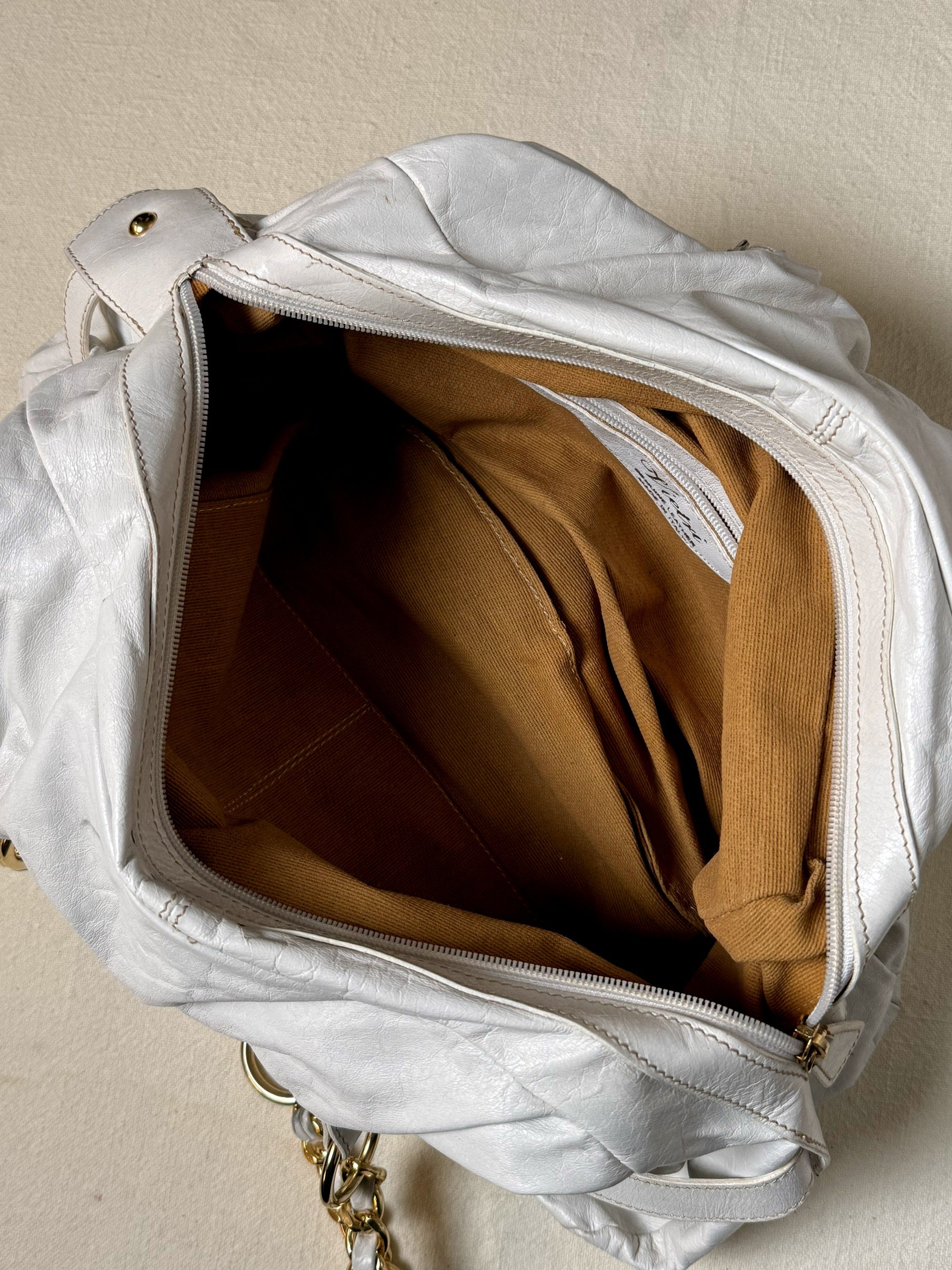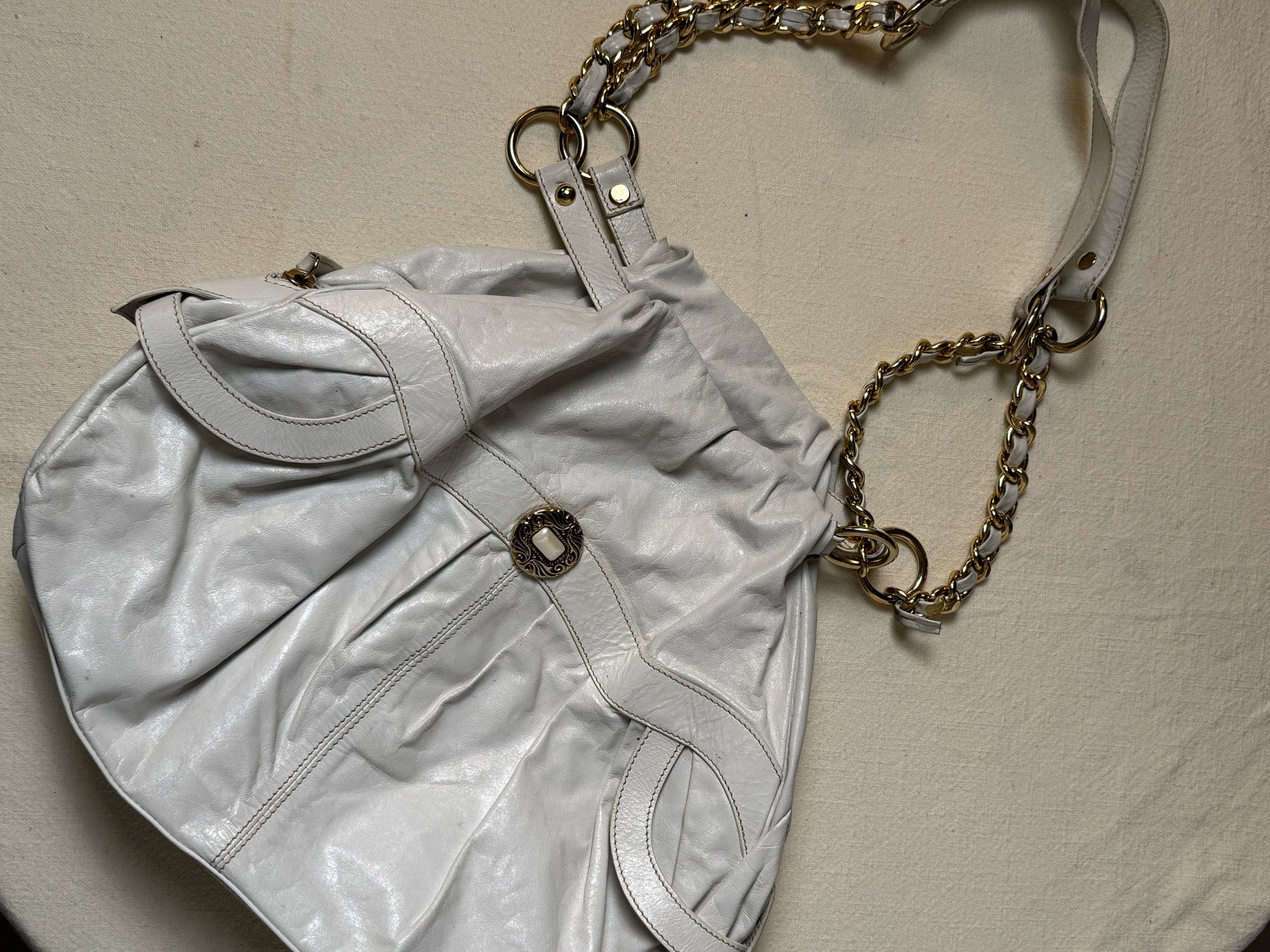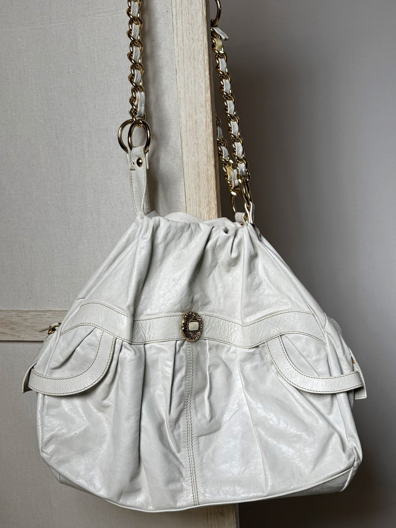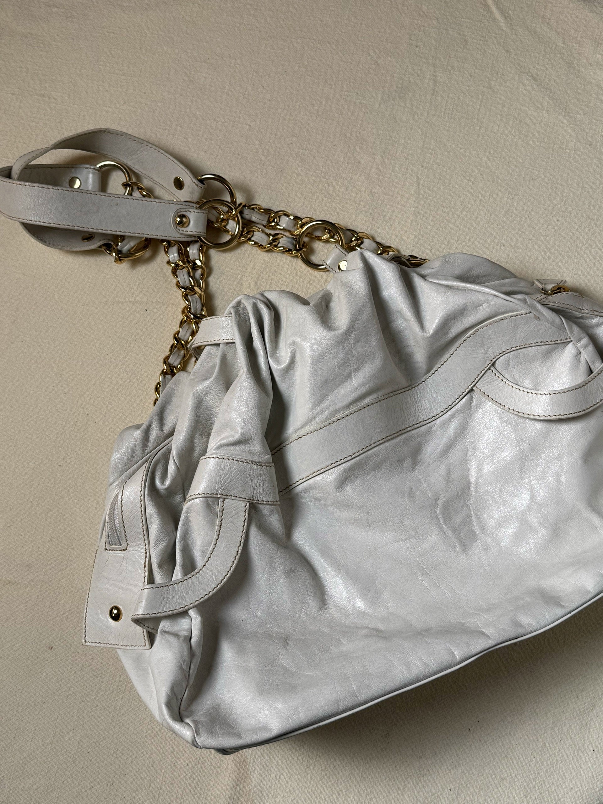 Sac moyen cuir blanc souple avec chaine vintage
