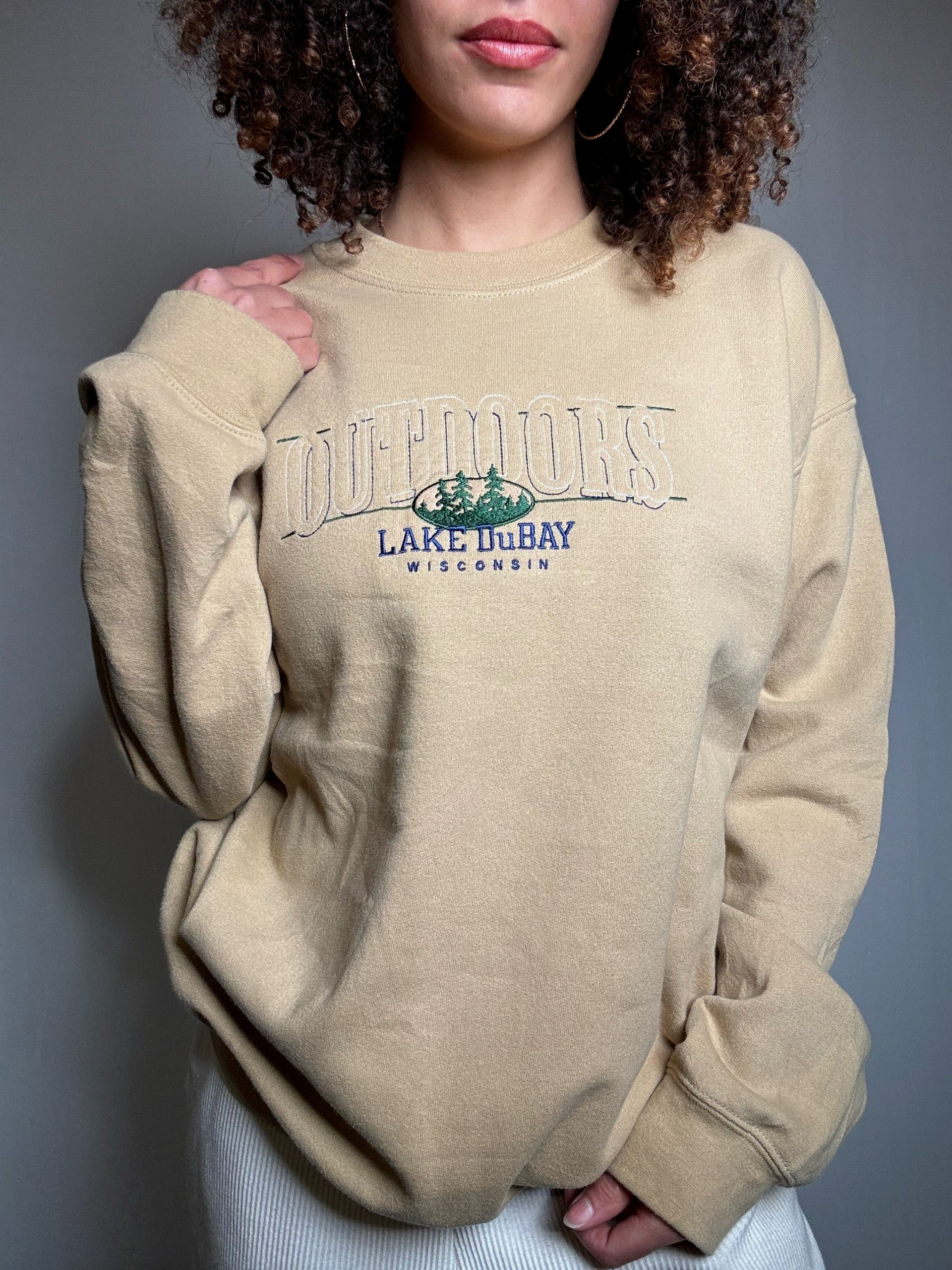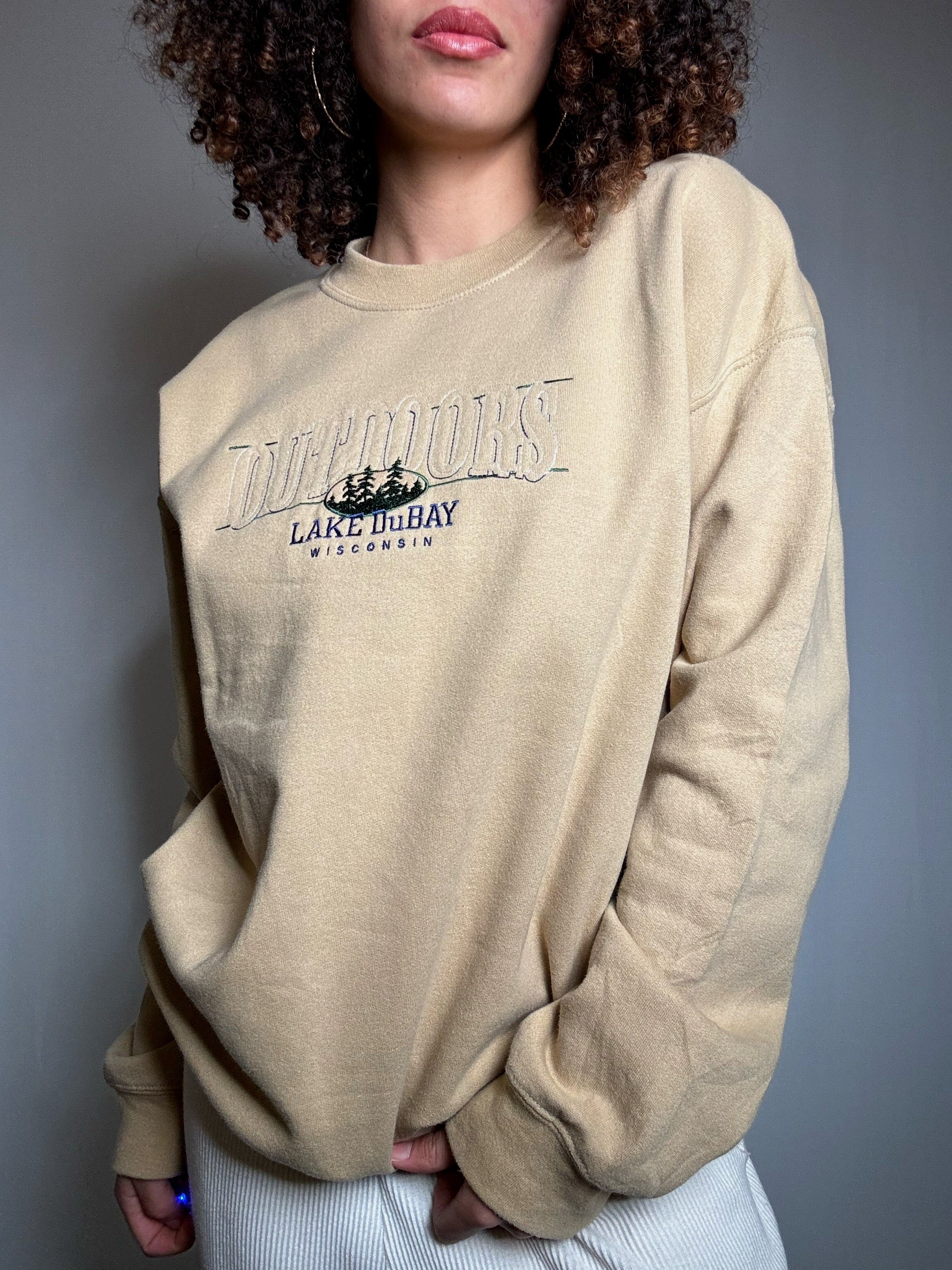 Sweat brodé beige Lake Dubay M vintage