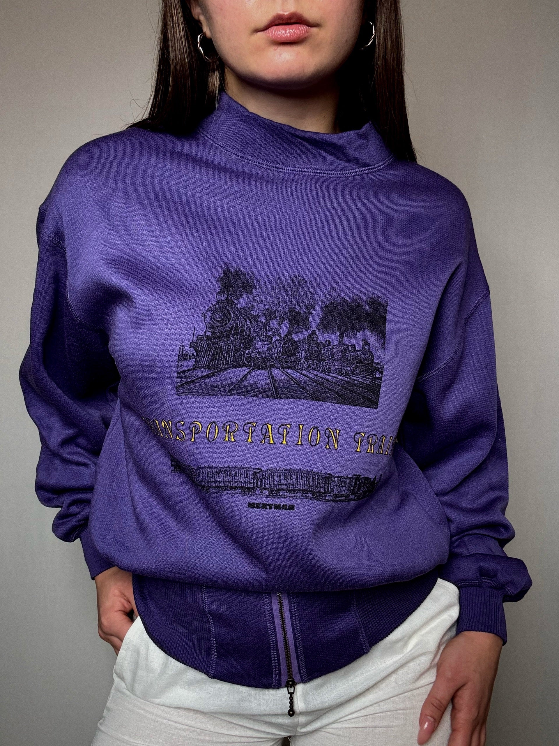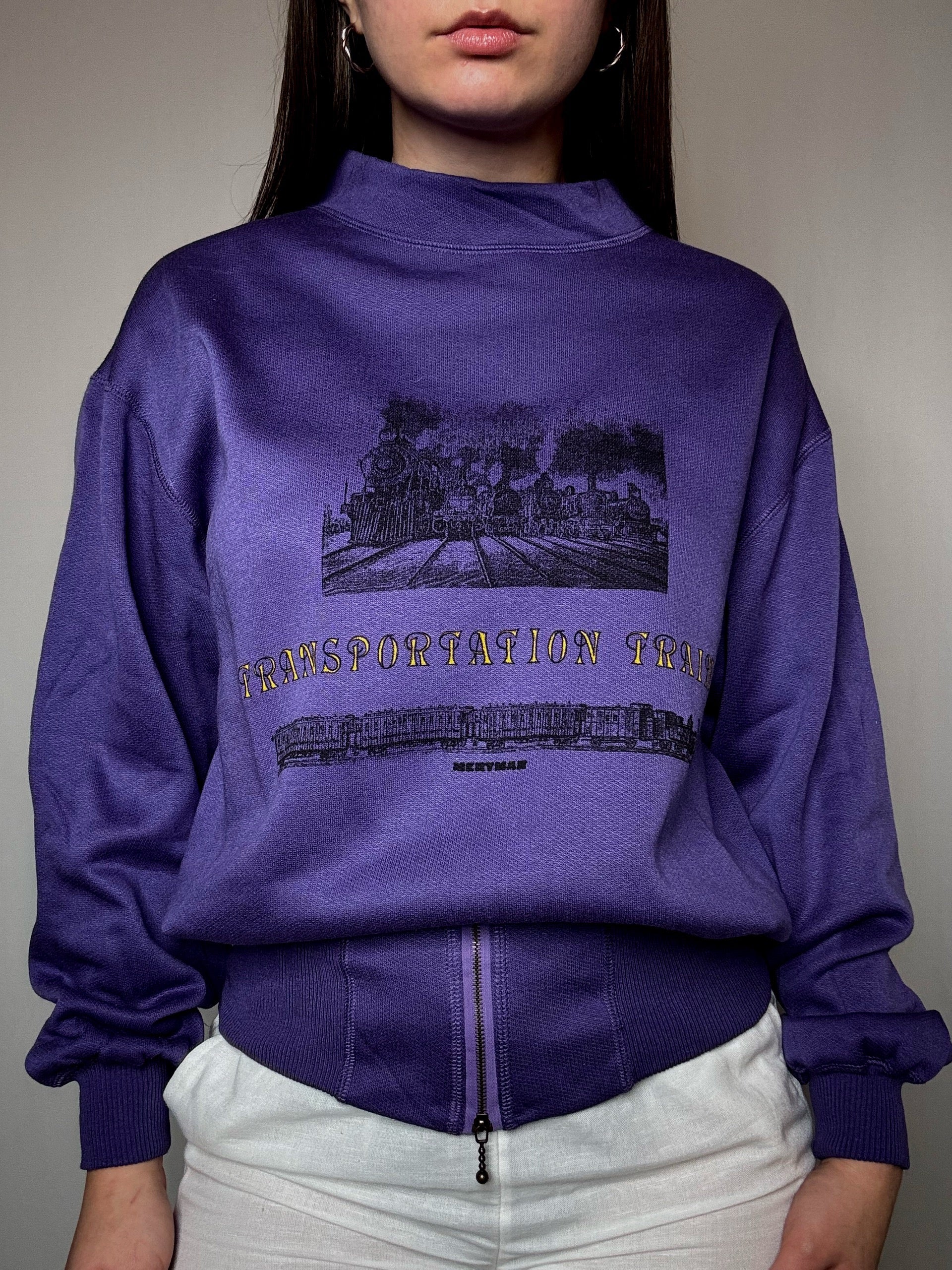 Sweat cintré imprimé violet M vintage