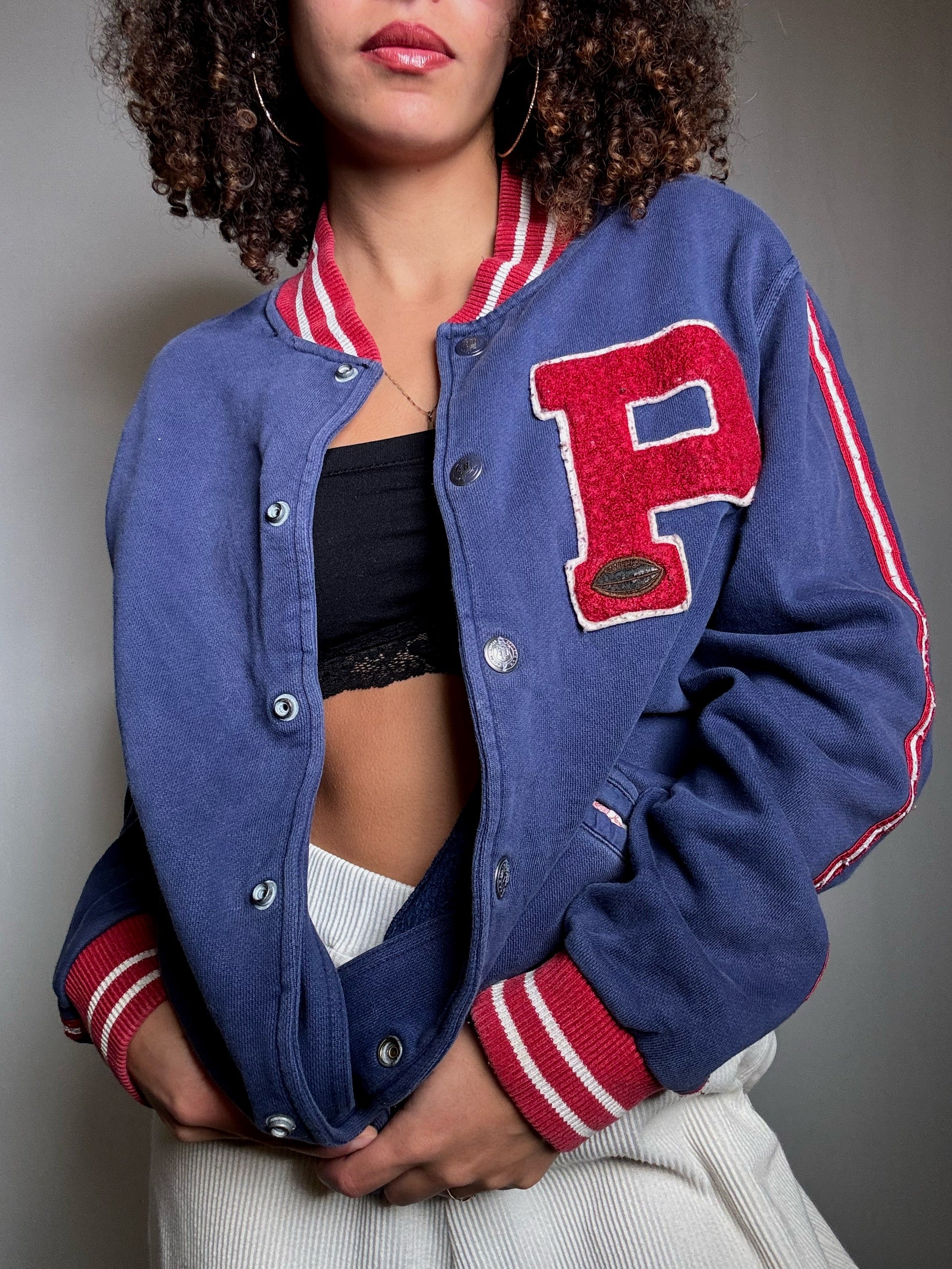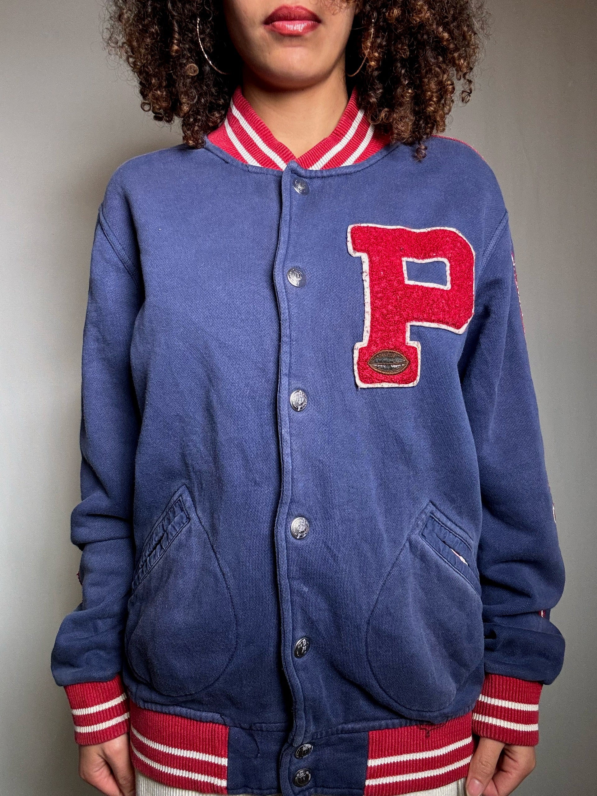 Sweat façon bomber bleu Ralph Lauren M vintage