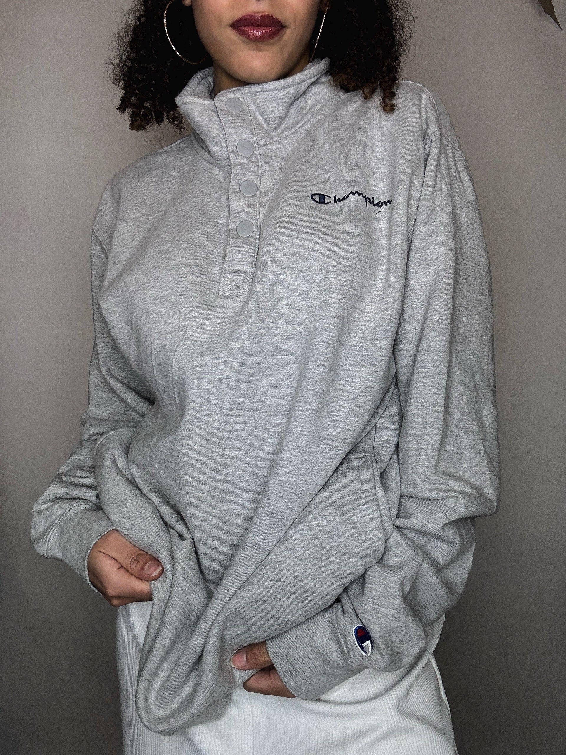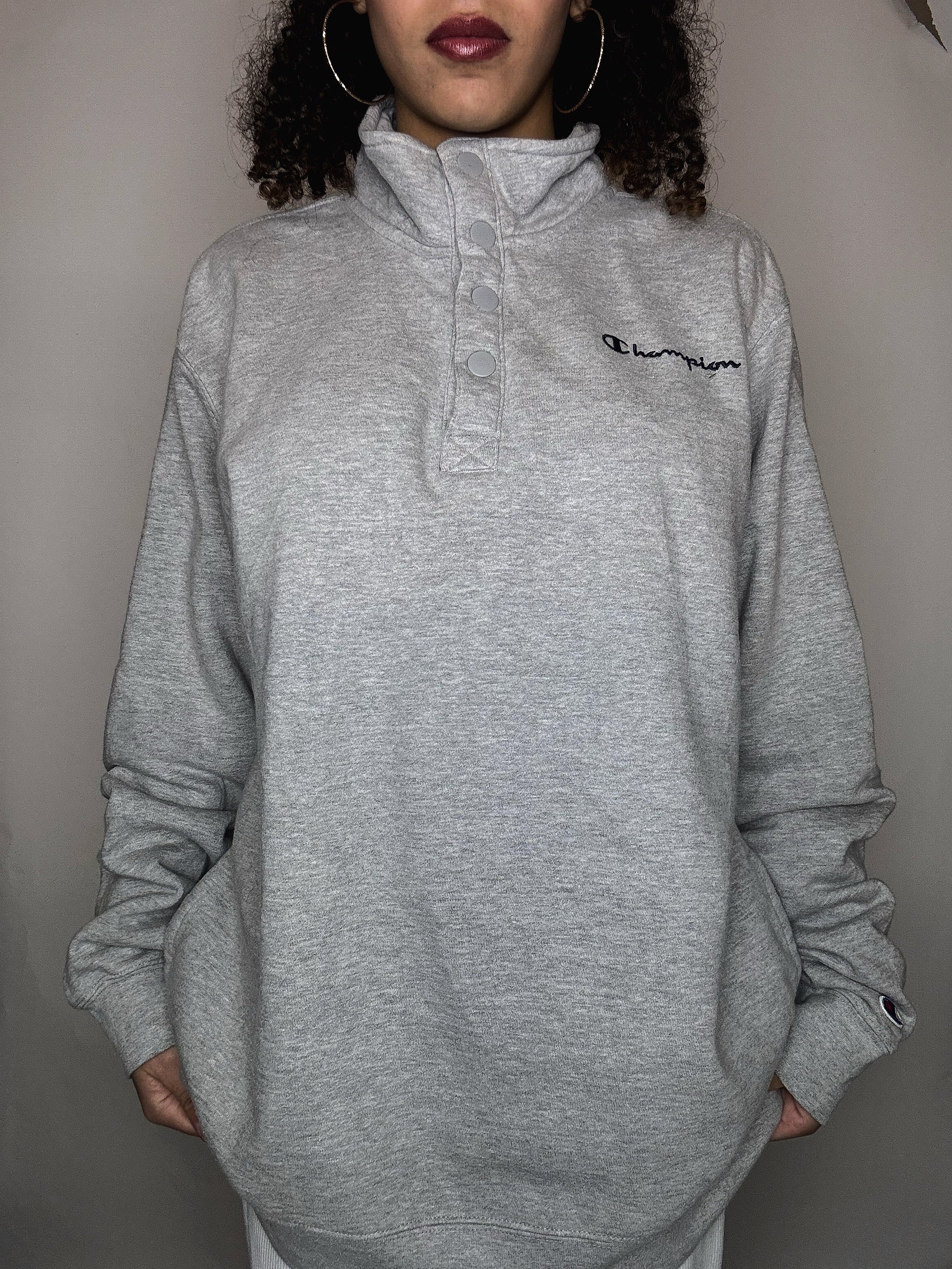 Sweat gris à bouton Champion L vintage