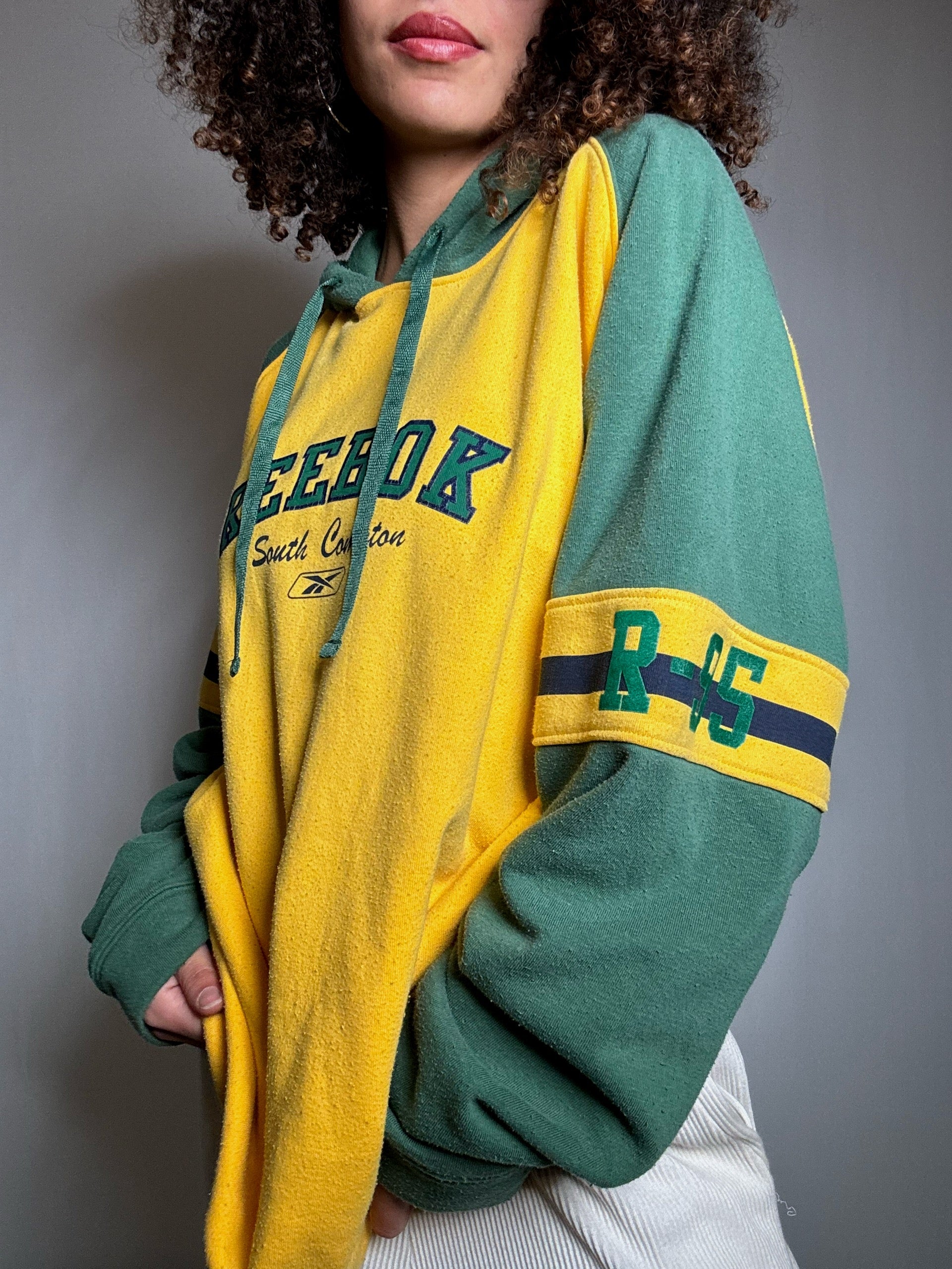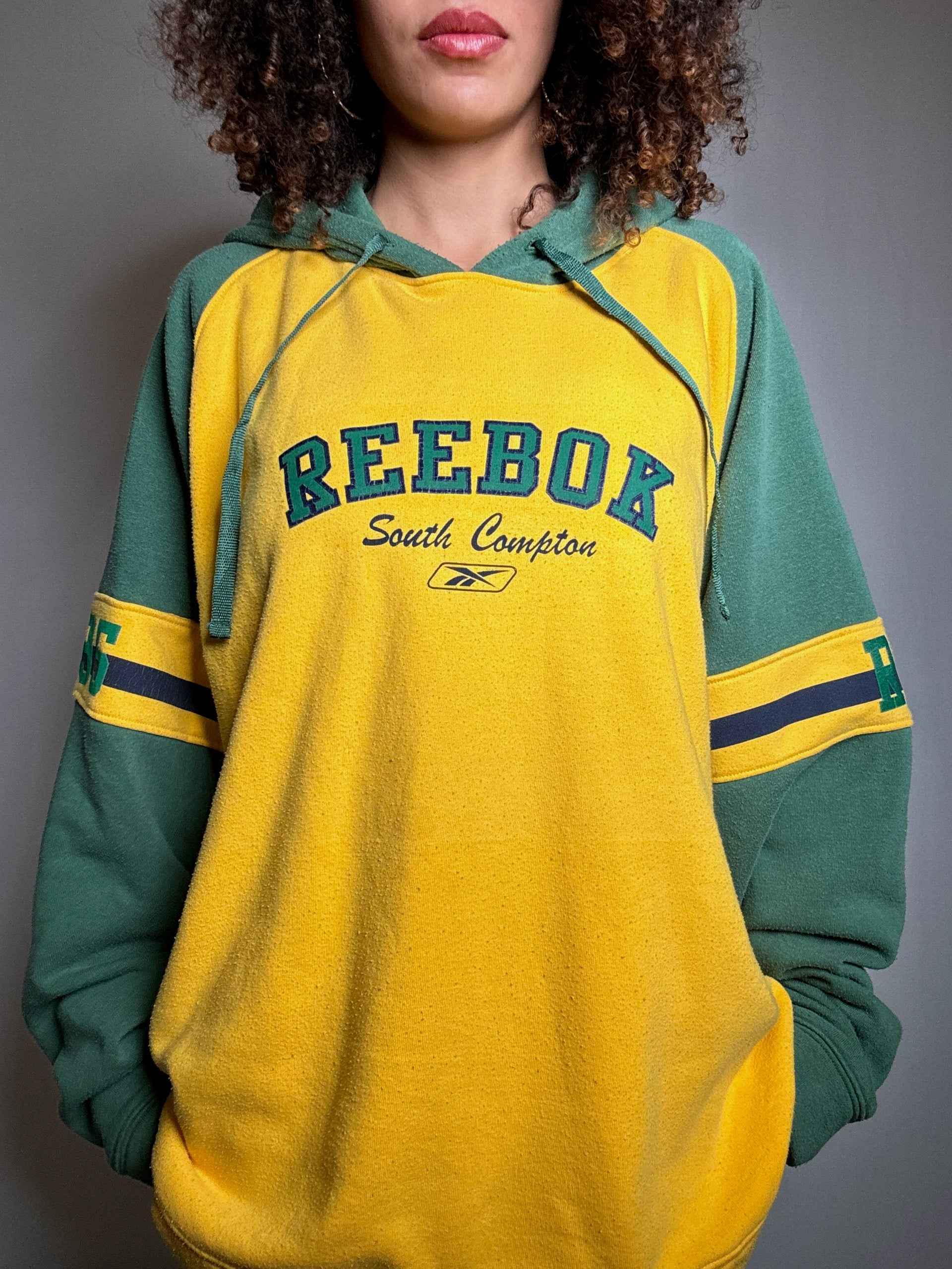 Pull Reebok vintage fin 90s / début 2000s (Y2K), avec l’inscription « South Compton », référence forte à la culture street et hip-hop américaine.