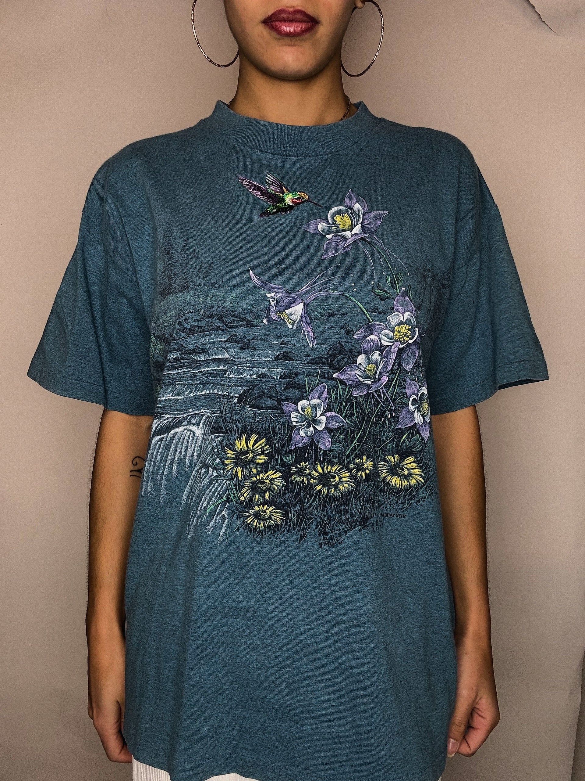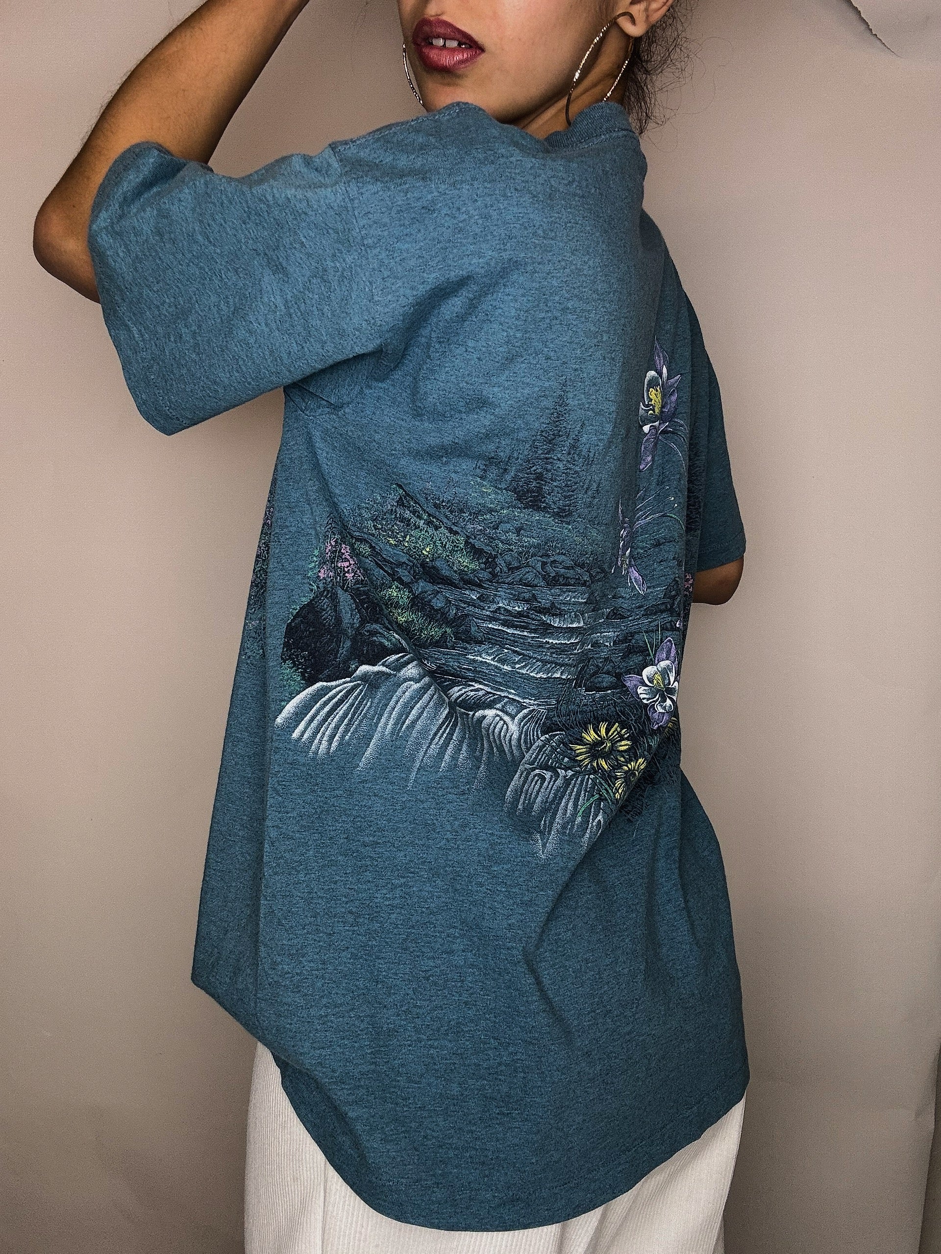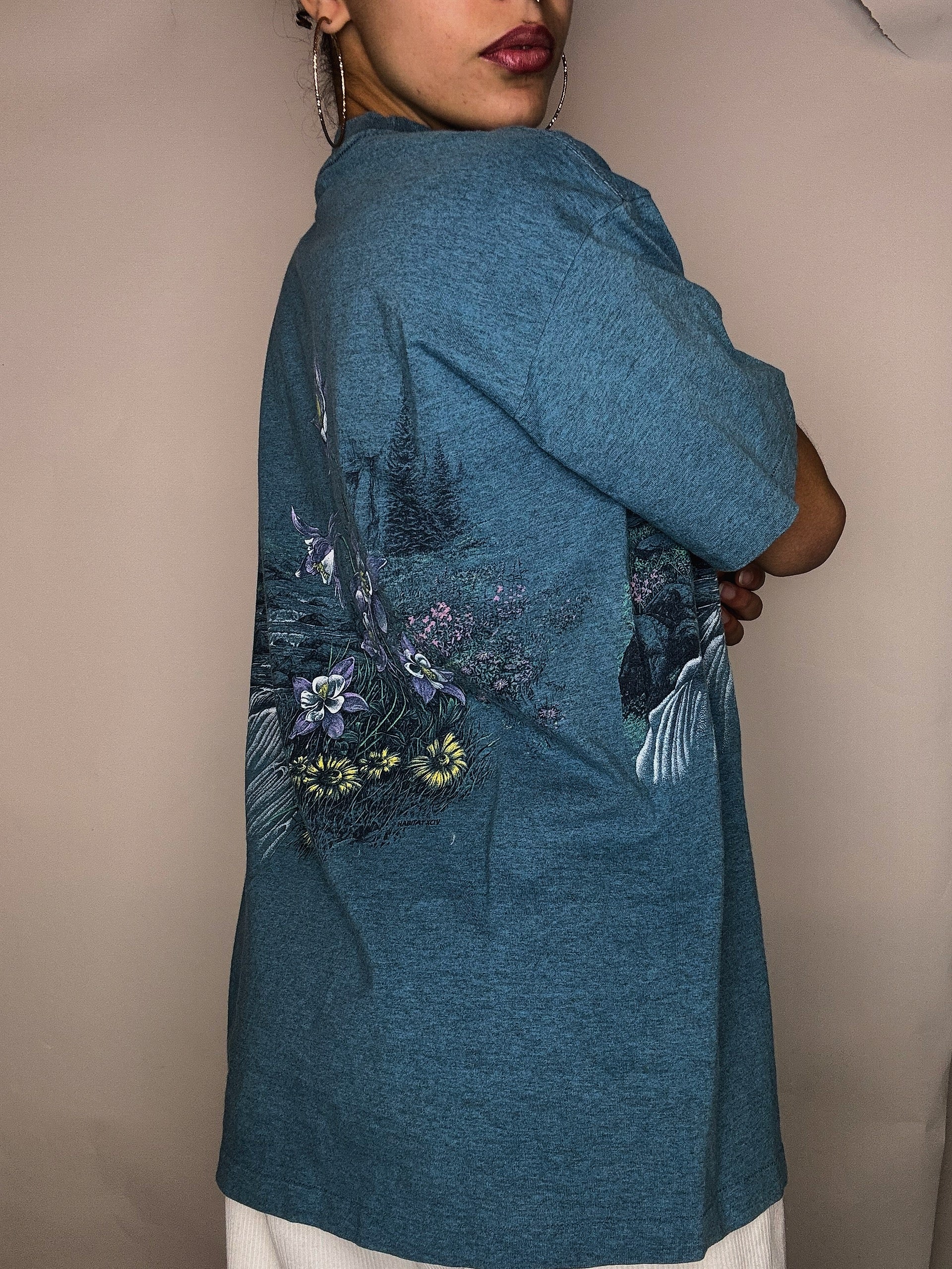 Tshirt bleu canard kitch avec broderie M/L vintage