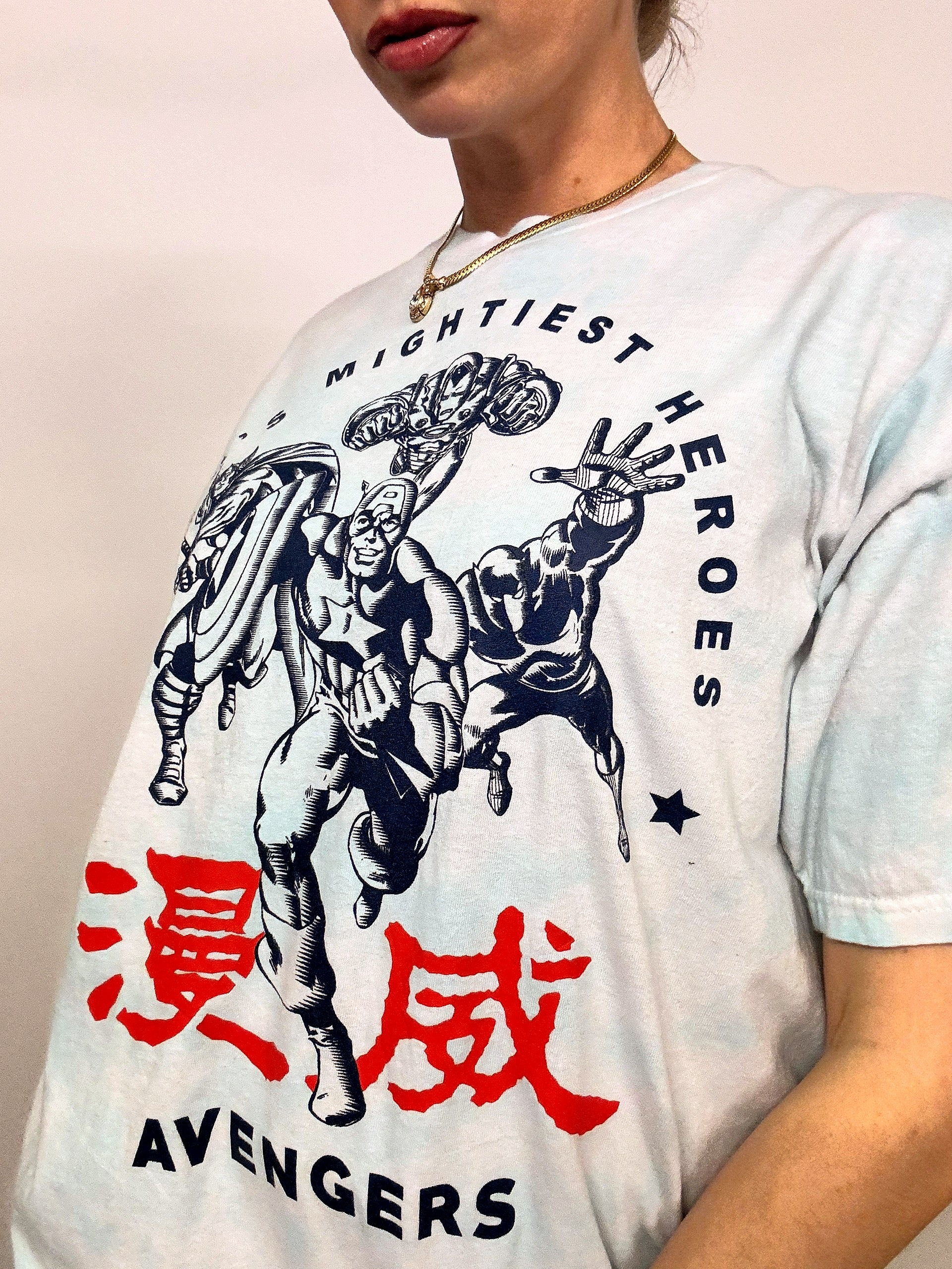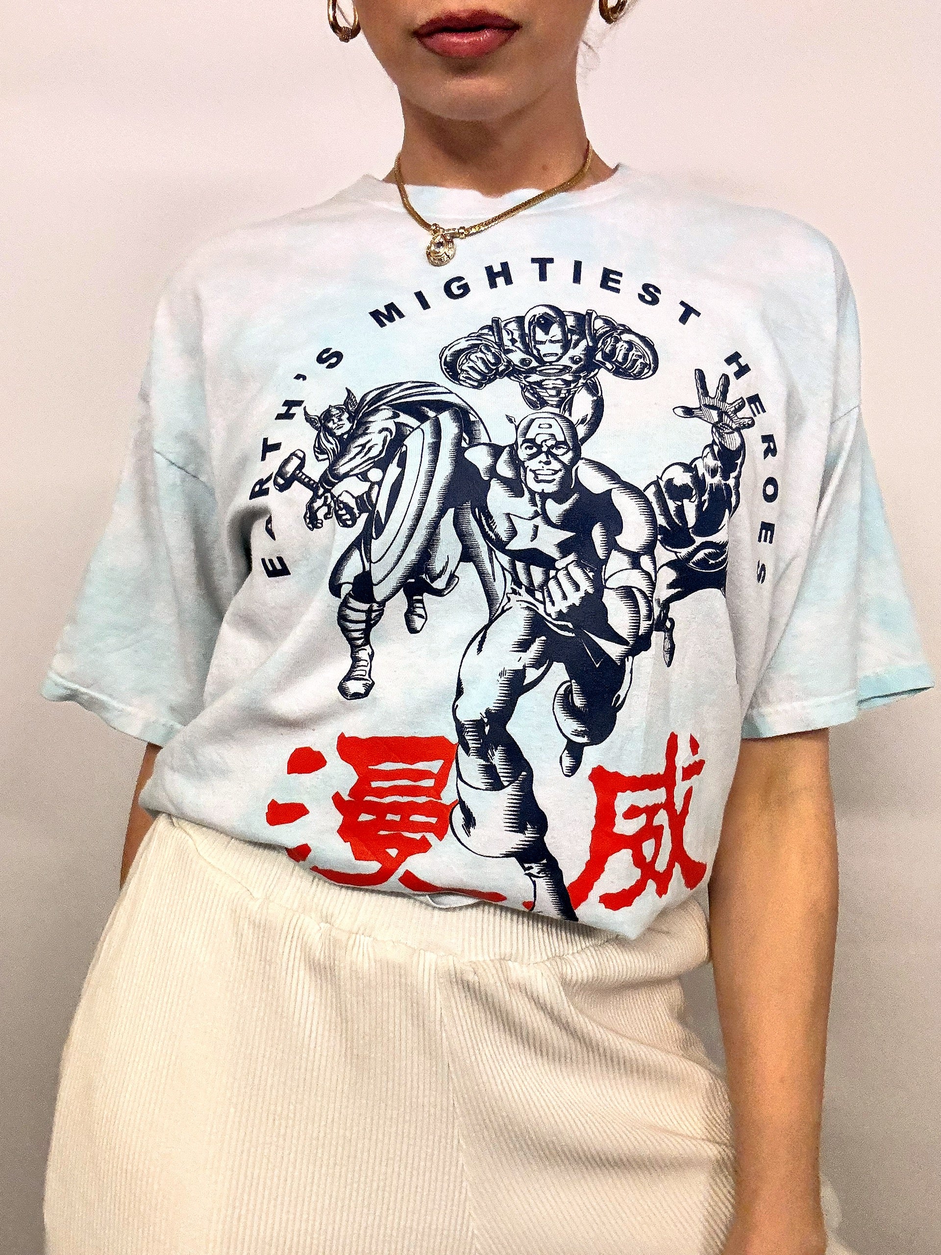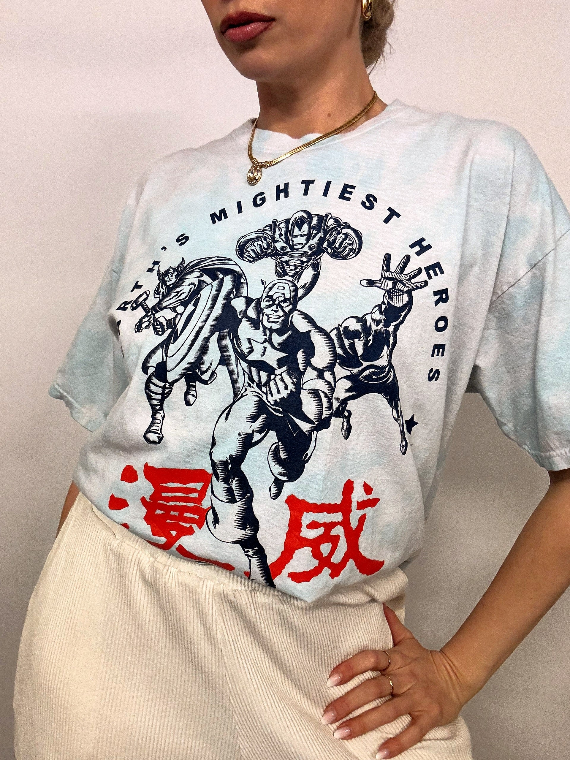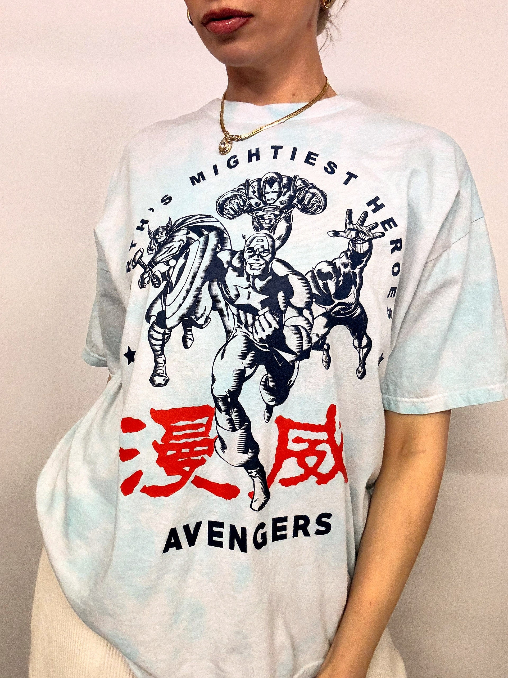 Tee shirt bleu delavé MARVEL x AVENGERS XL vintage
