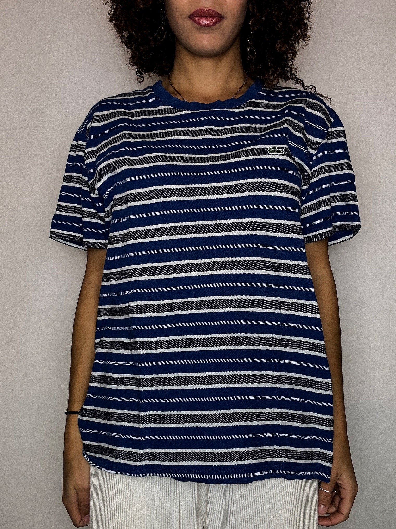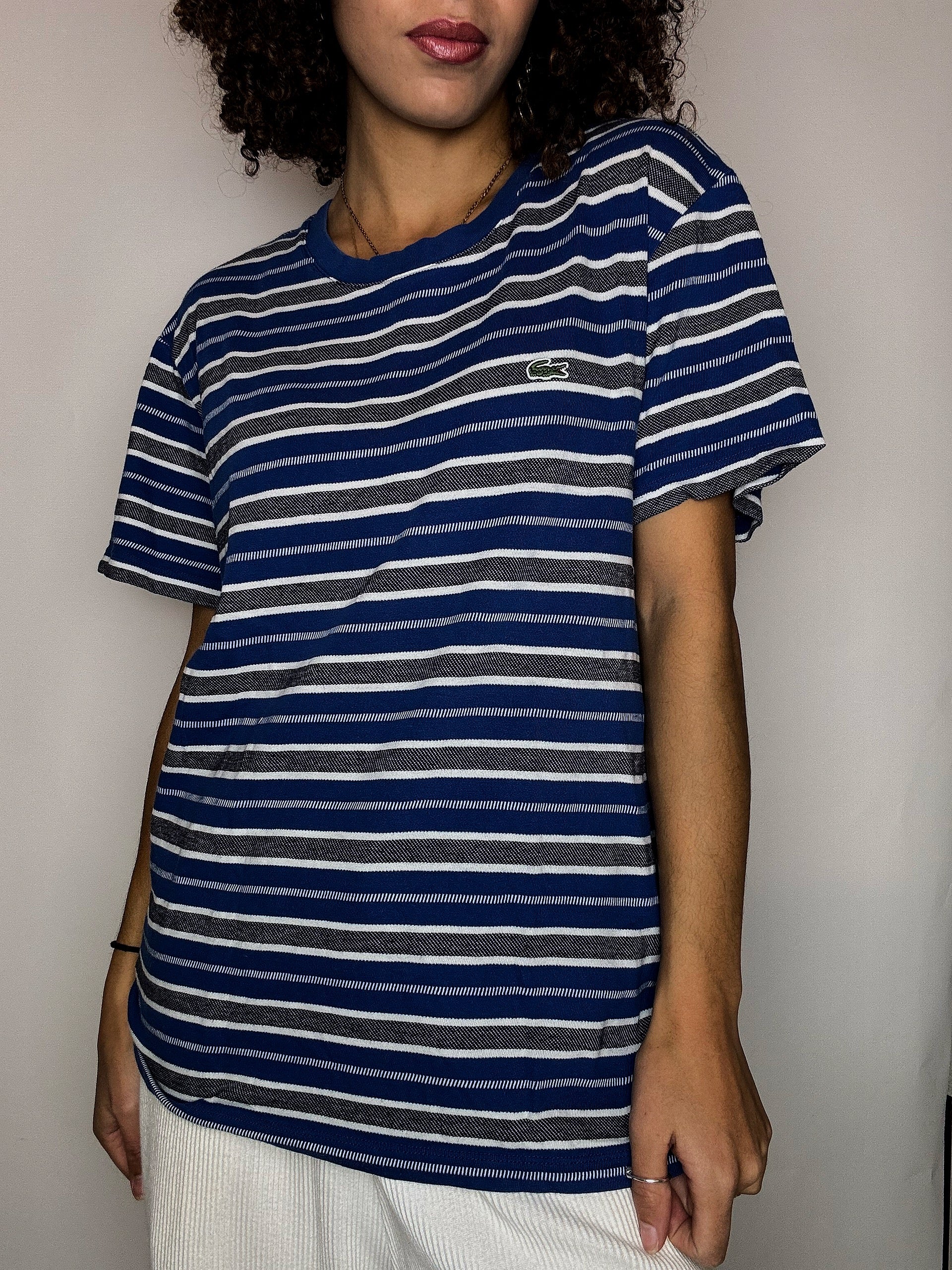 Tee shirt col rond à rayures marine LACOSTE L vintage