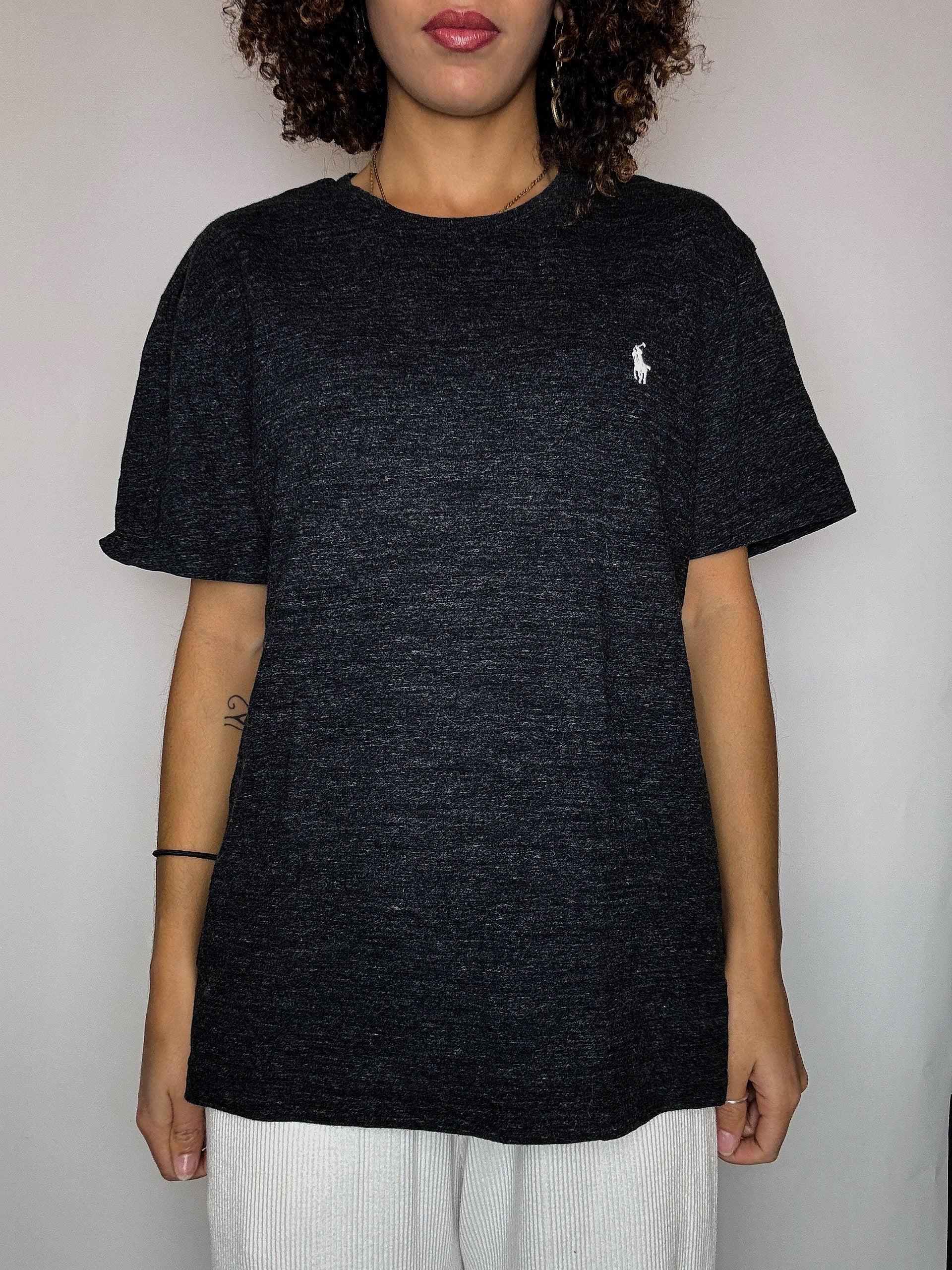 Tee shirt col rond gris chiné RALPH LAUREN M vintage