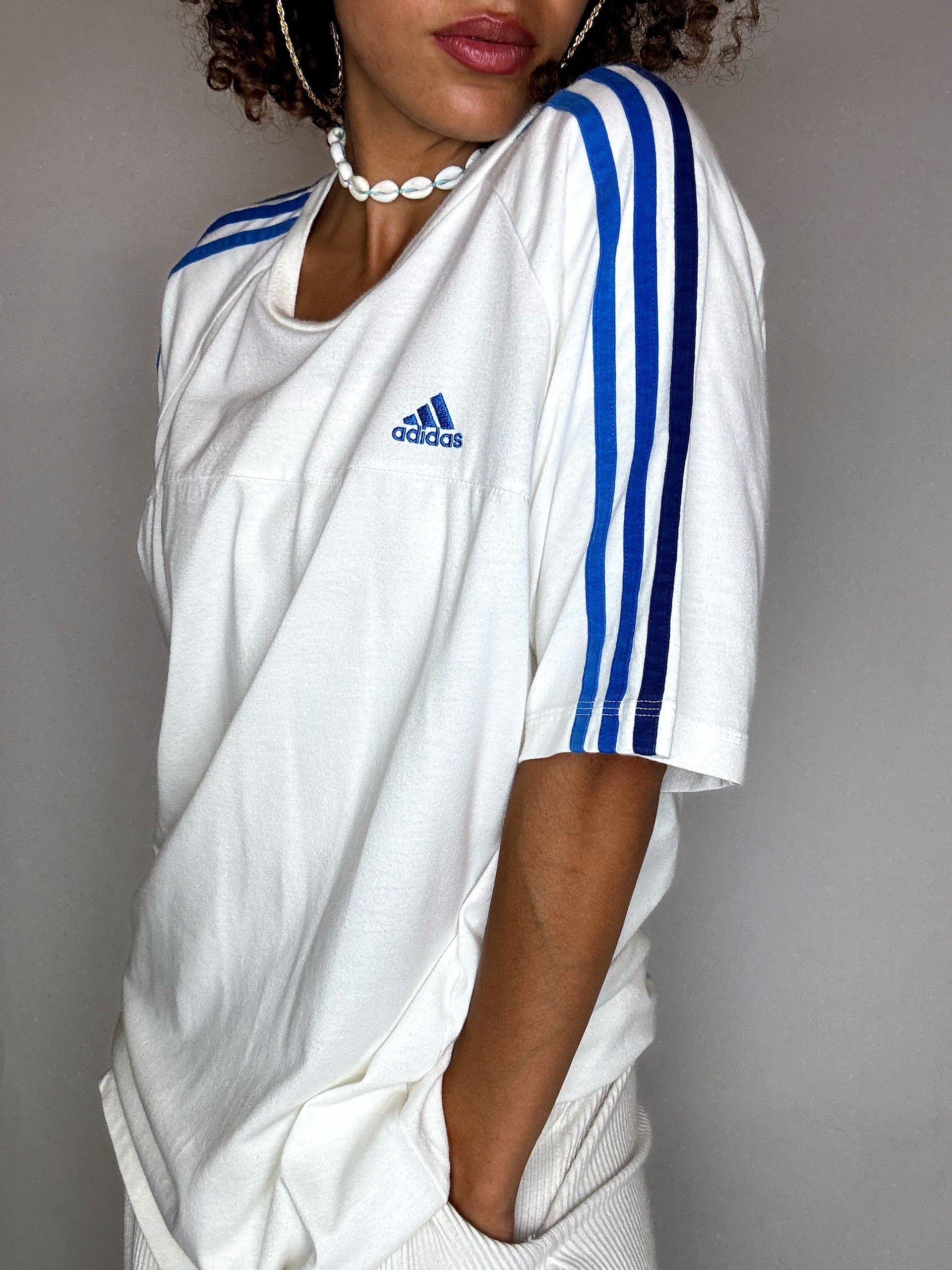 Tee shirt gris blanc ADIDAS L vintage