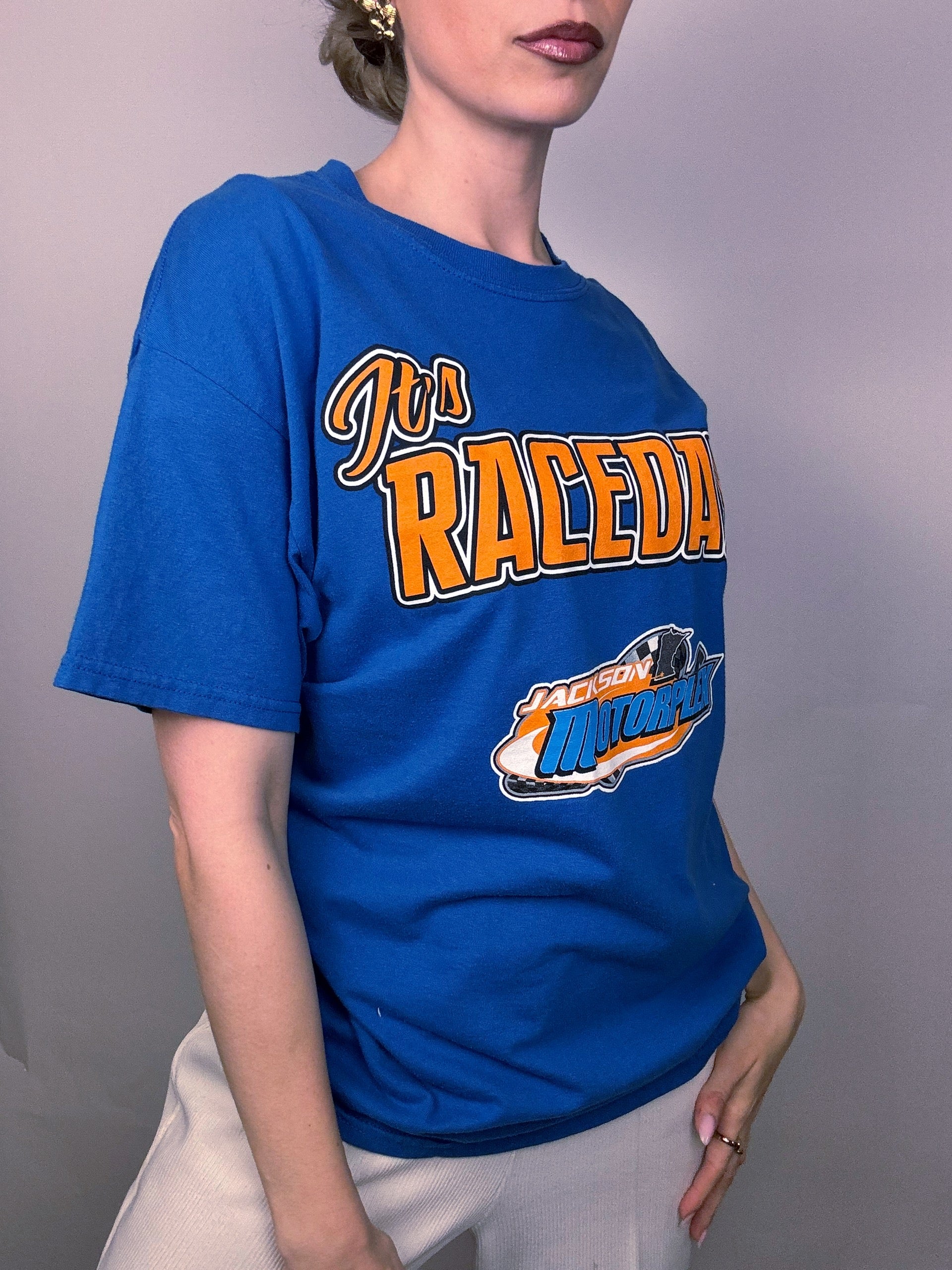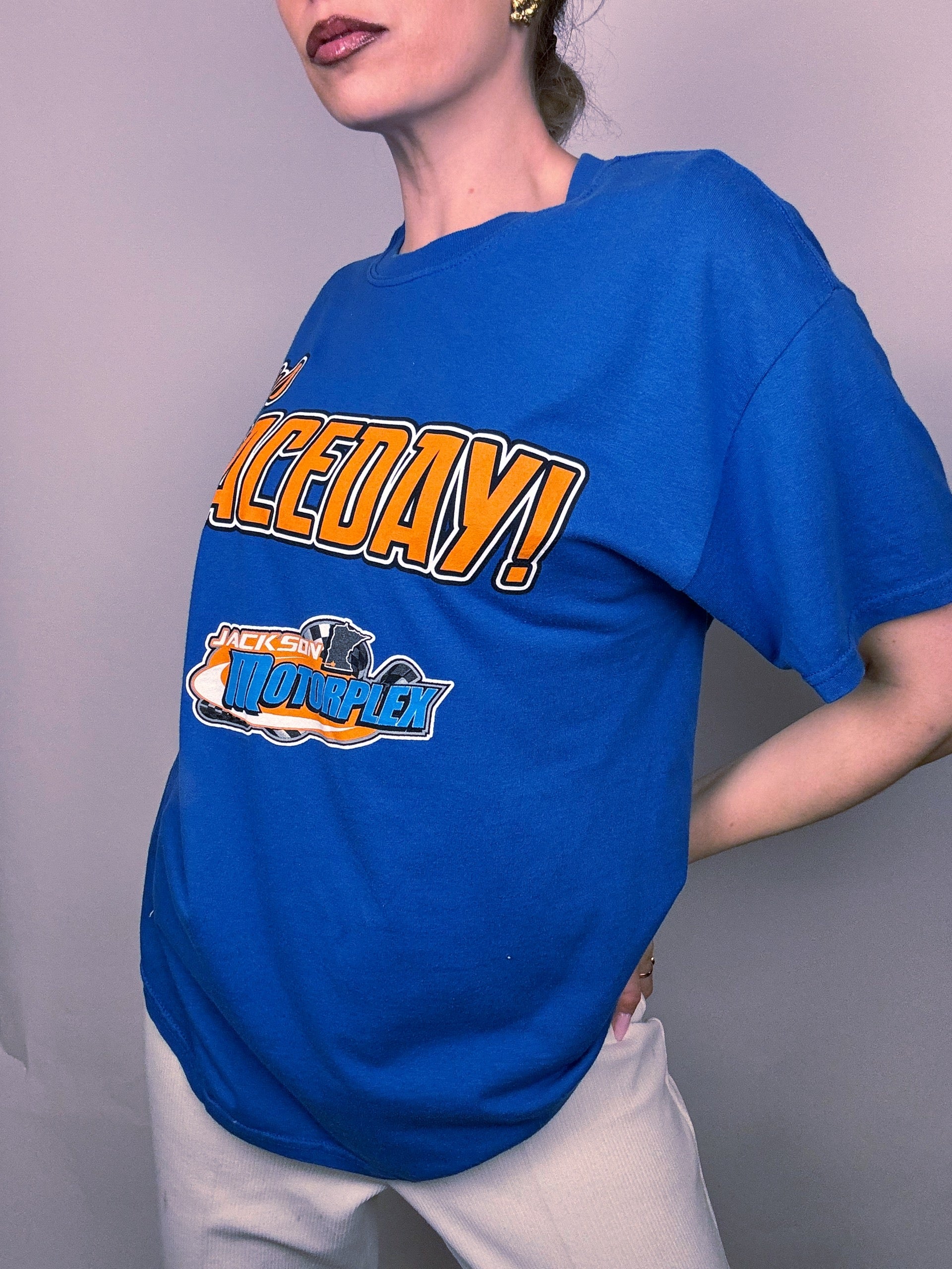 Tee shirt racing bleu L vintage