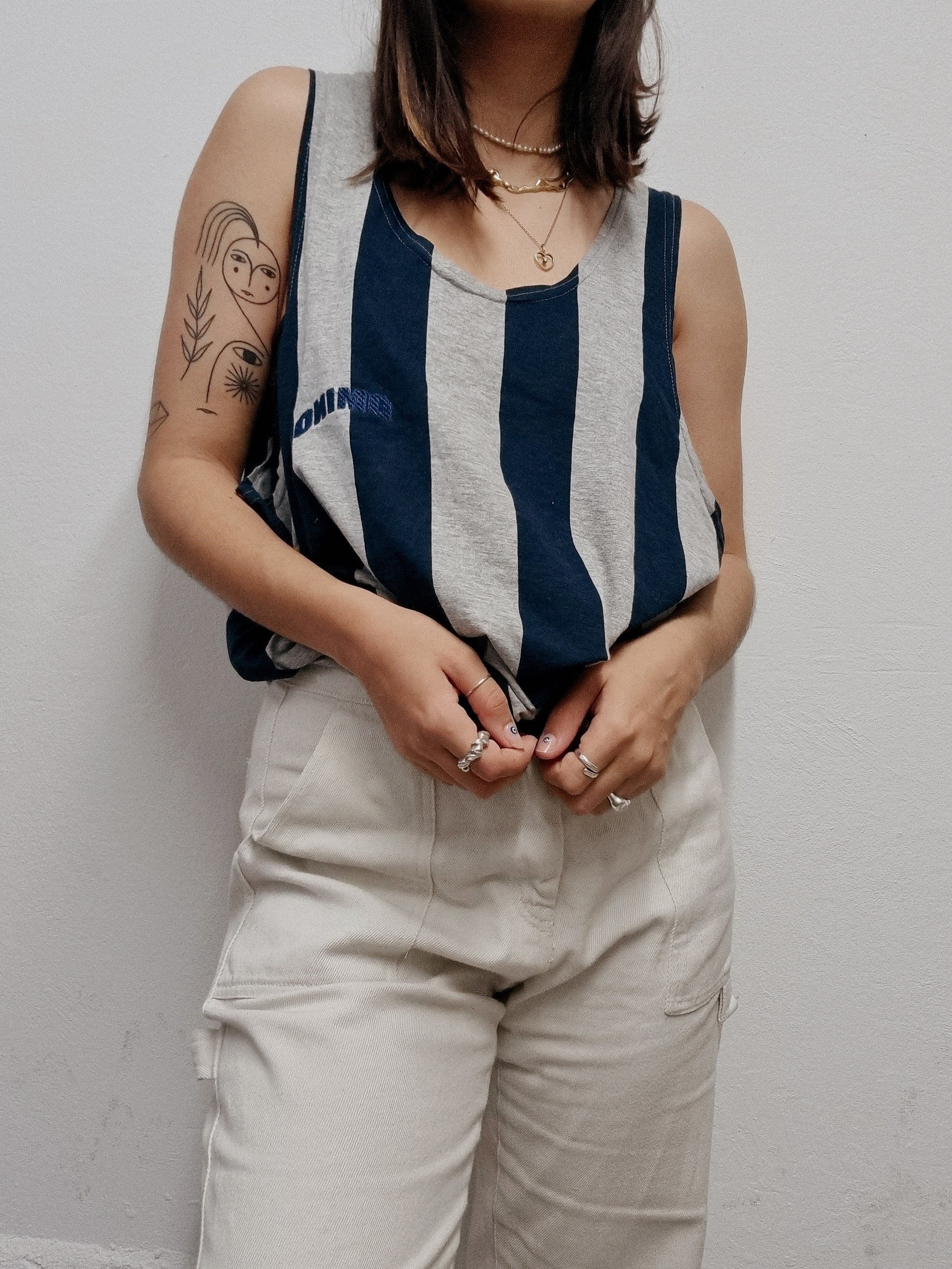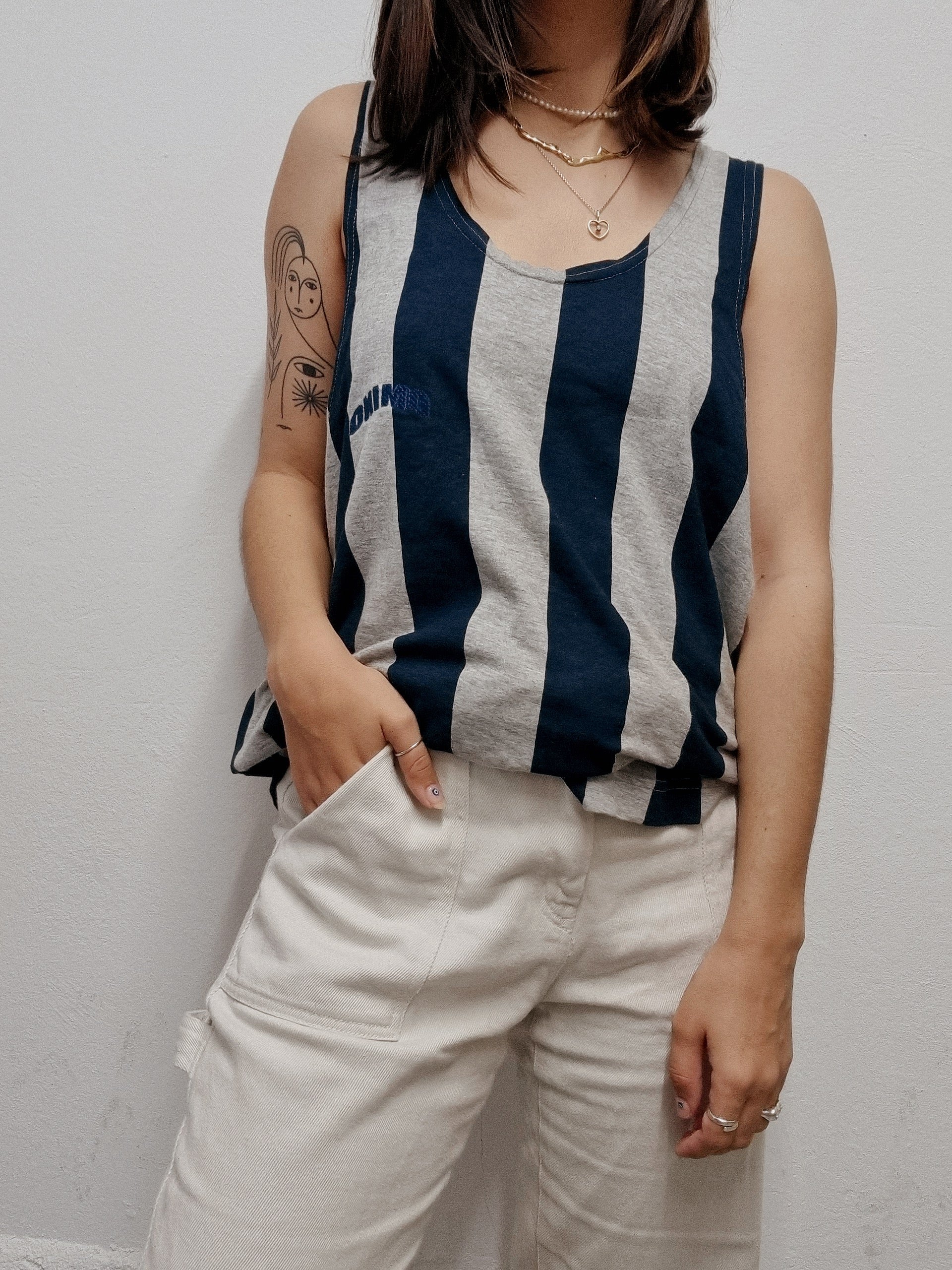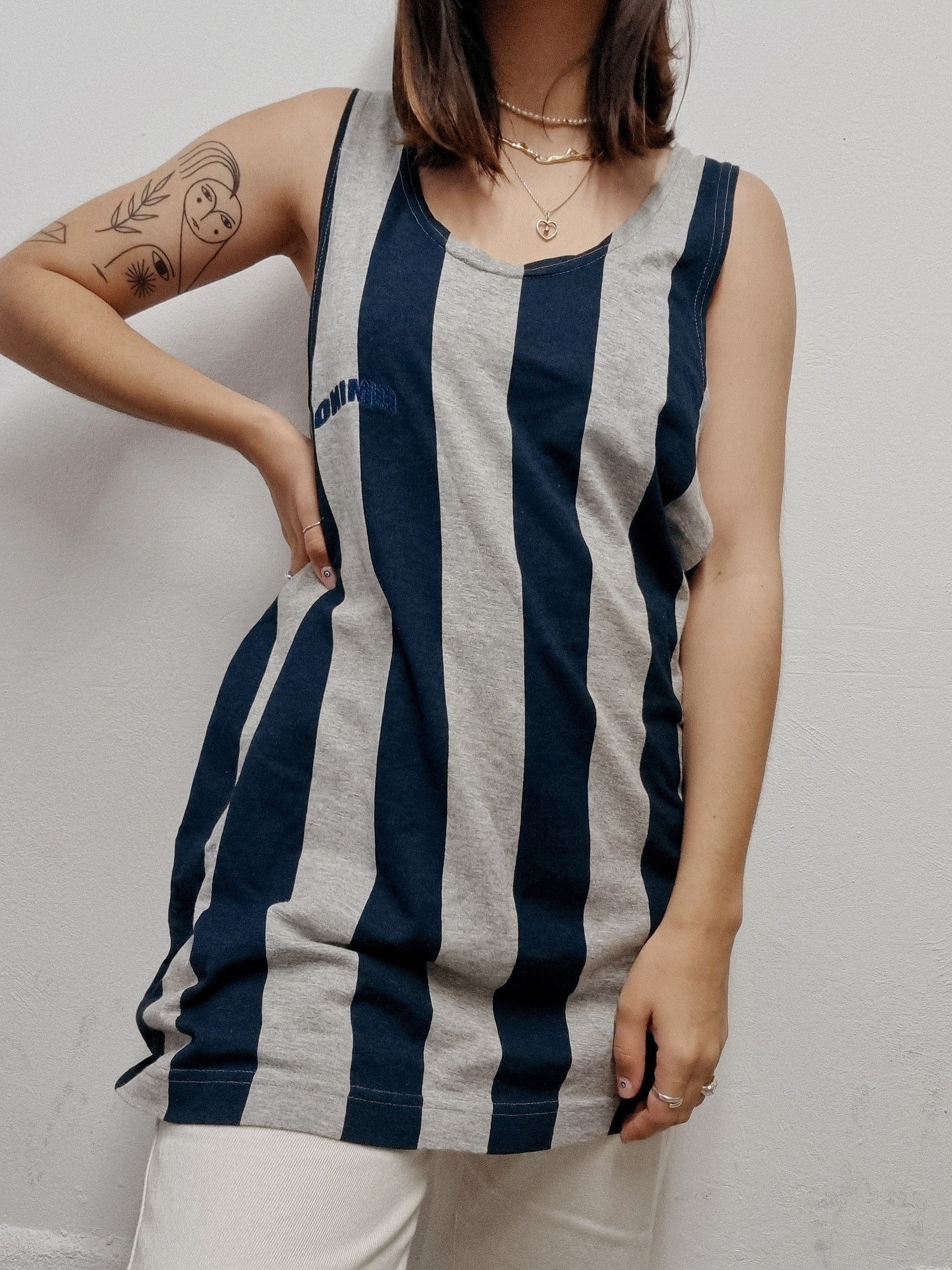 Top débardeur vintage gris Clair et noir XL