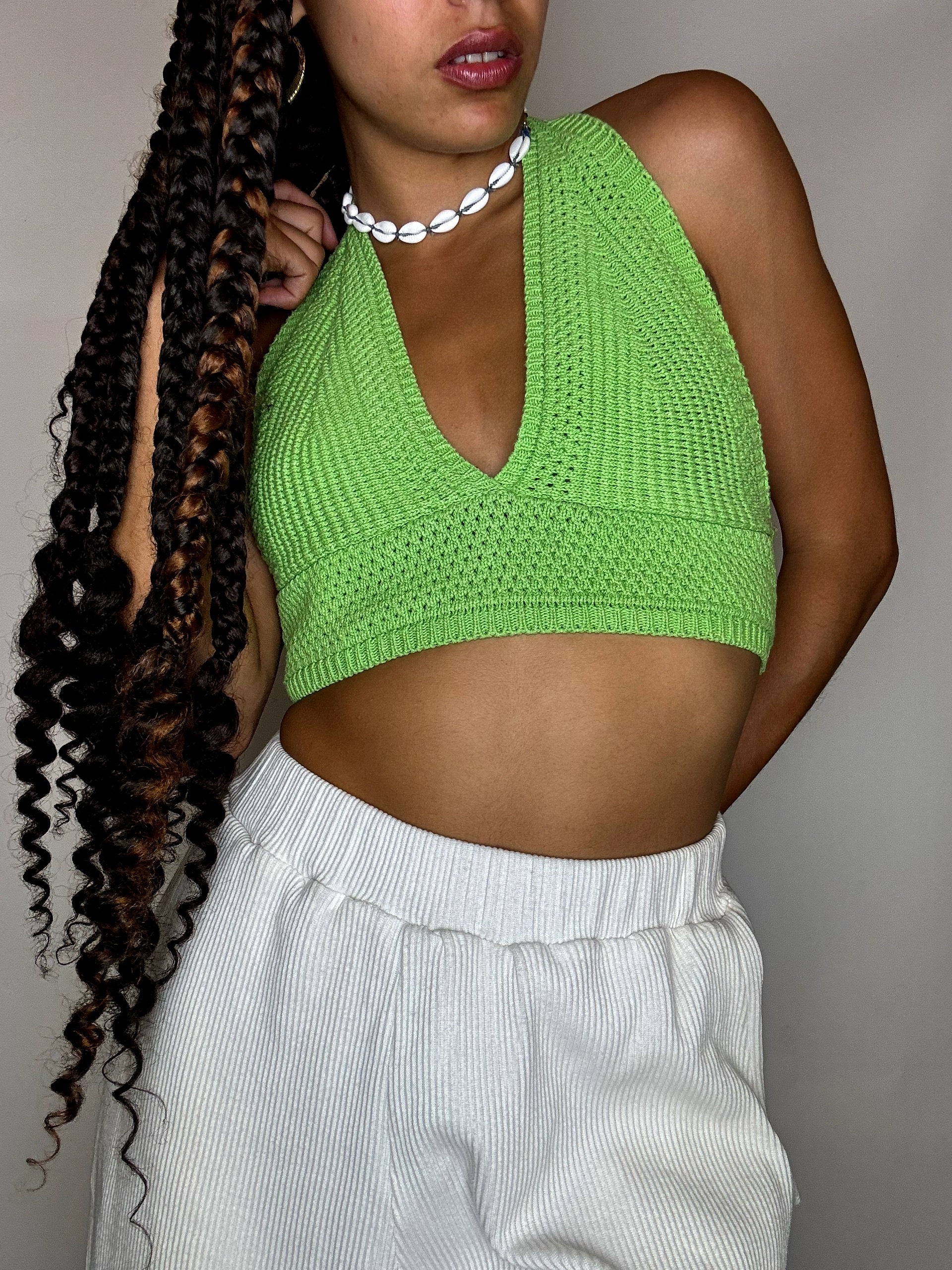 Top en crochet vert S vintage