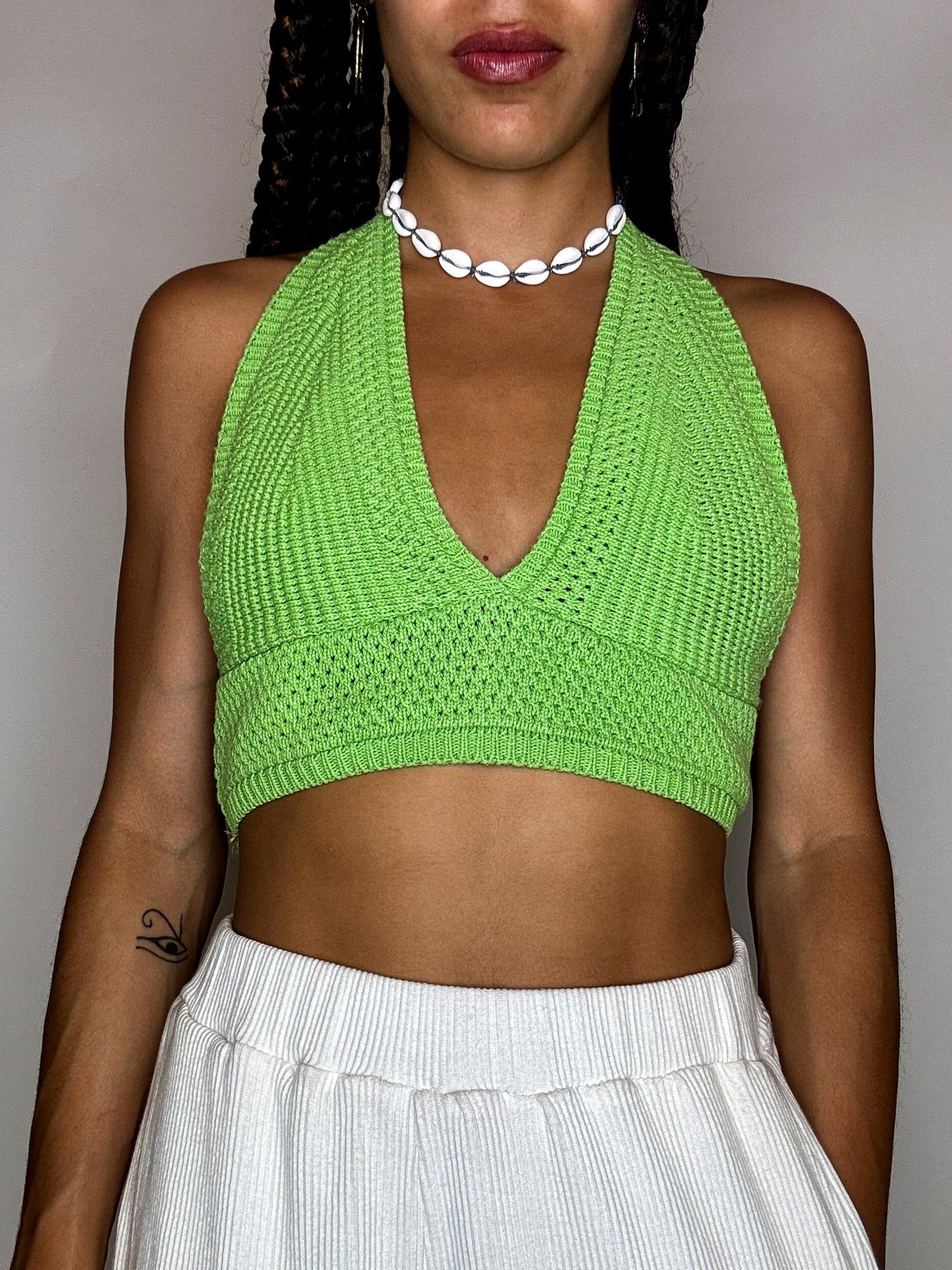 Top tricoté ultra féminin à porter seul sur un maillot de bain, sur une chemise ou un tee shirt ! On adore ce look bohème !