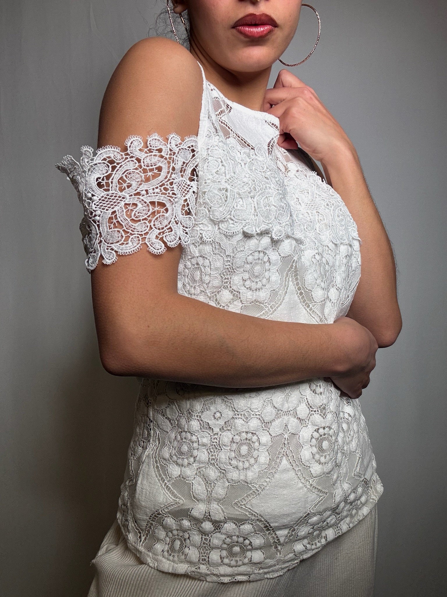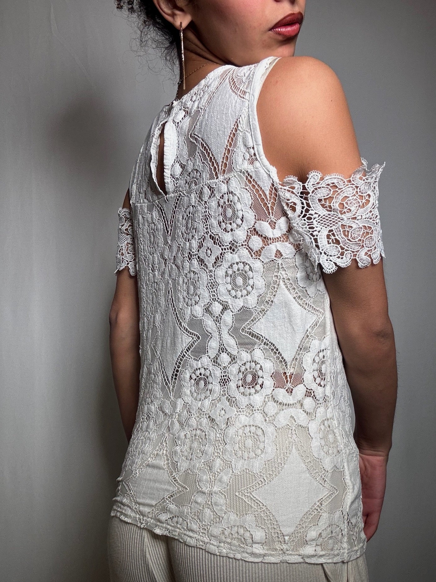 Top en dentelle blanc M vintage