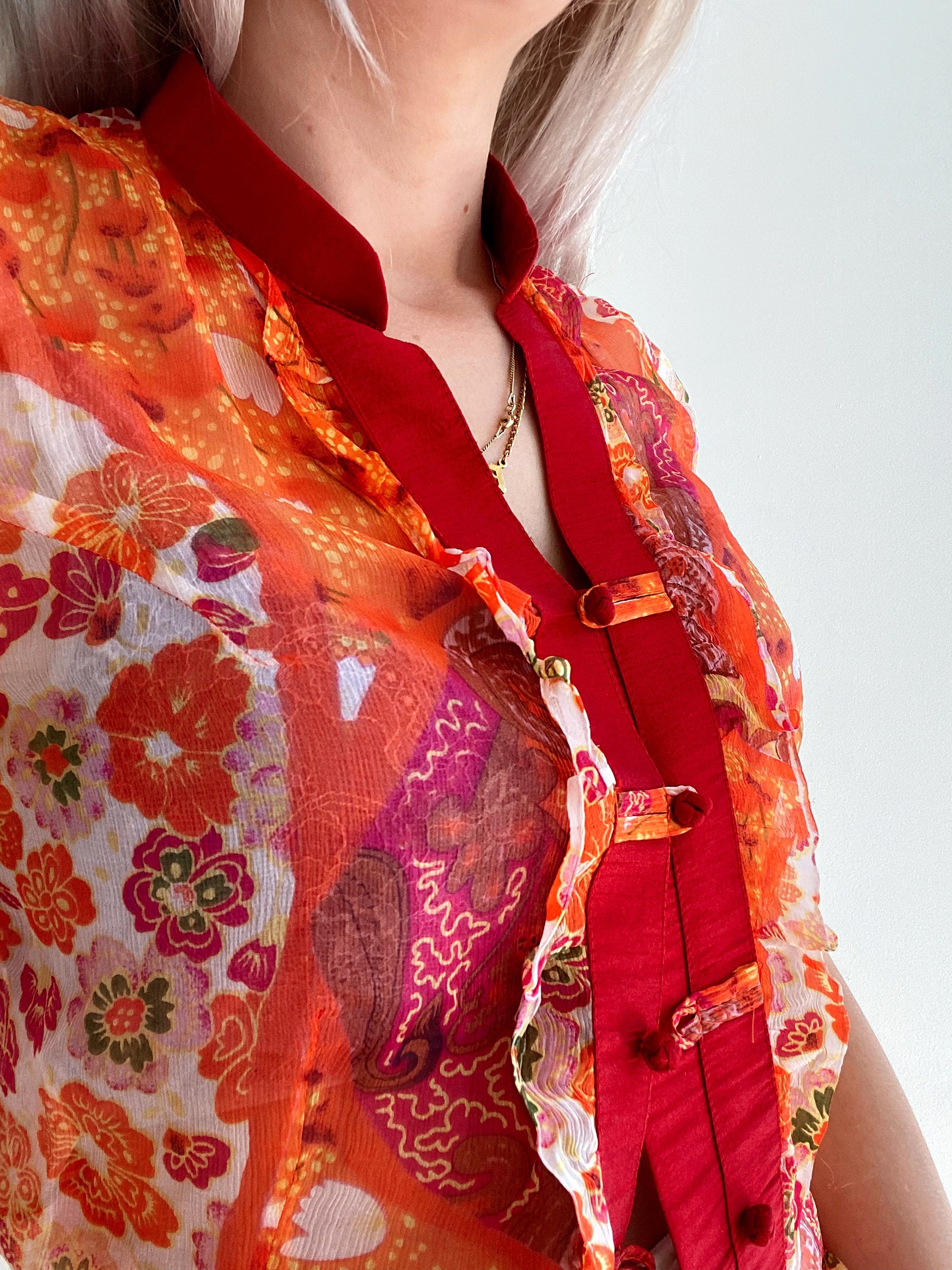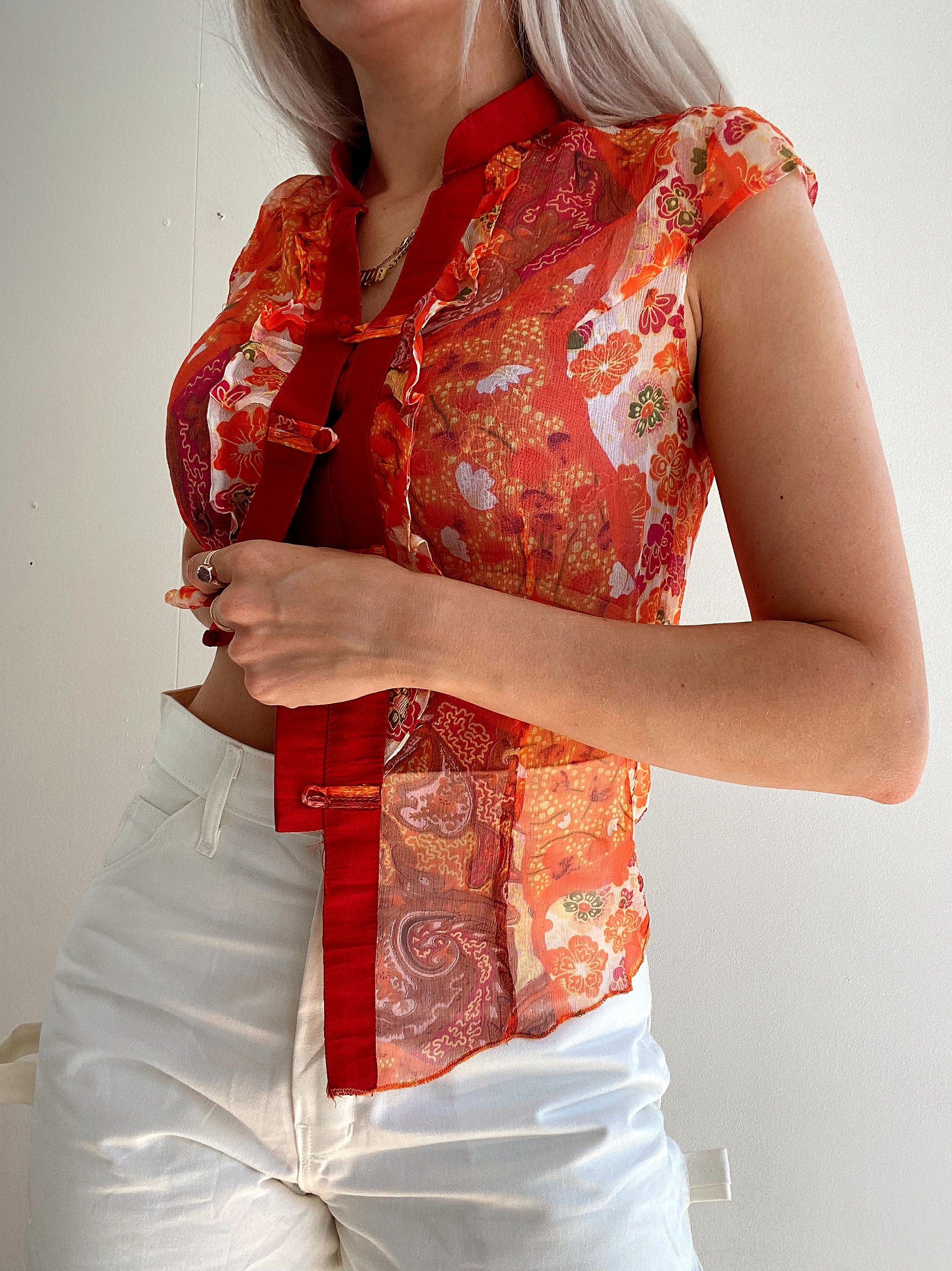Top Vintage 80/90s orange transparent en soie XS