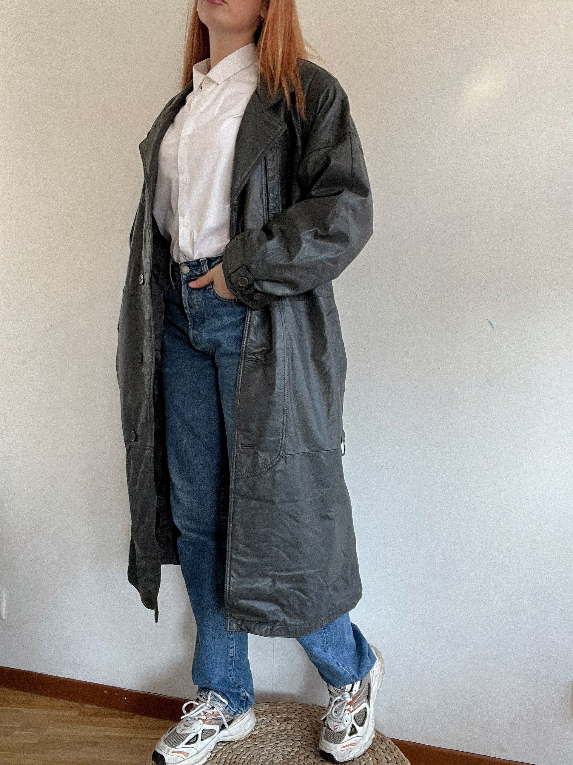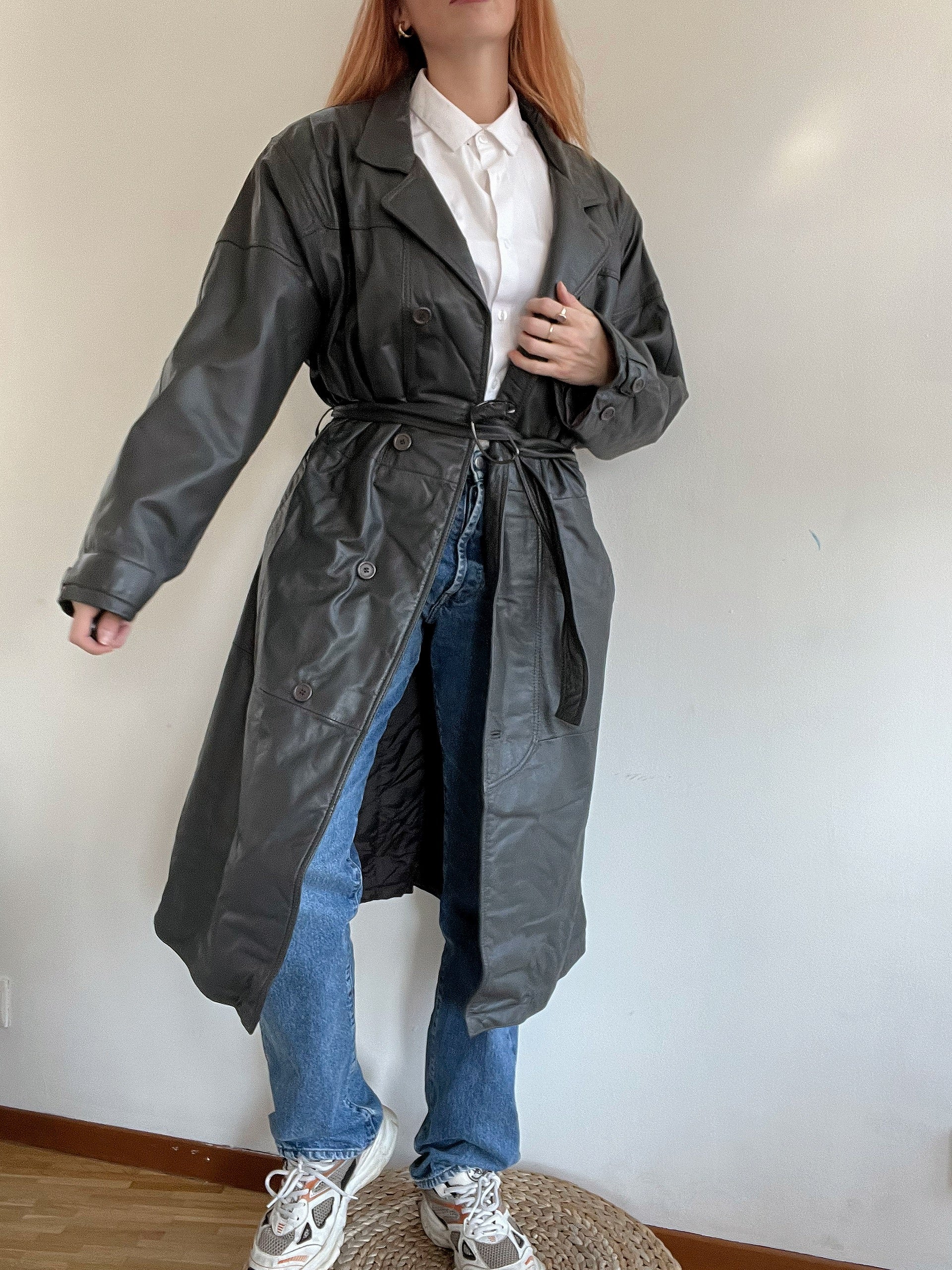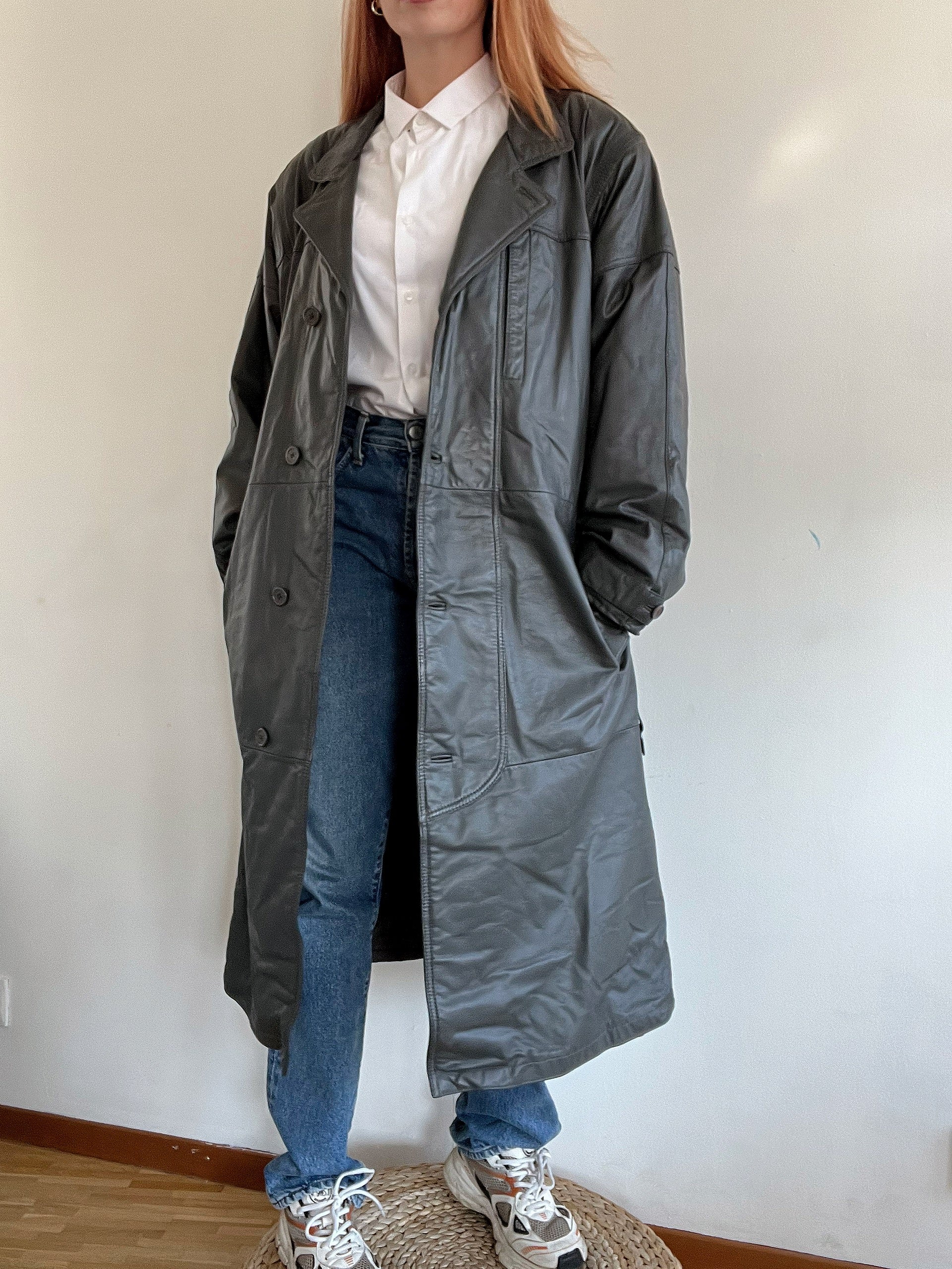 Trench coat gris vintage en cuir L