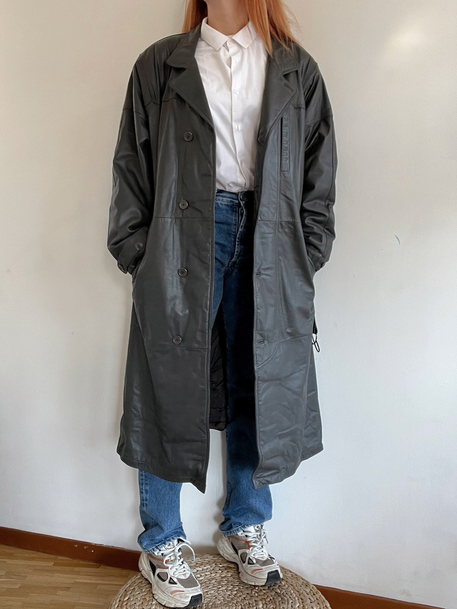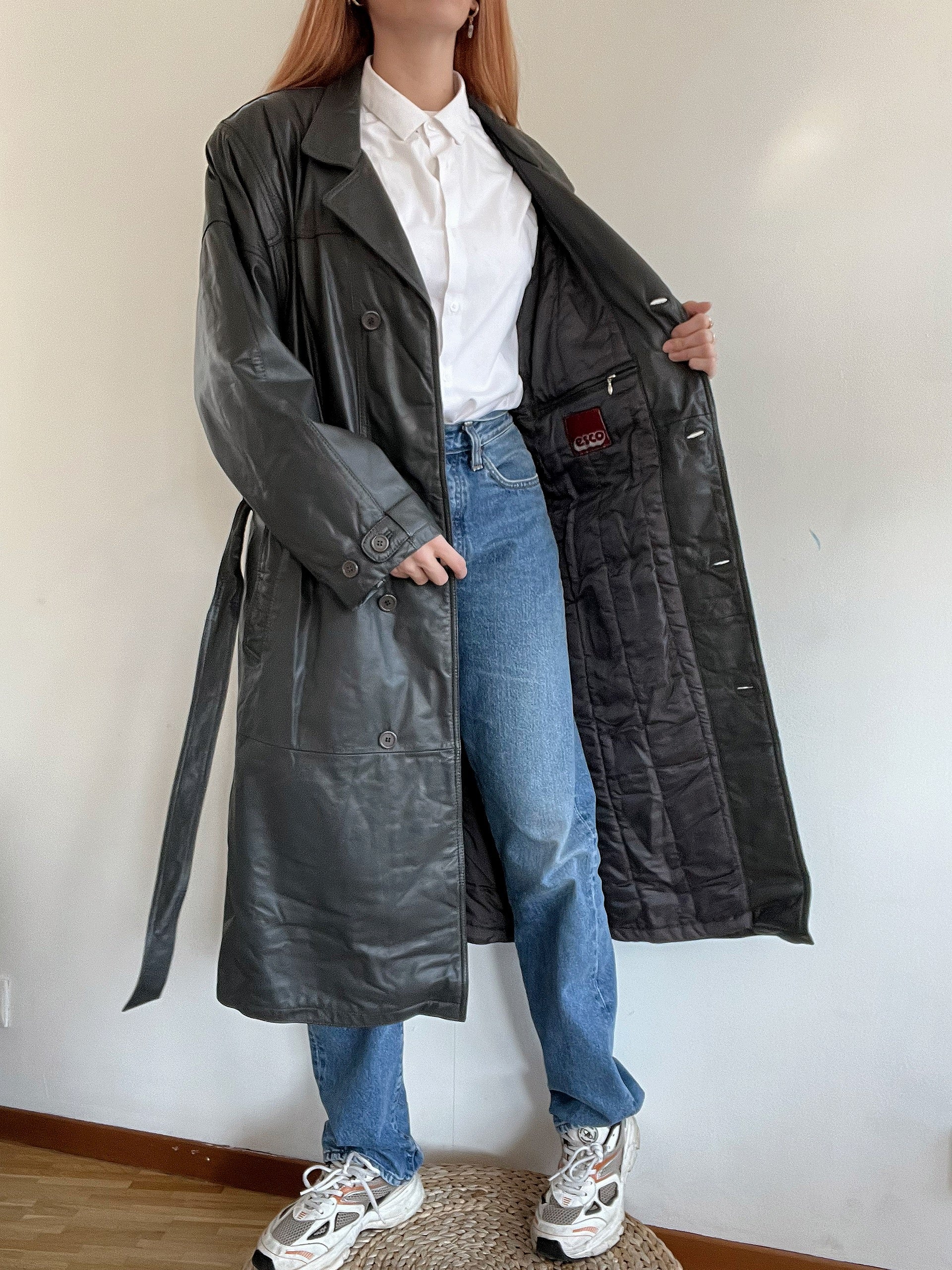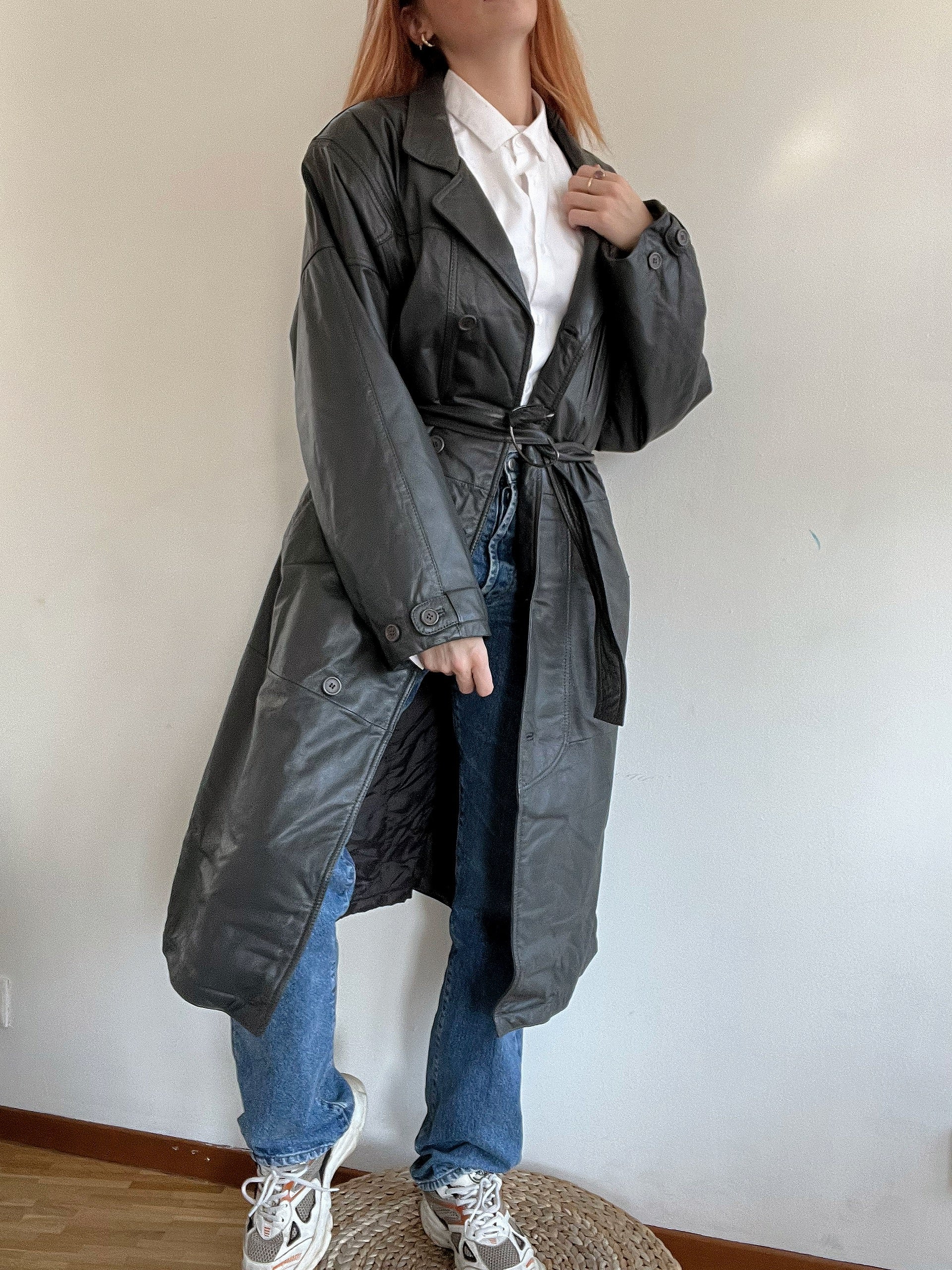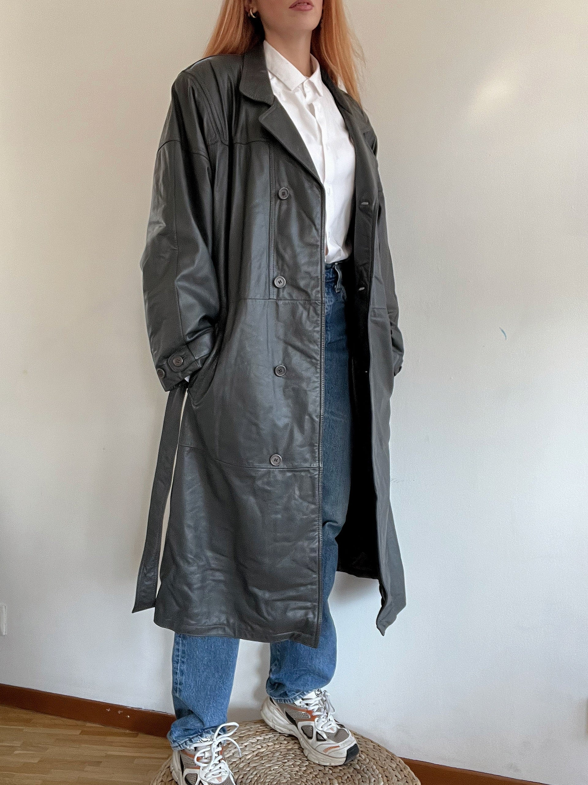 Trench coat gris vintage en cuir L