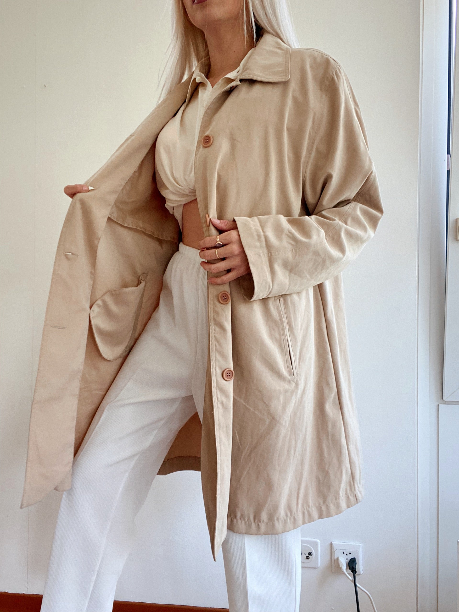 Trench coat vintage mi-long beige