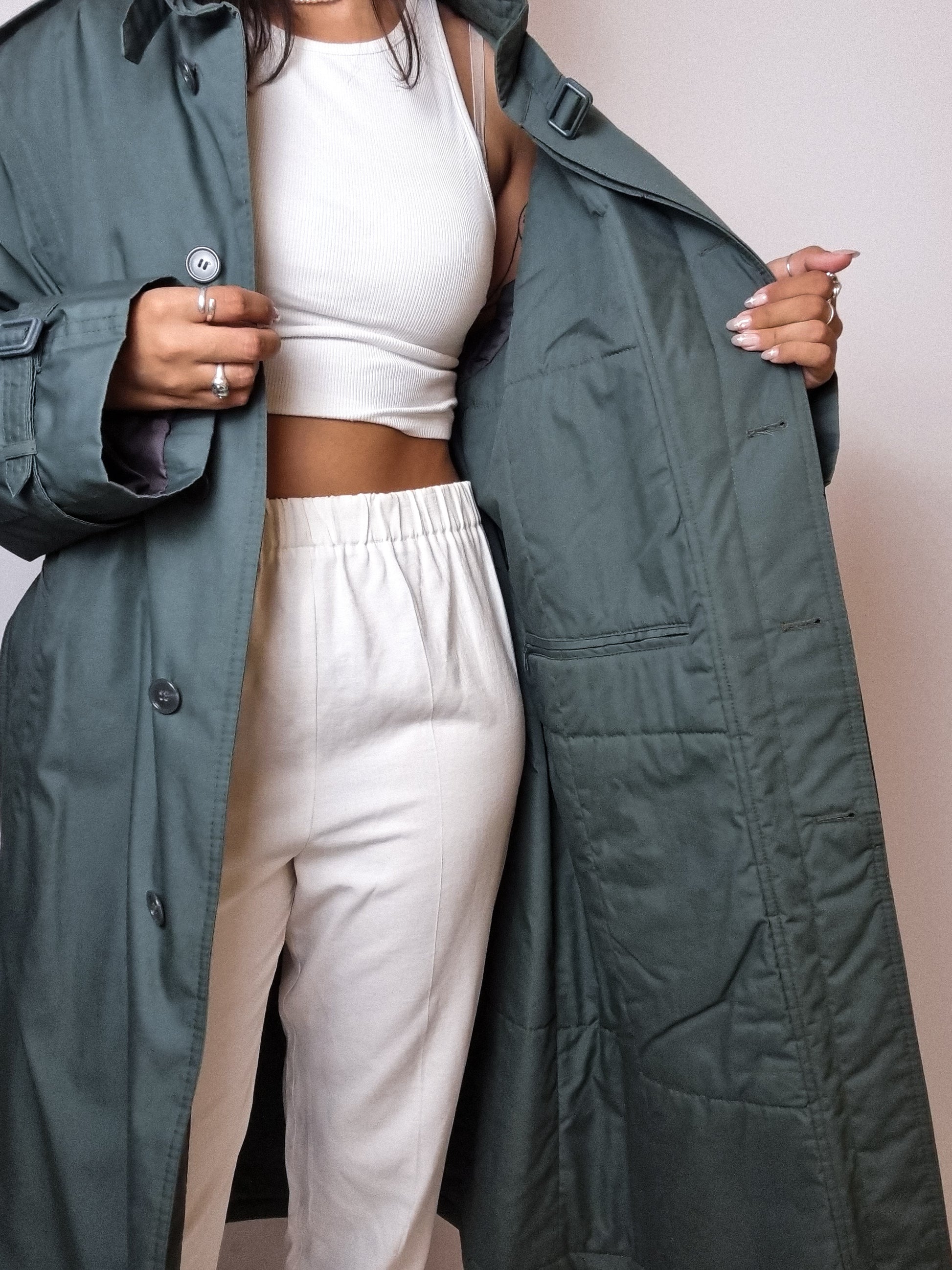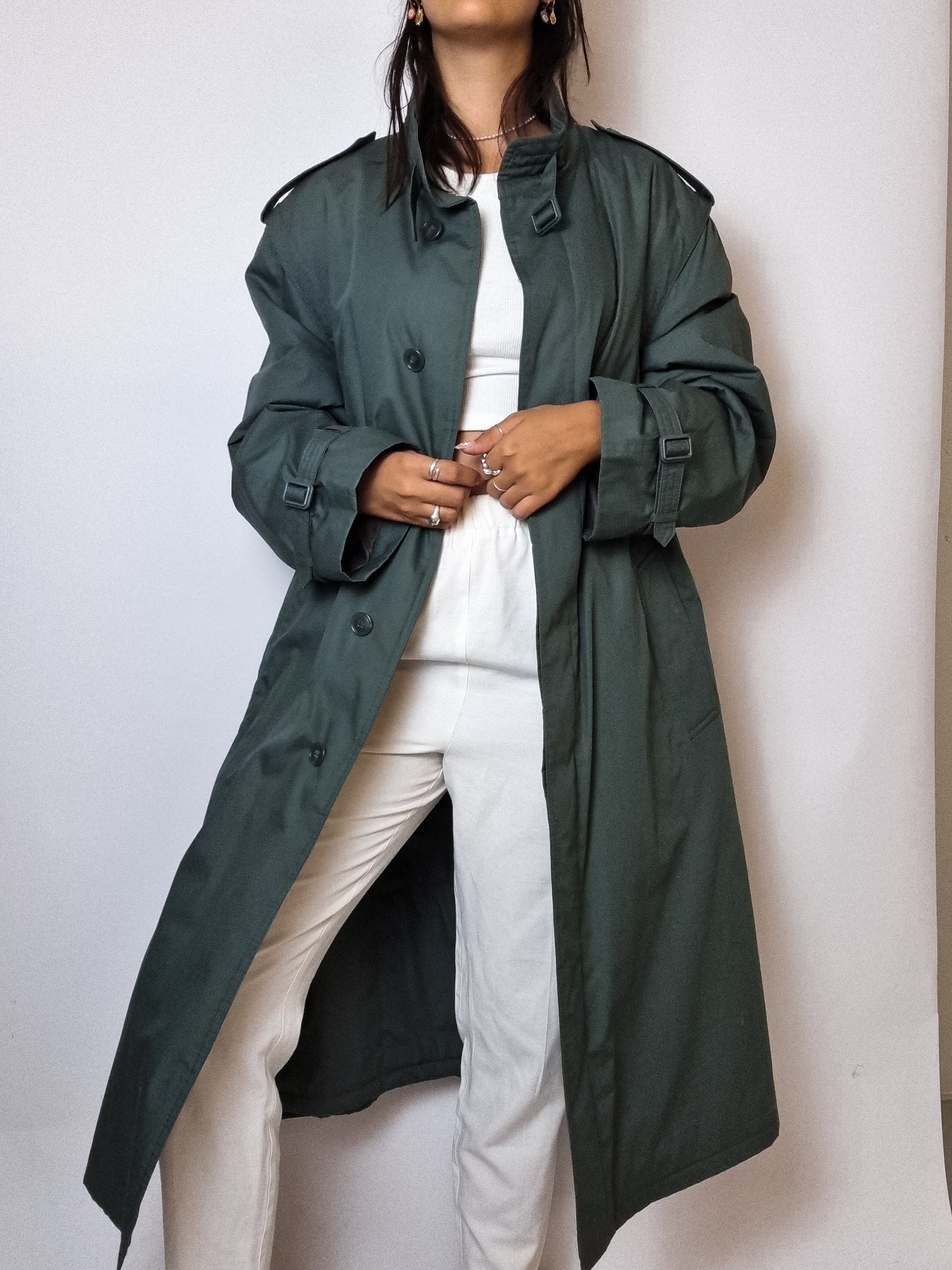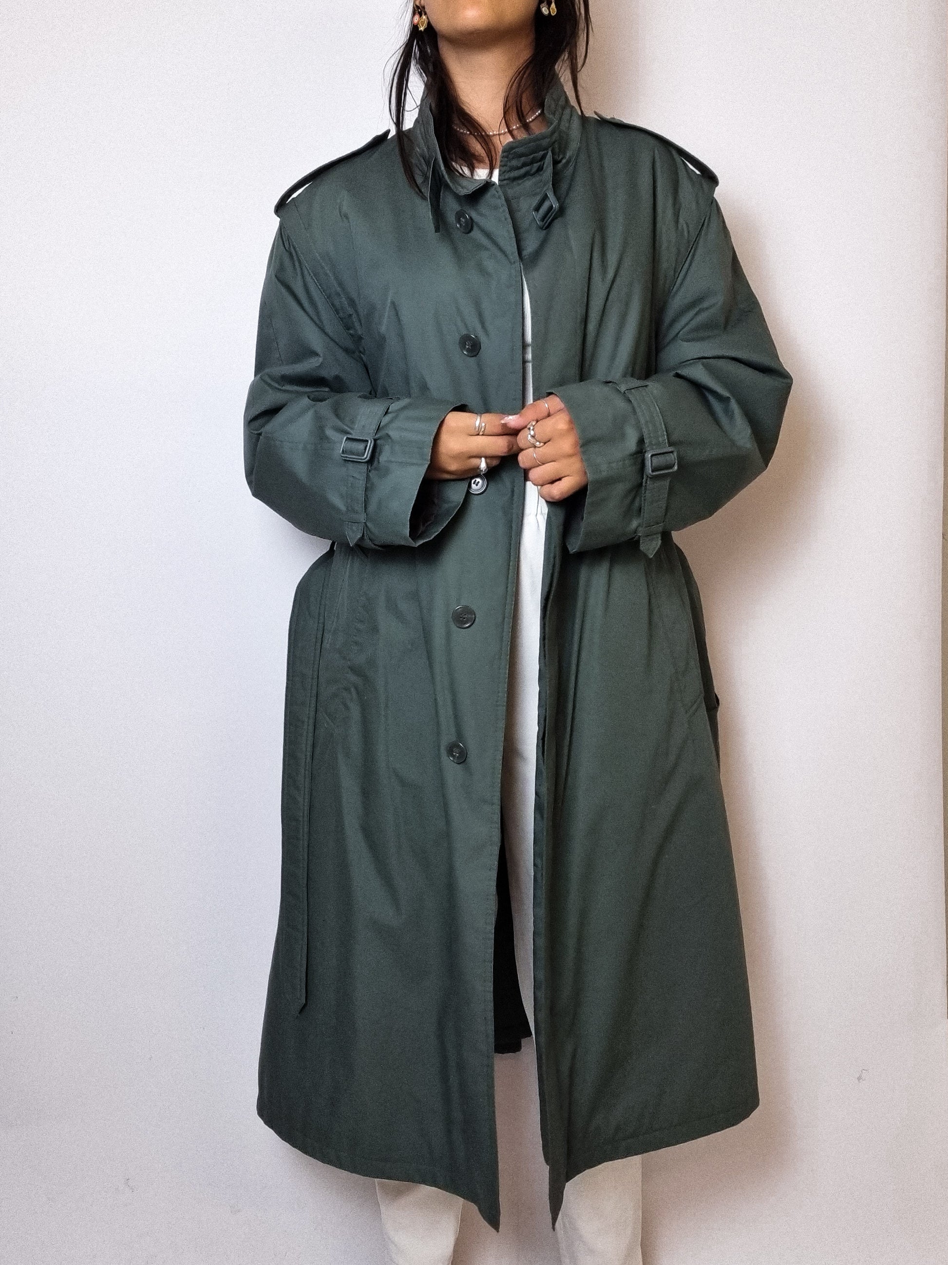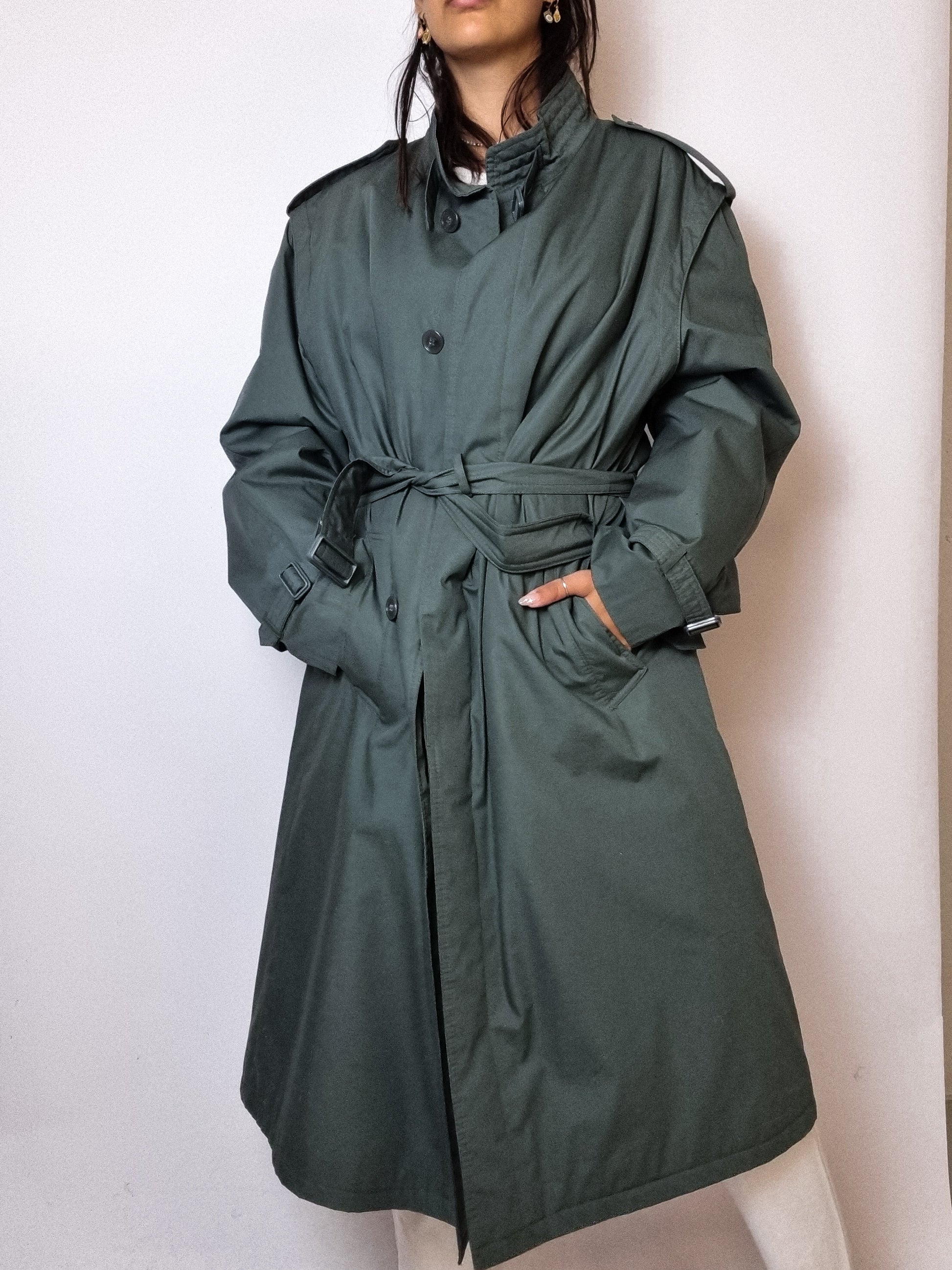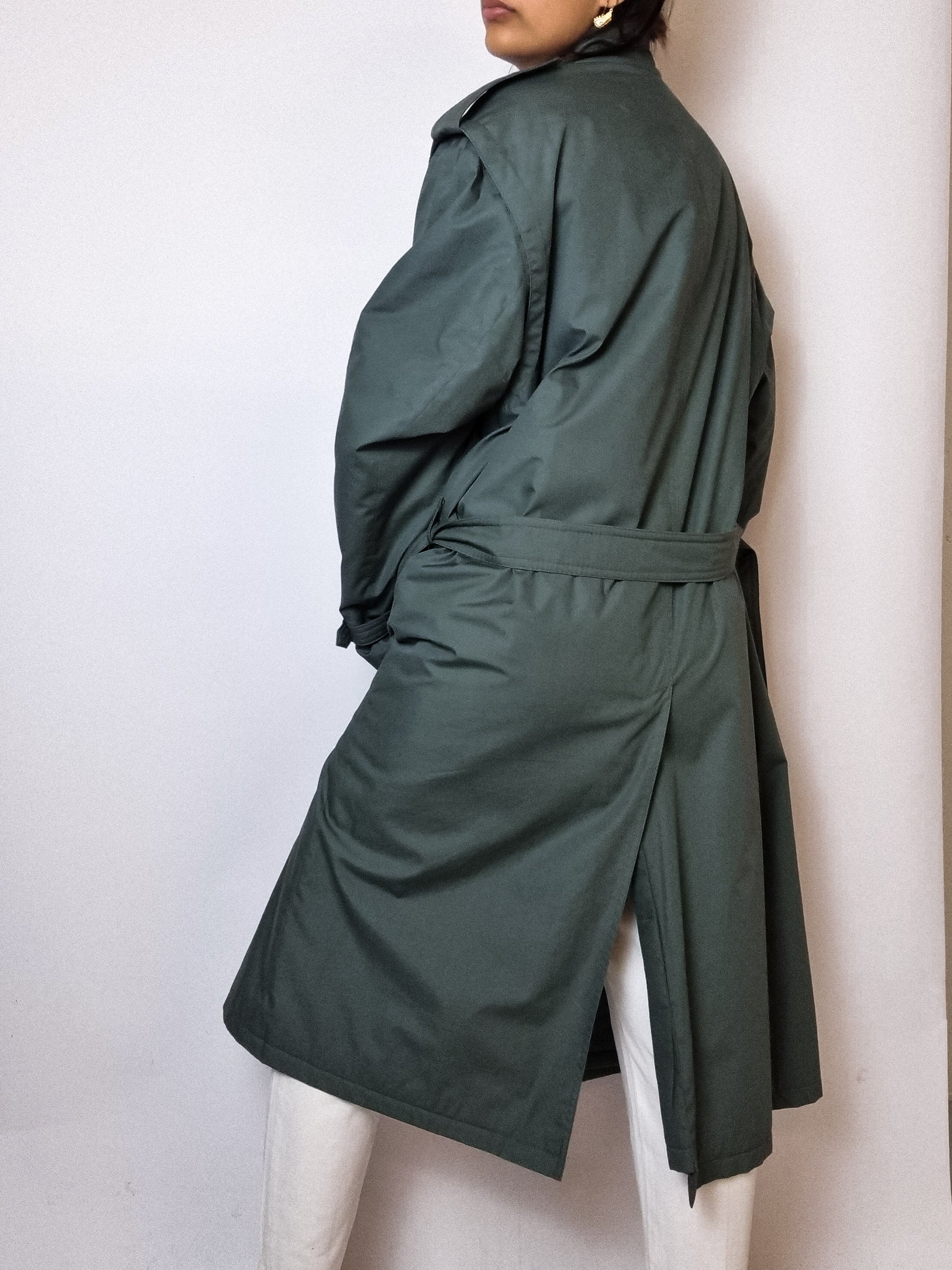Trenchcoat vert foncé vintage M/L