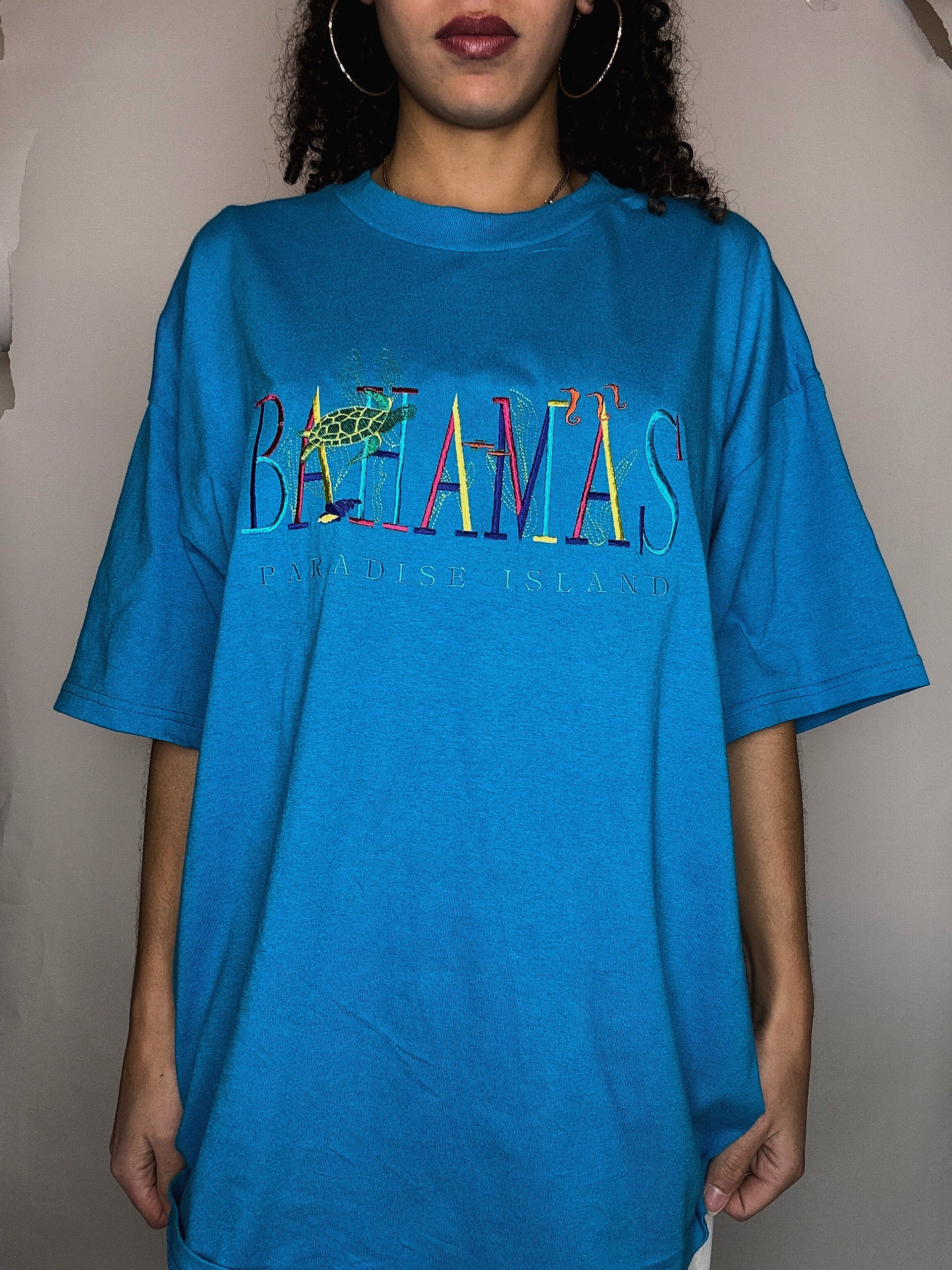 Tshirt brodé bleu Bahamas XL vintage