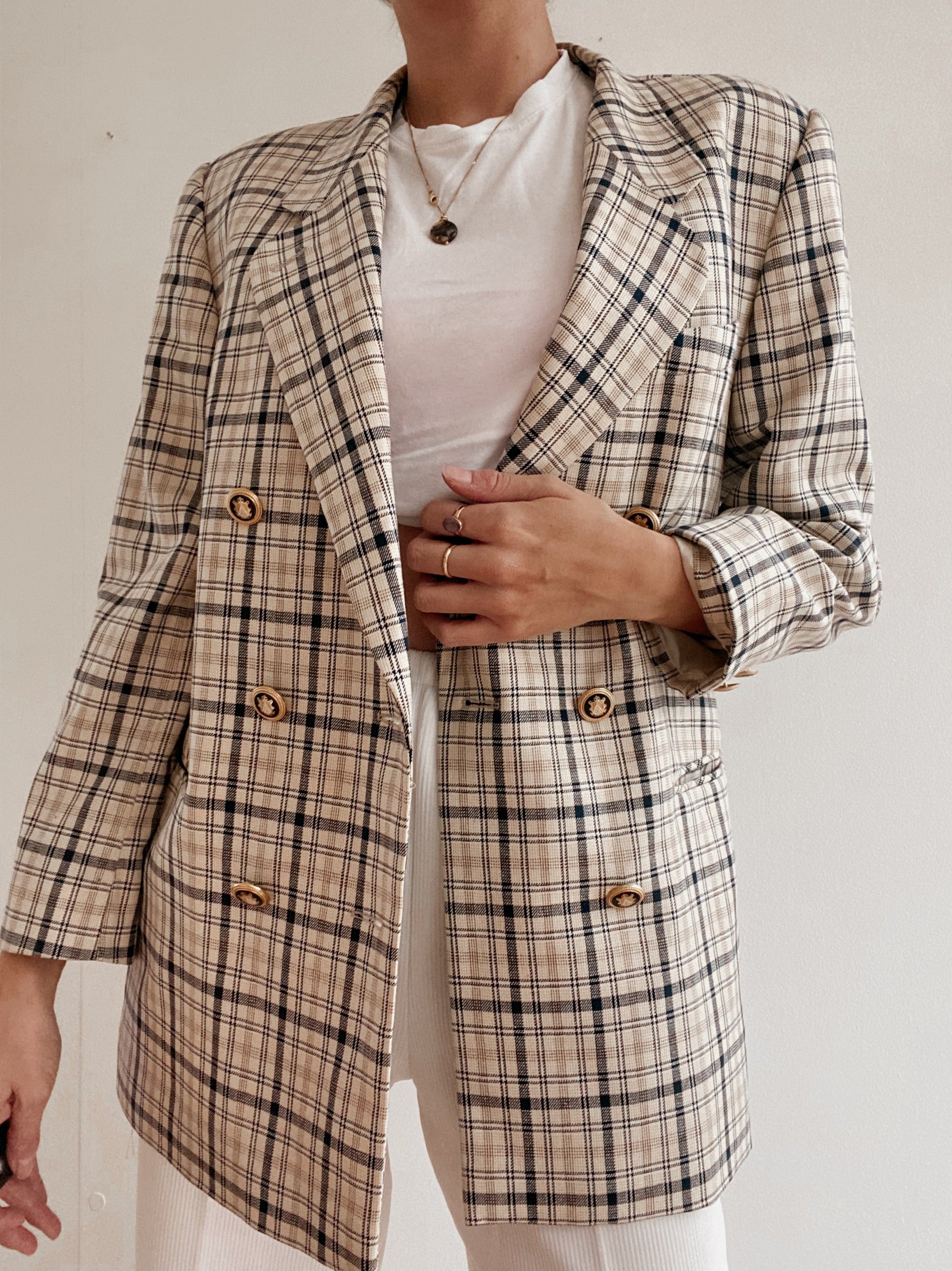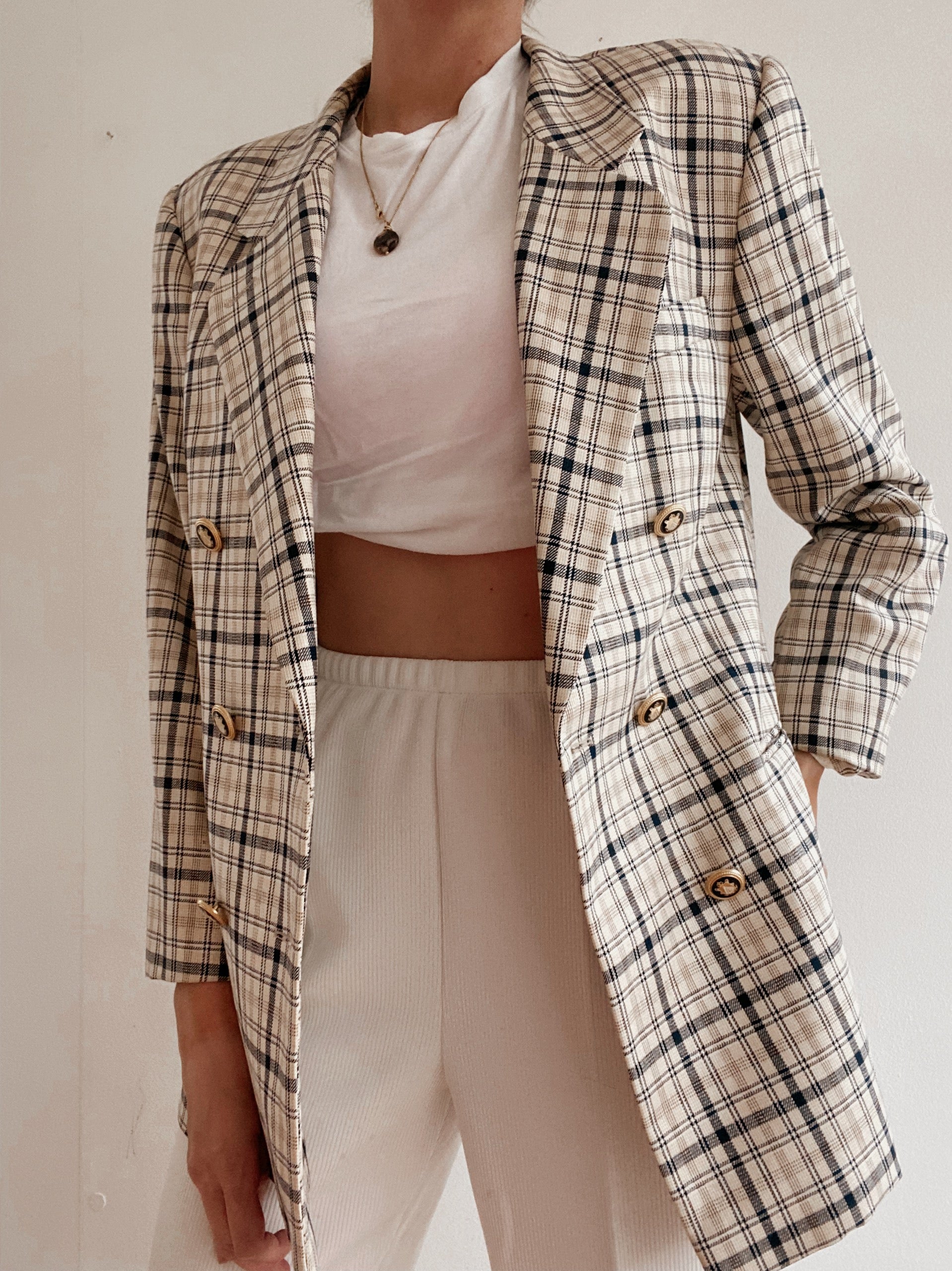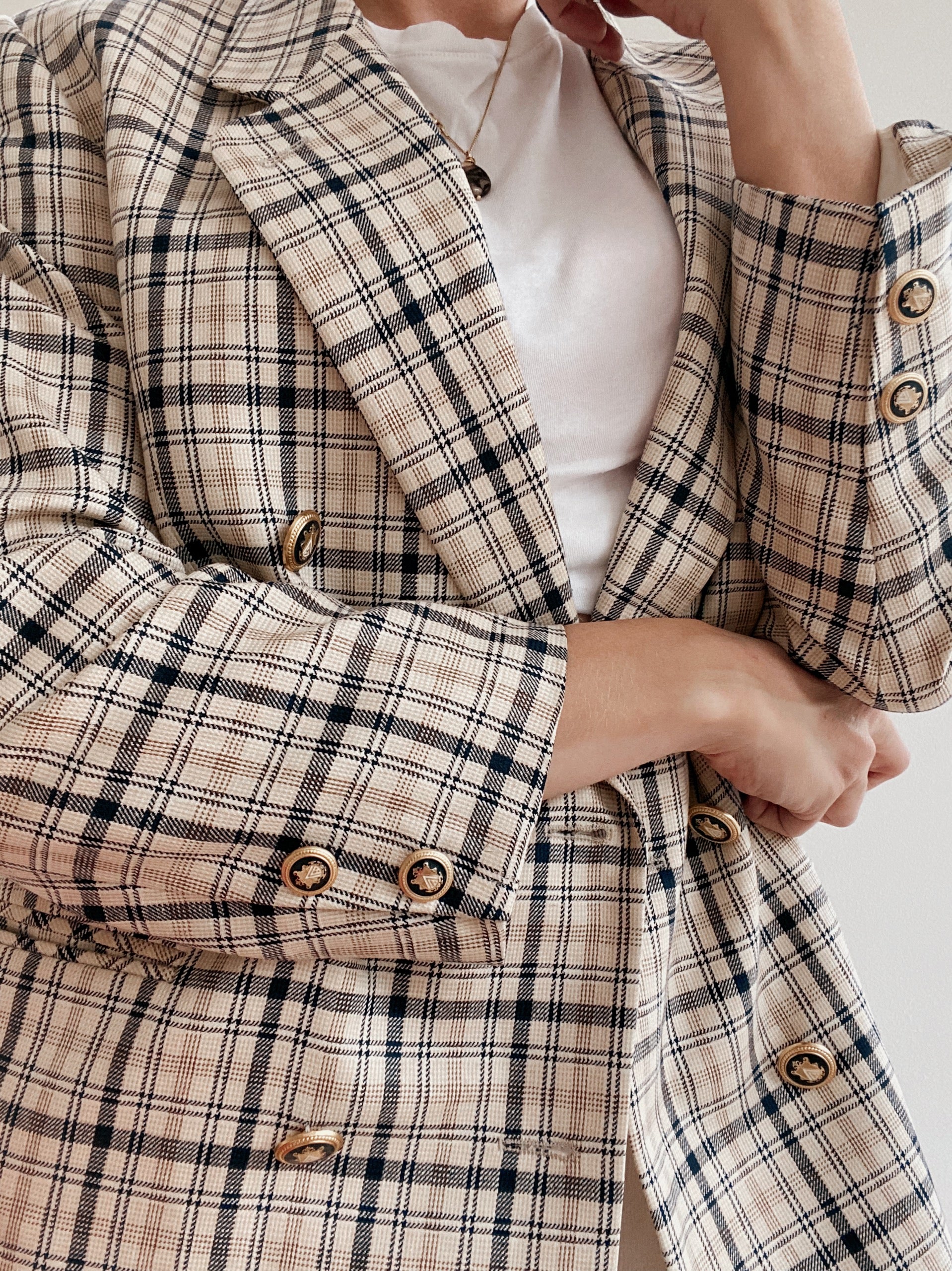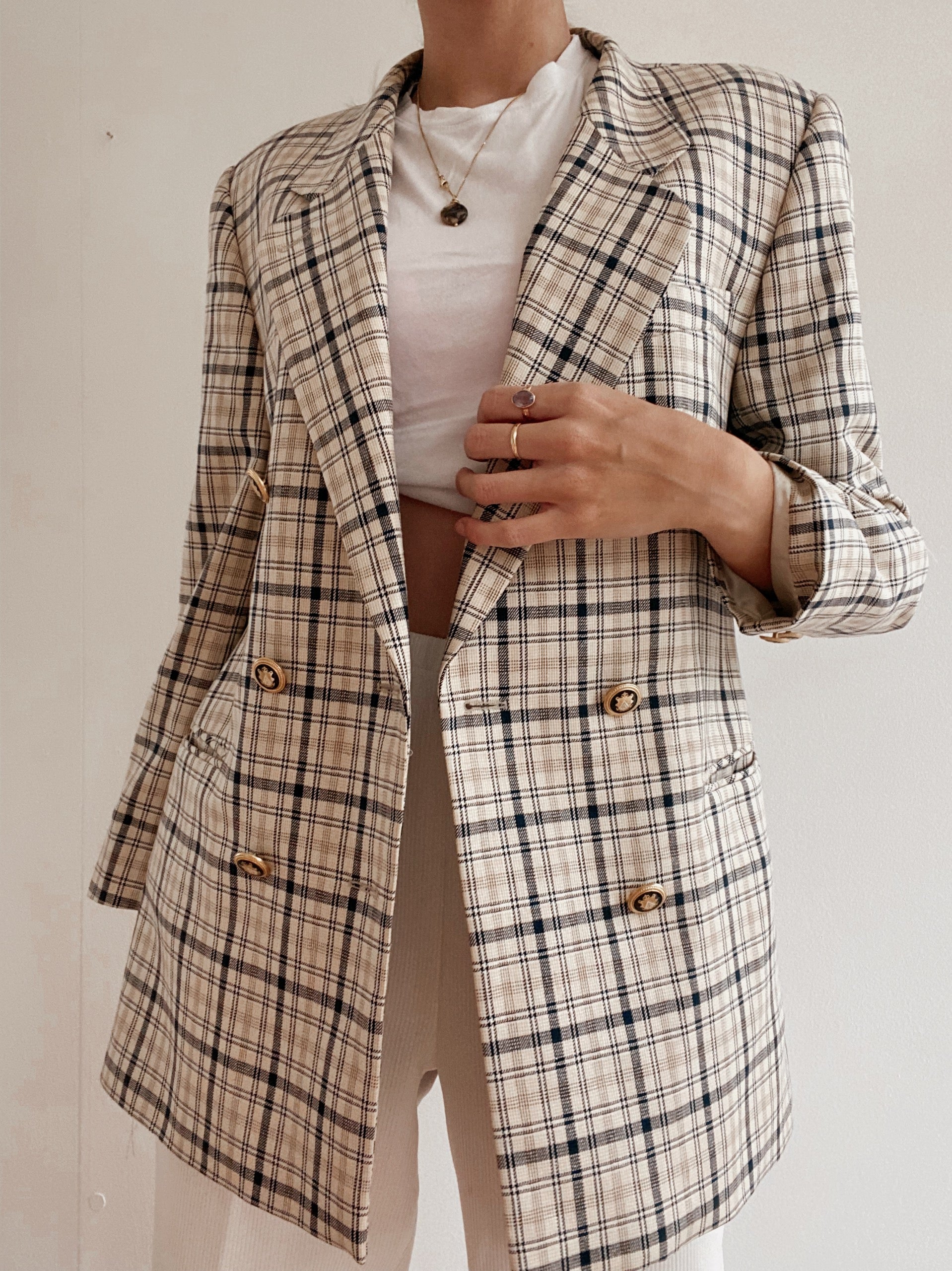 Veste blazer blanc cassé à carreaux boutons dorés M