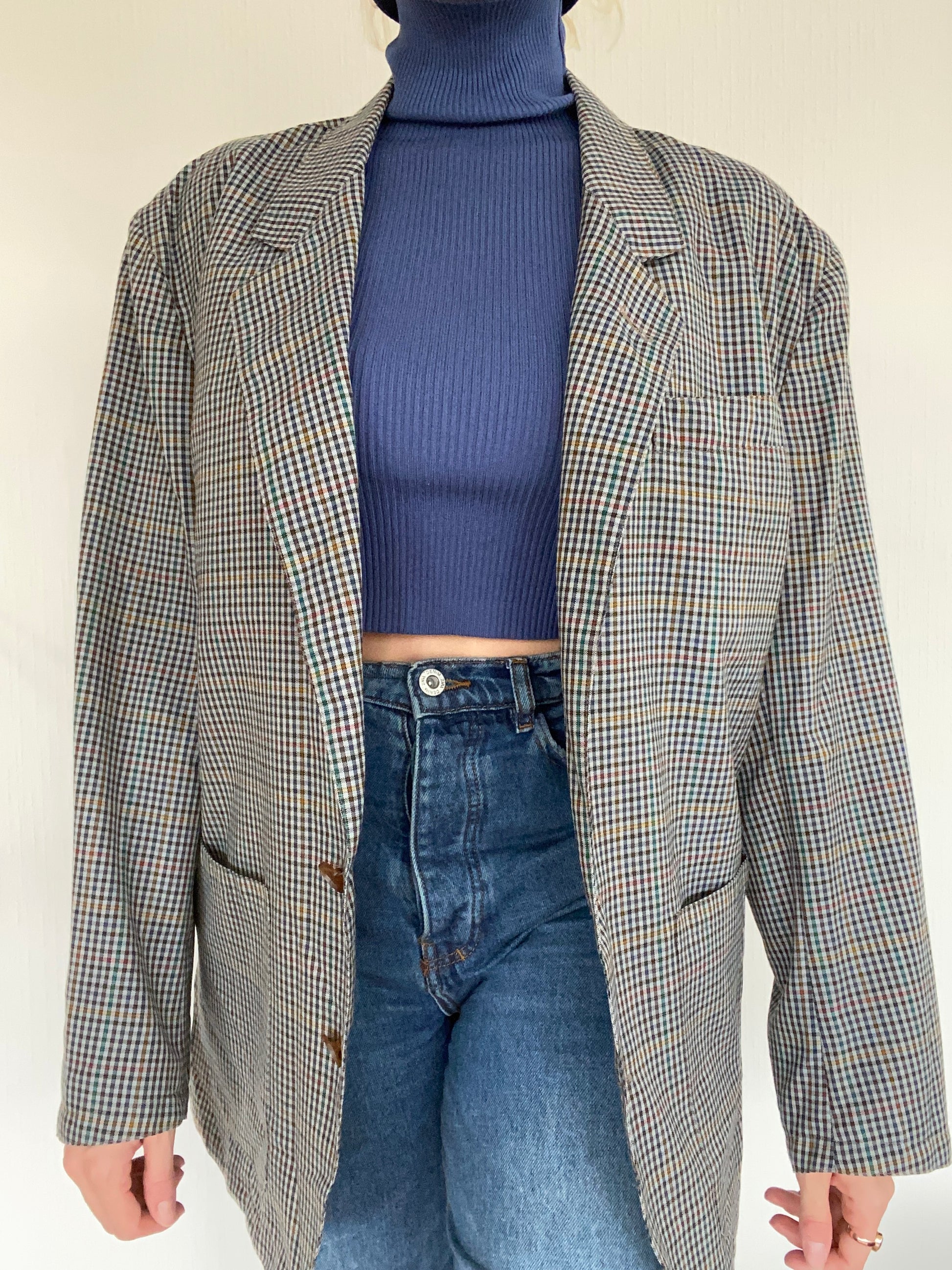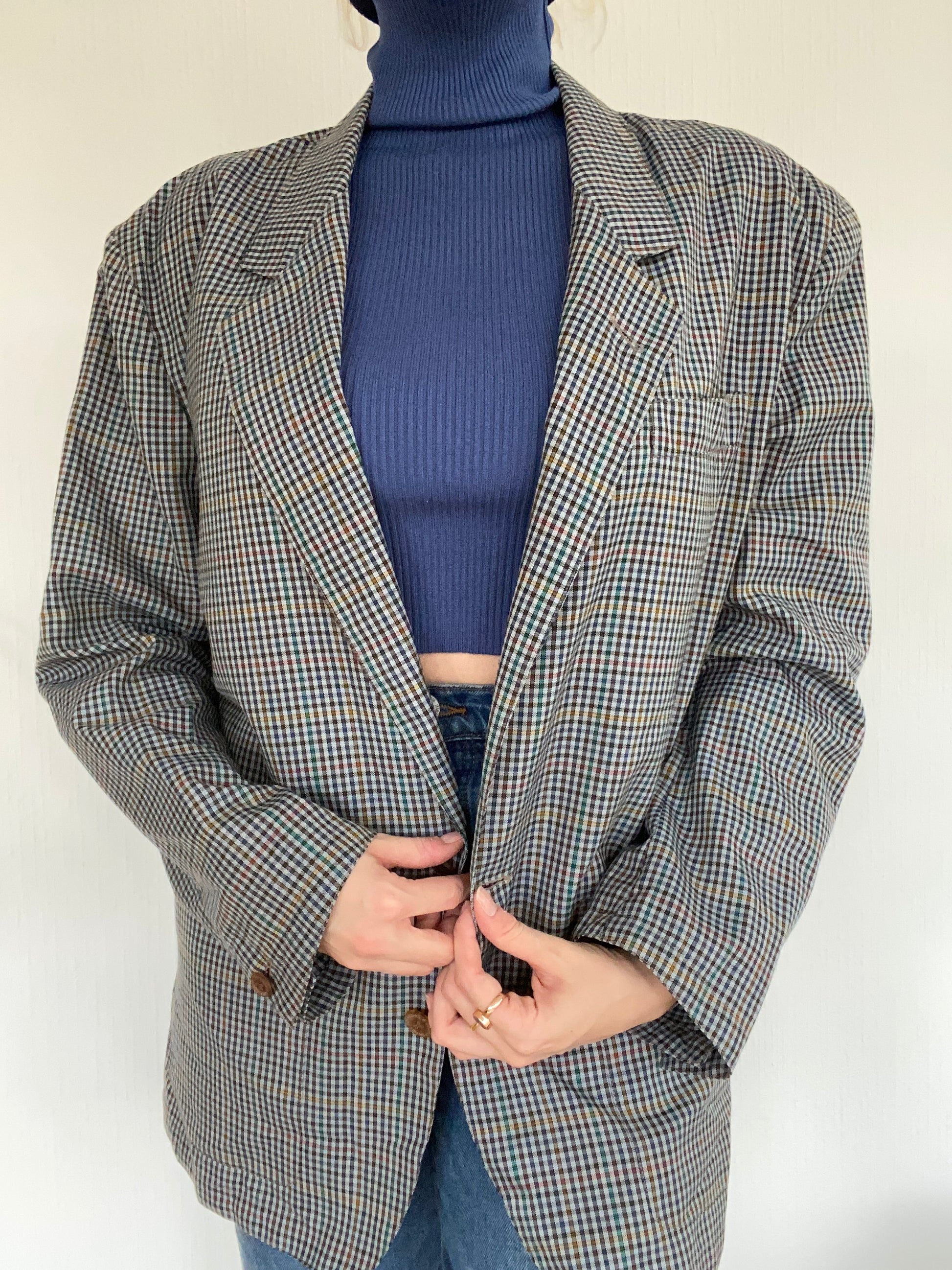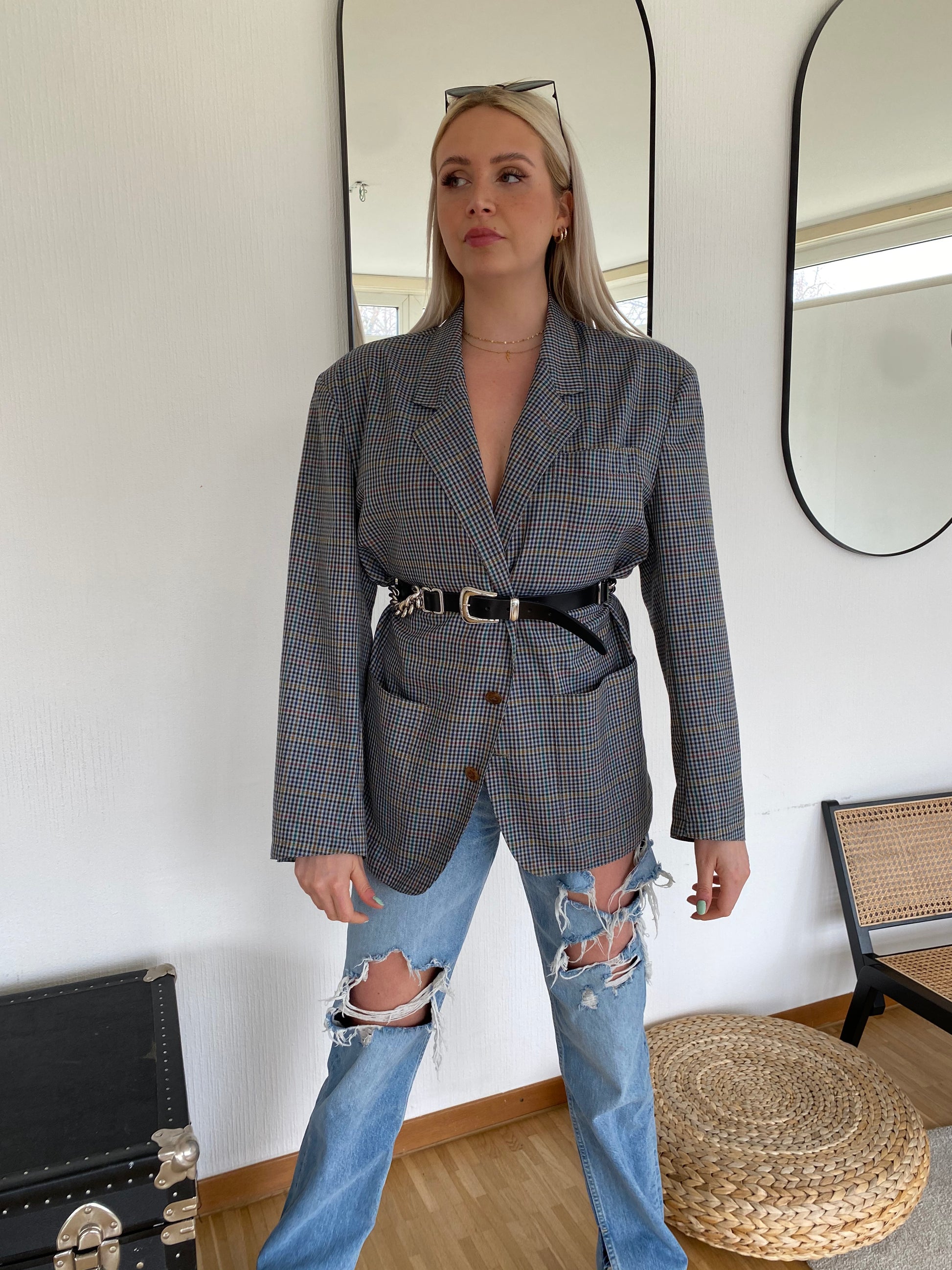 Veste Blazer oversize gris/bleu quadrillé L