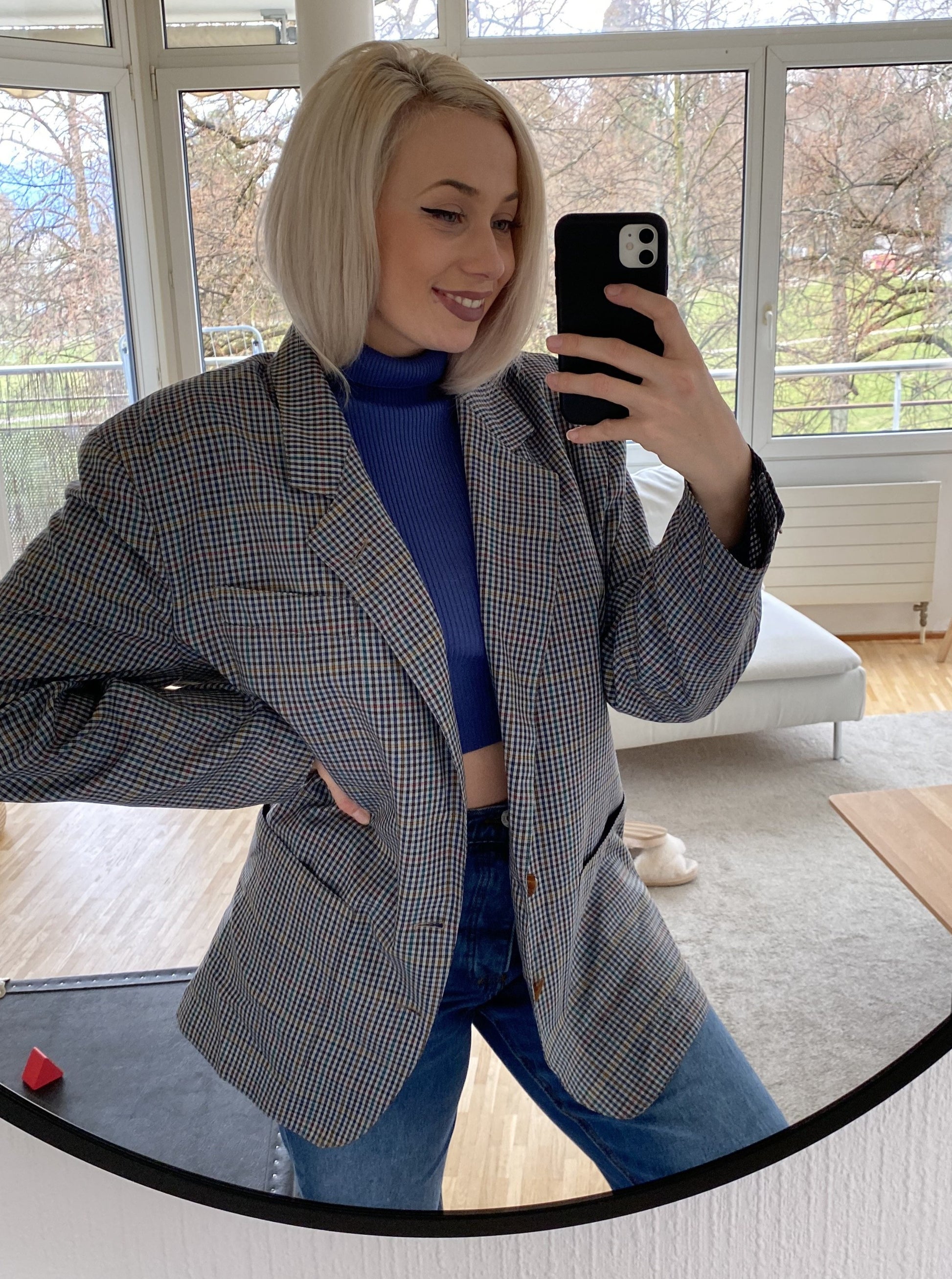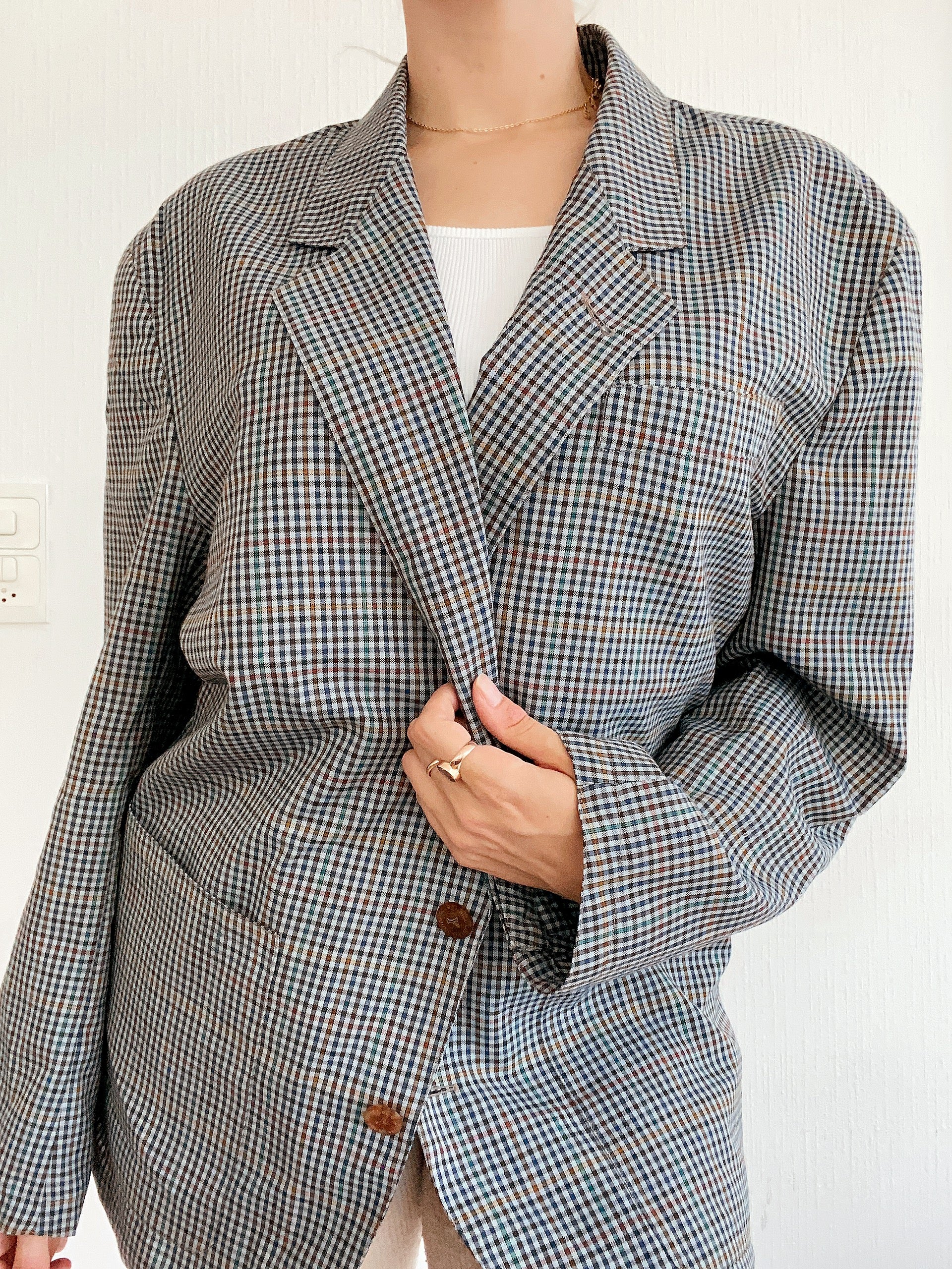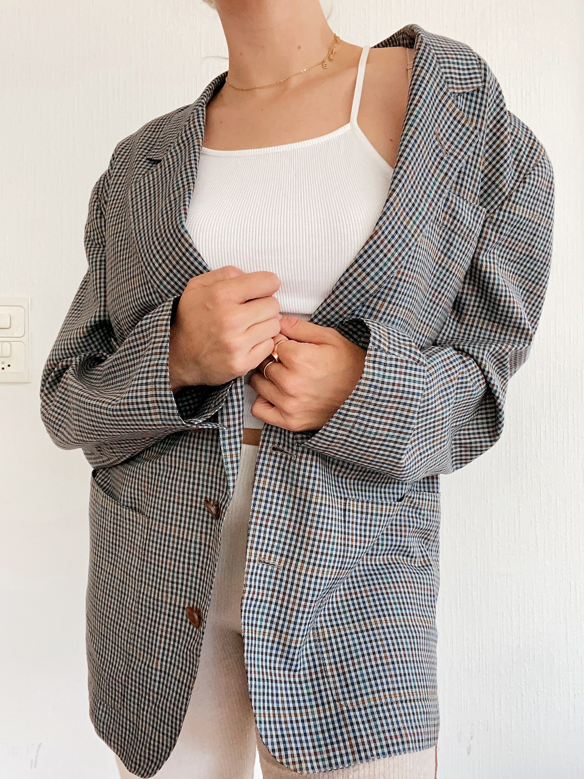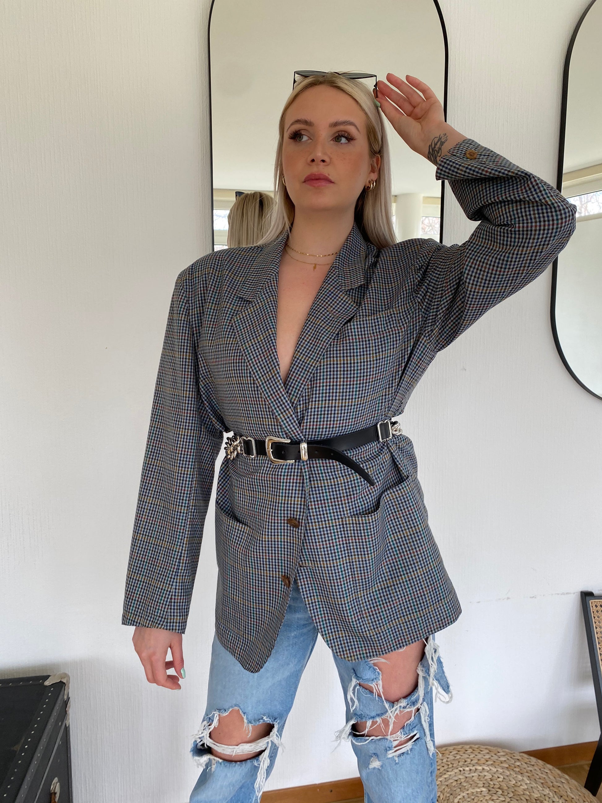 Veste Blazer oversize gris/bleu quadrillé L