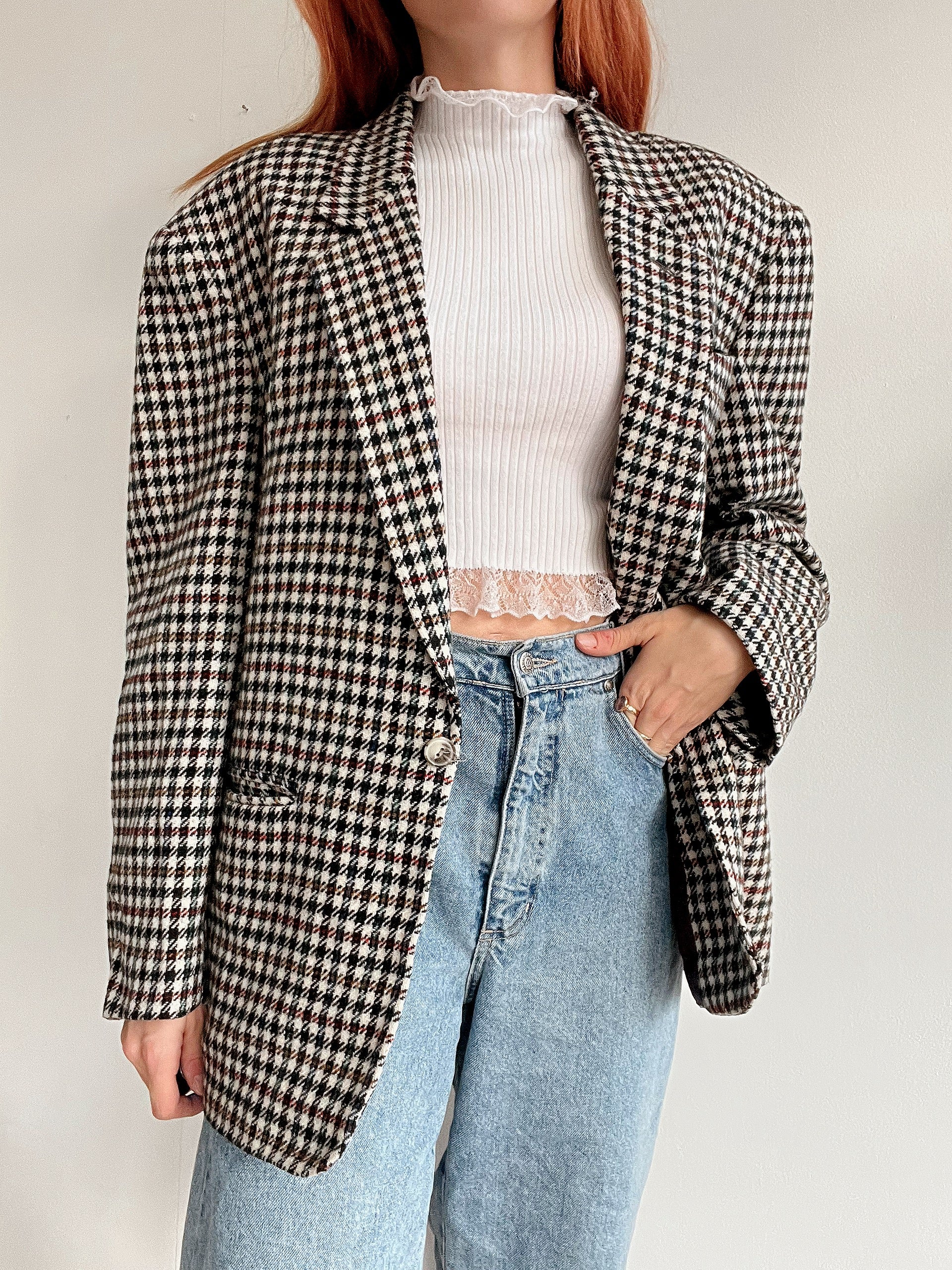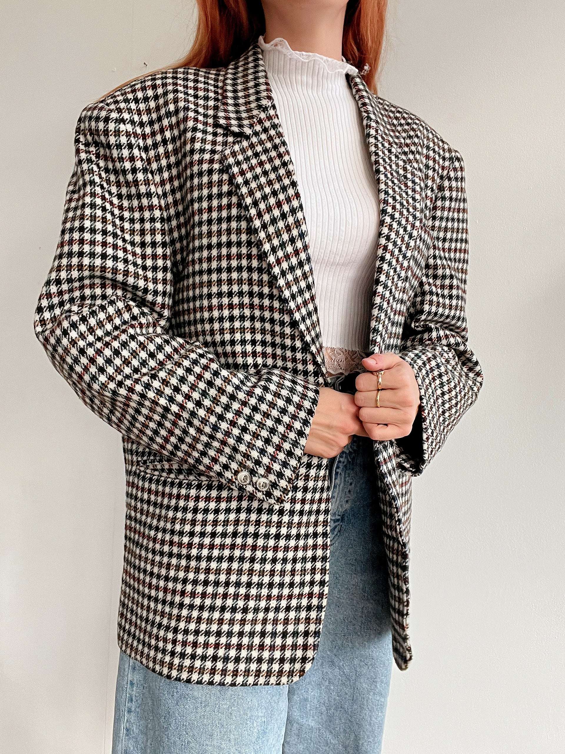 Veste blazer épaisse vintage pied de poule noir,vert,rouge L/XLa