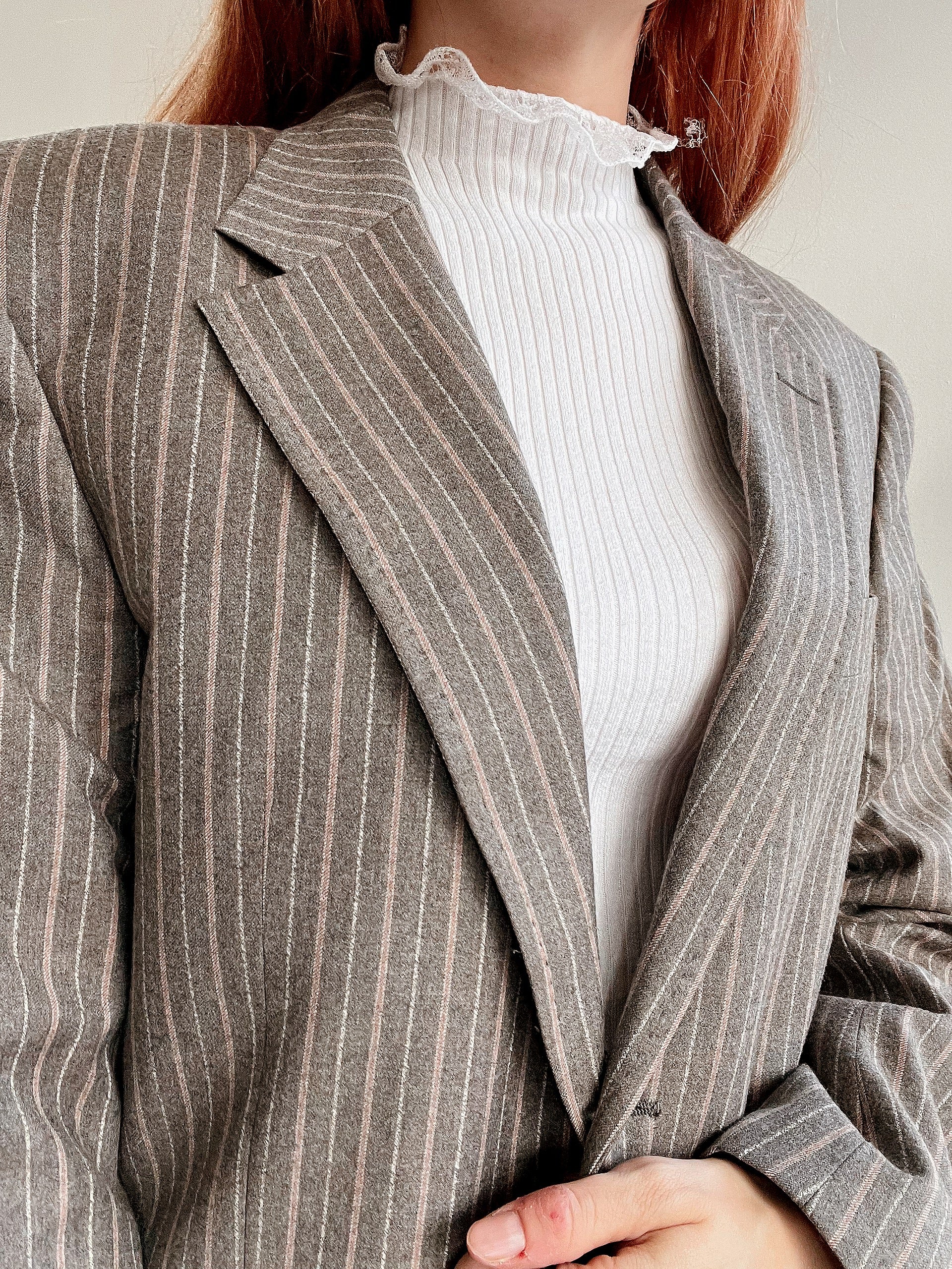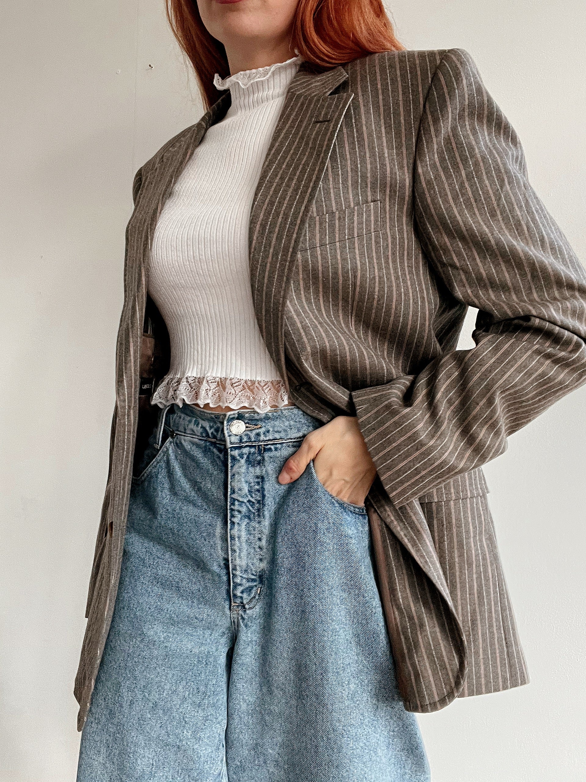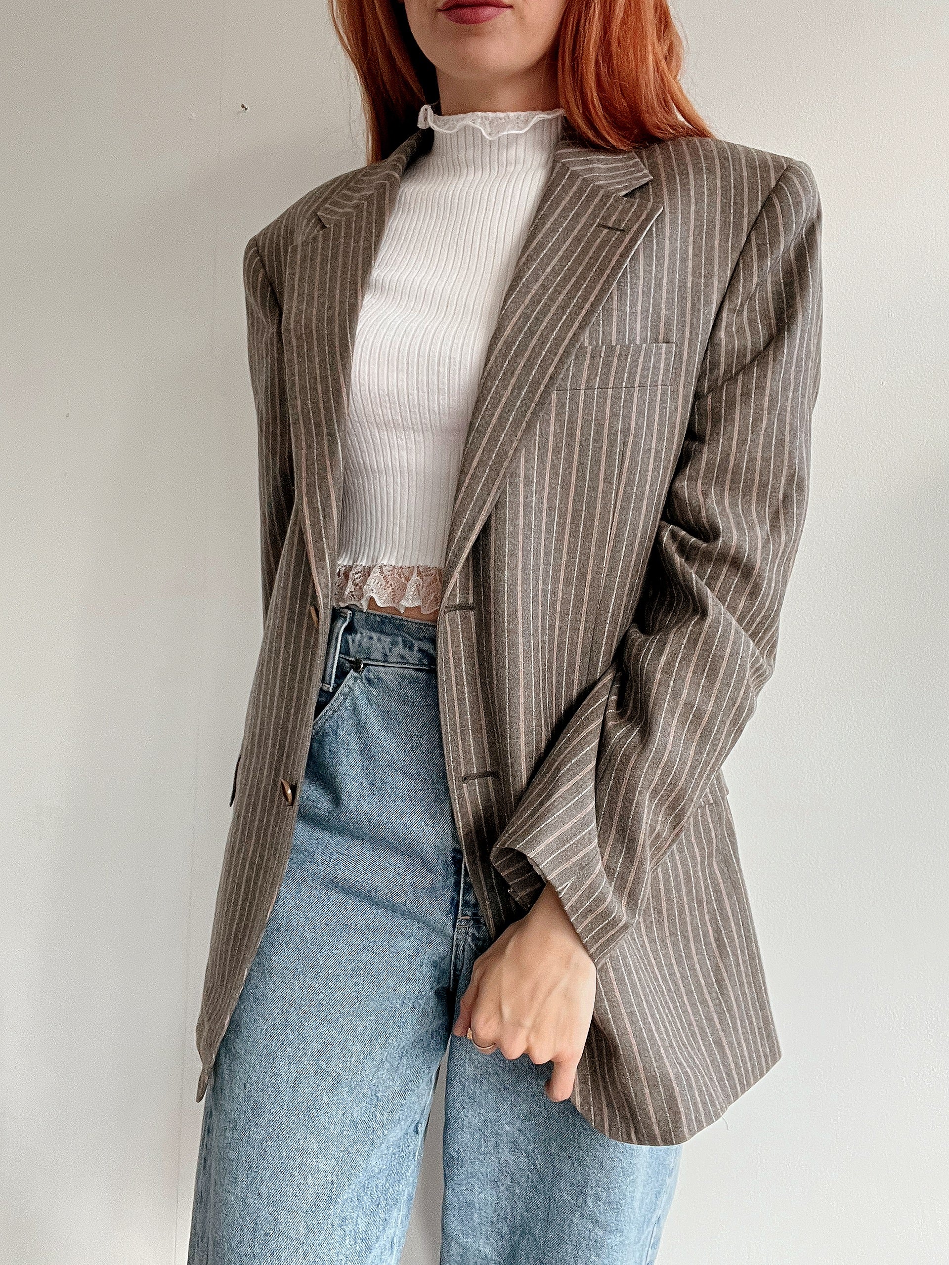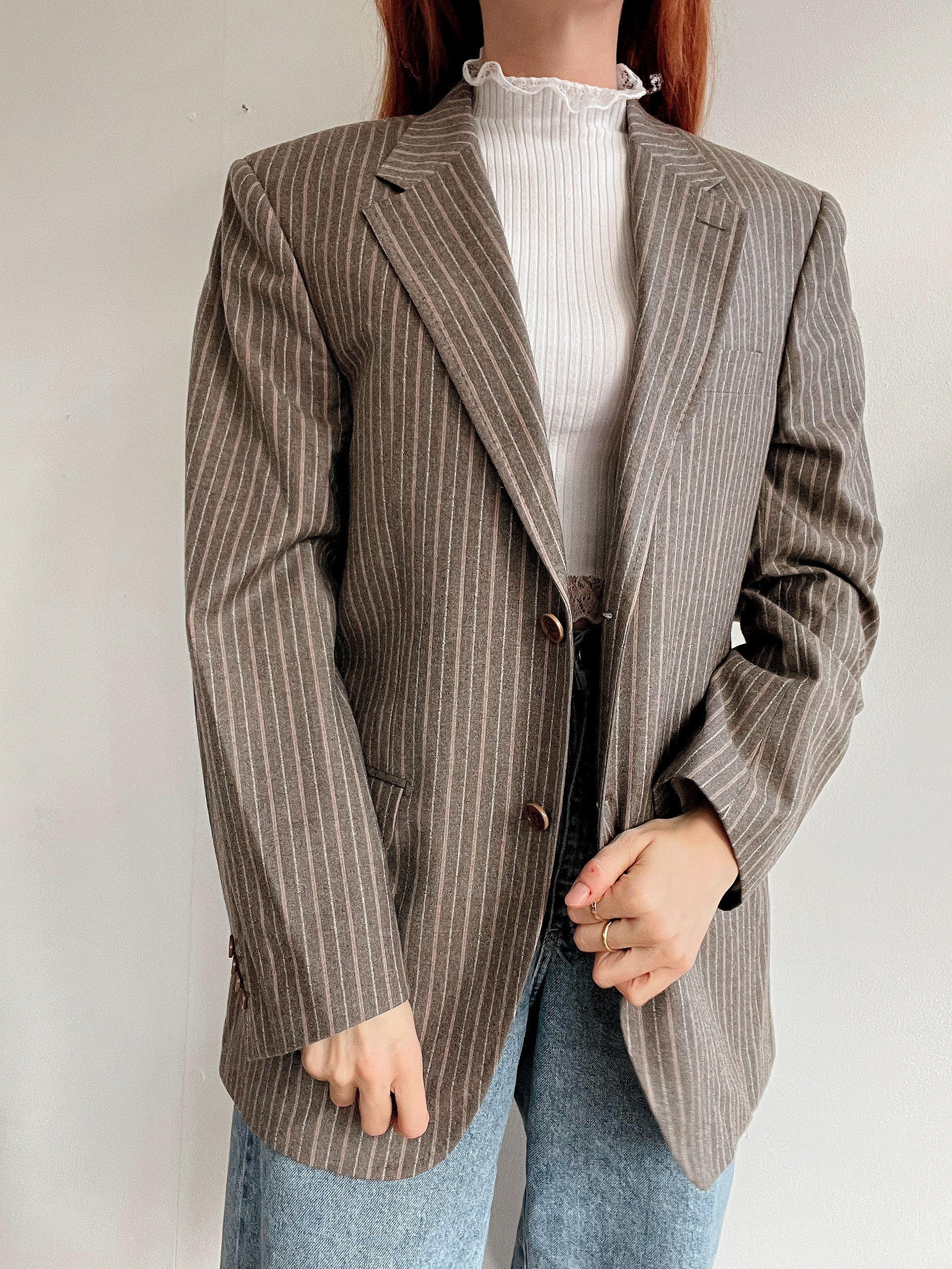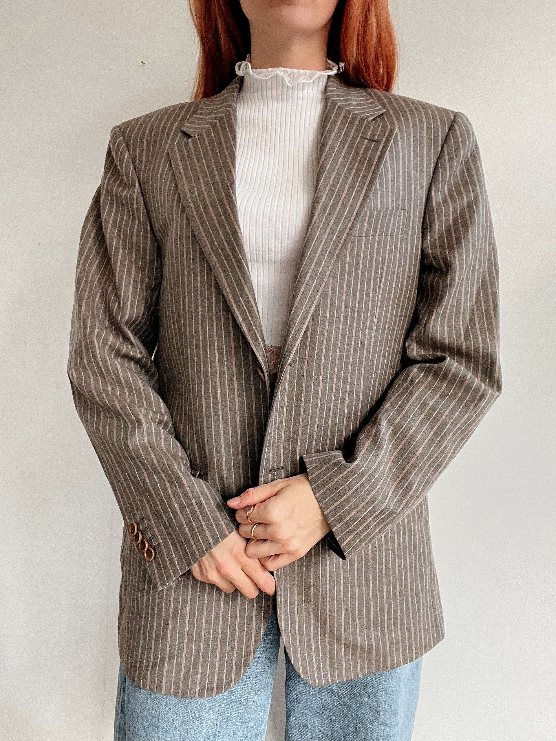 Veste blazer épaisse vintage taupe lignée M/L