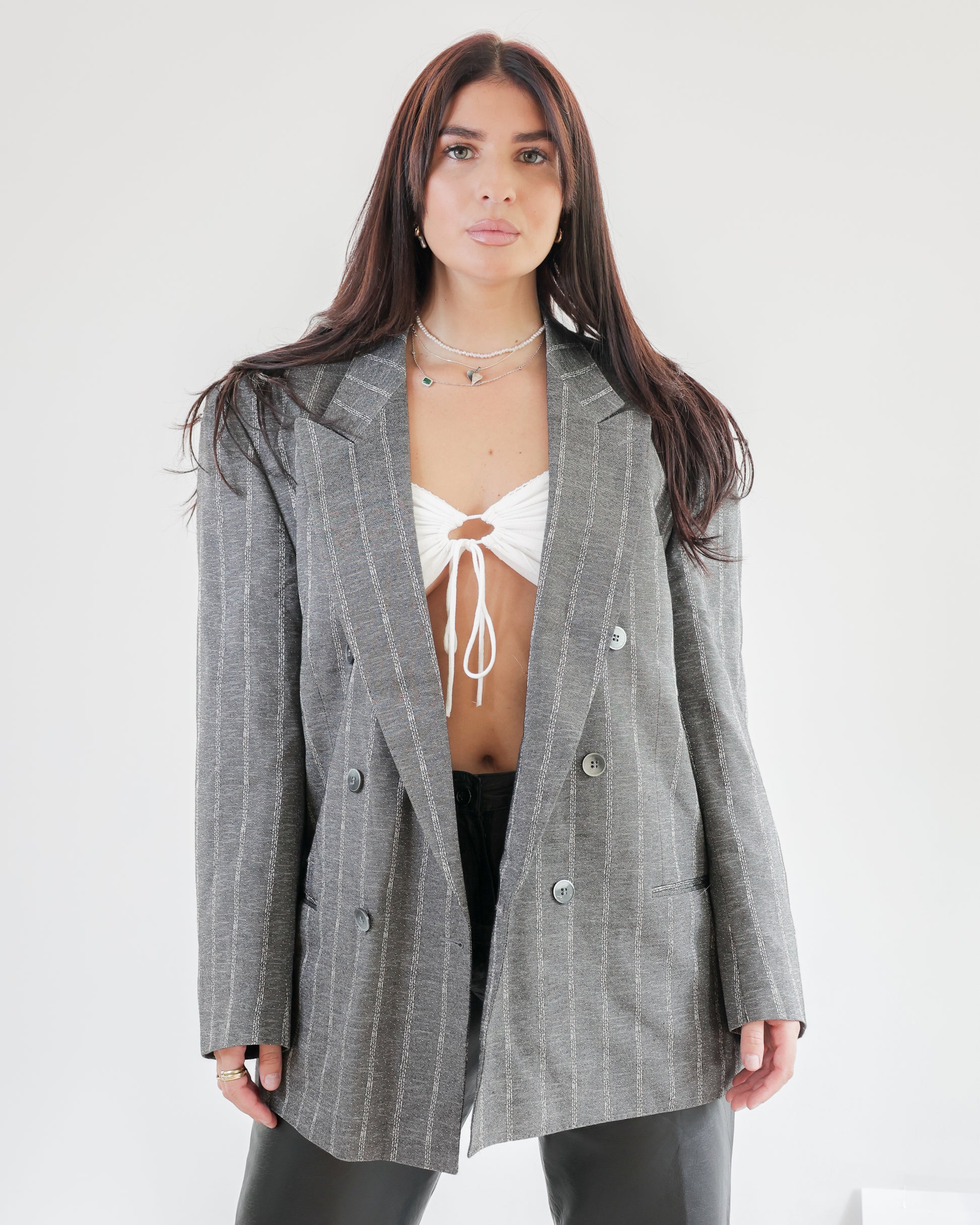 Veste blazer grise à rayures L