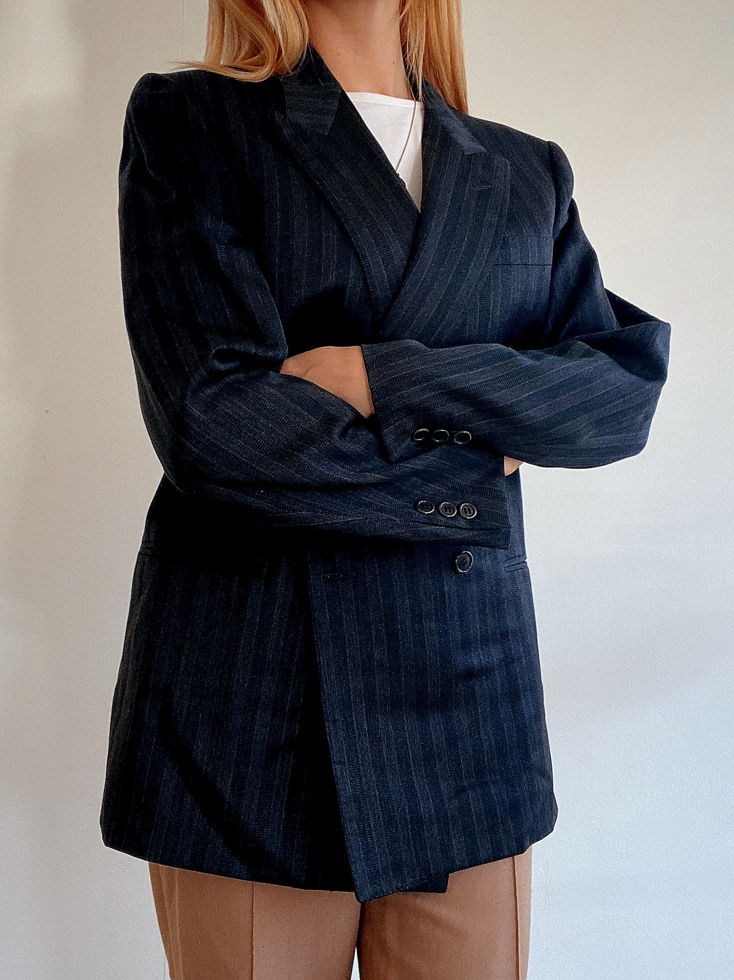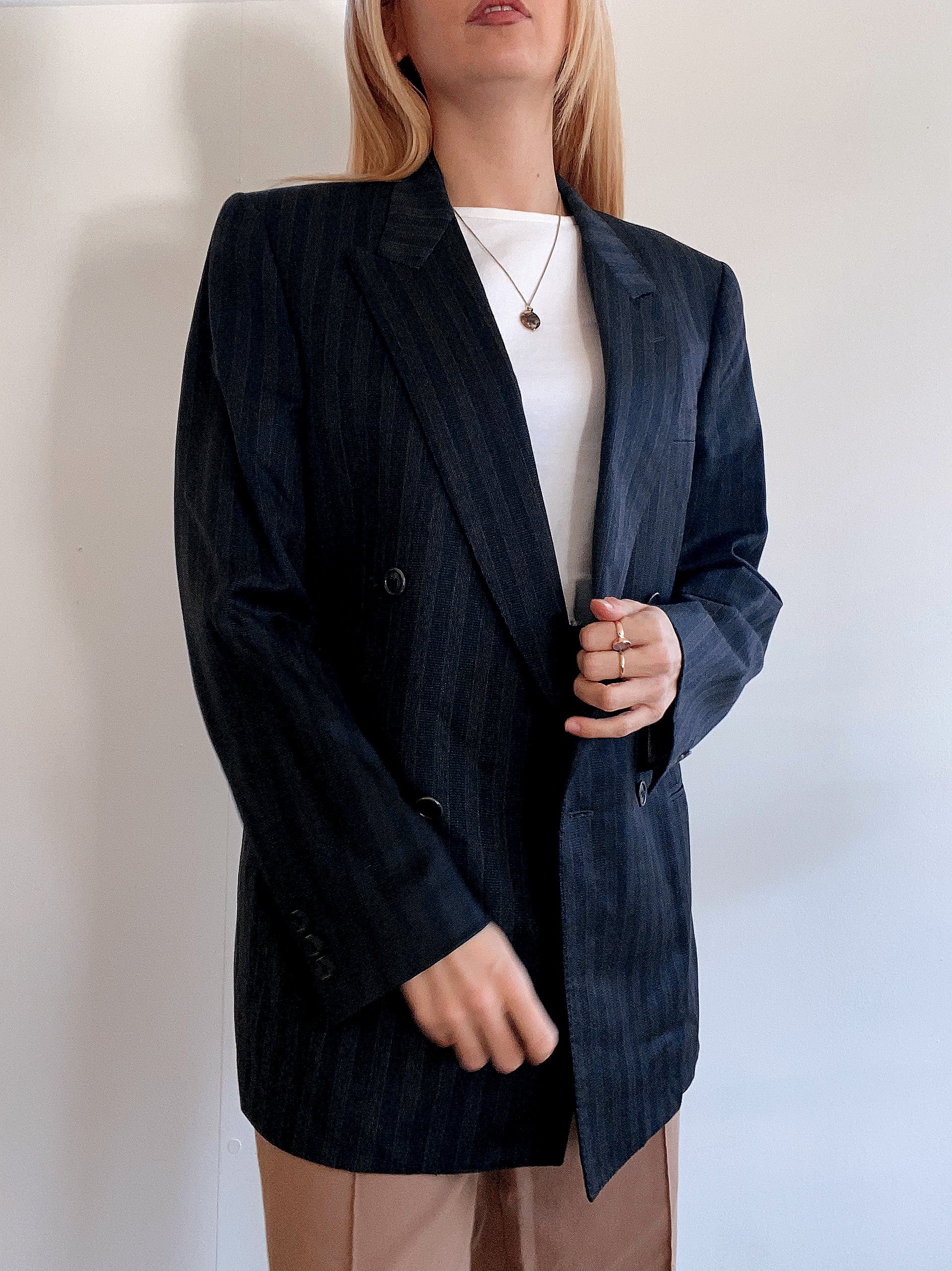 Veste Blazer oversized vintage bleu foncée lignée