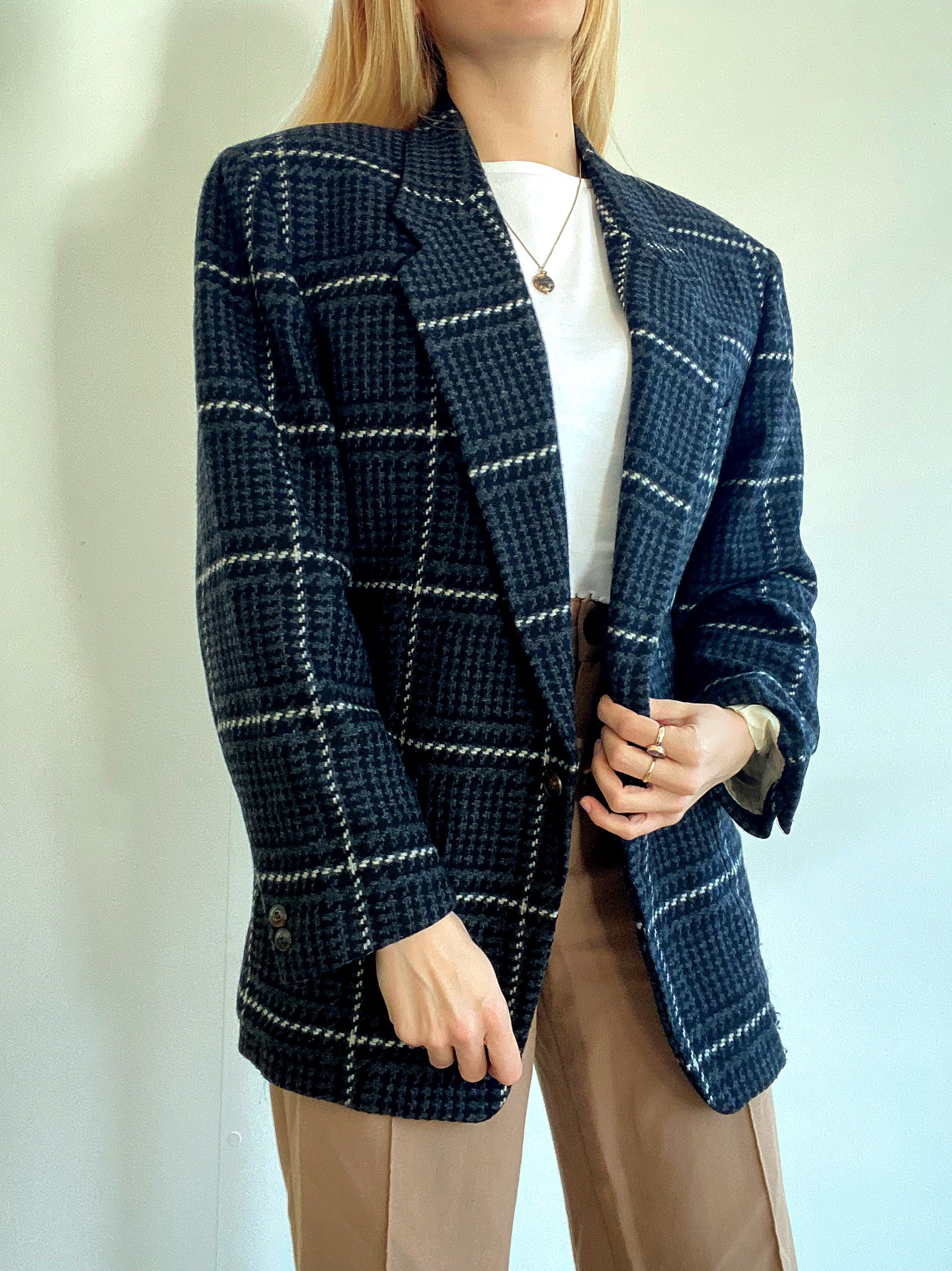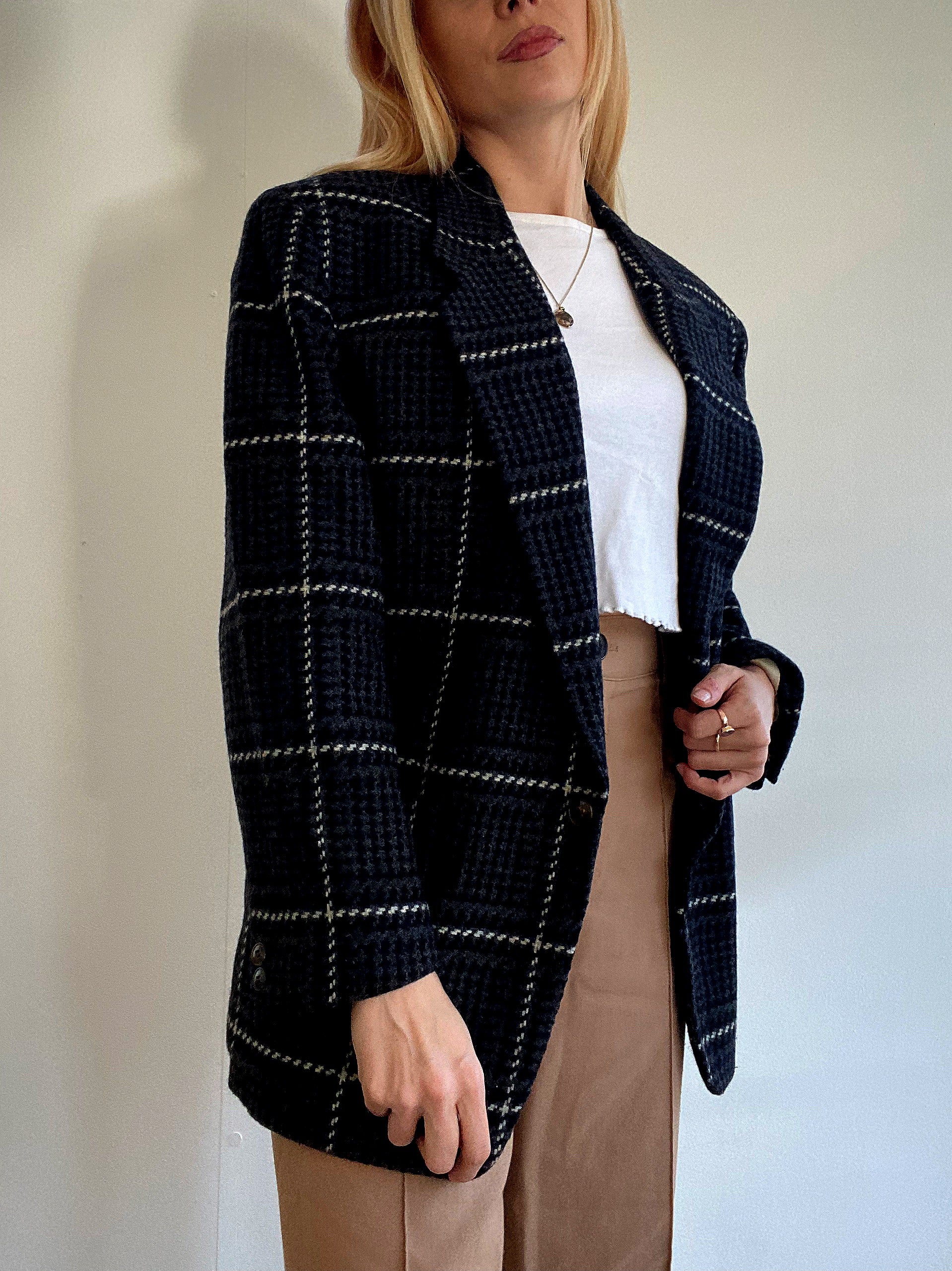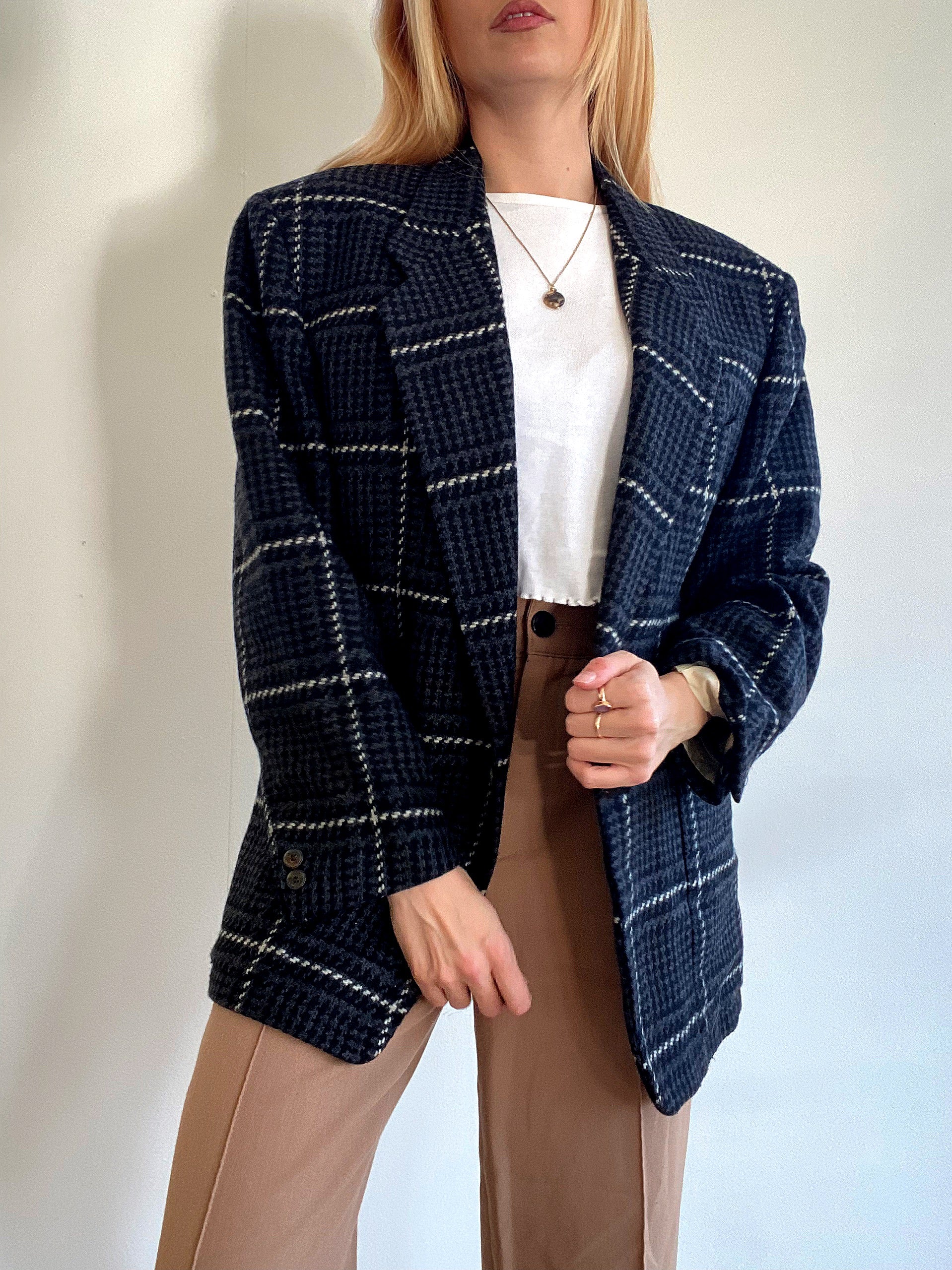 Veste Blazer oversized vintage en laine noire