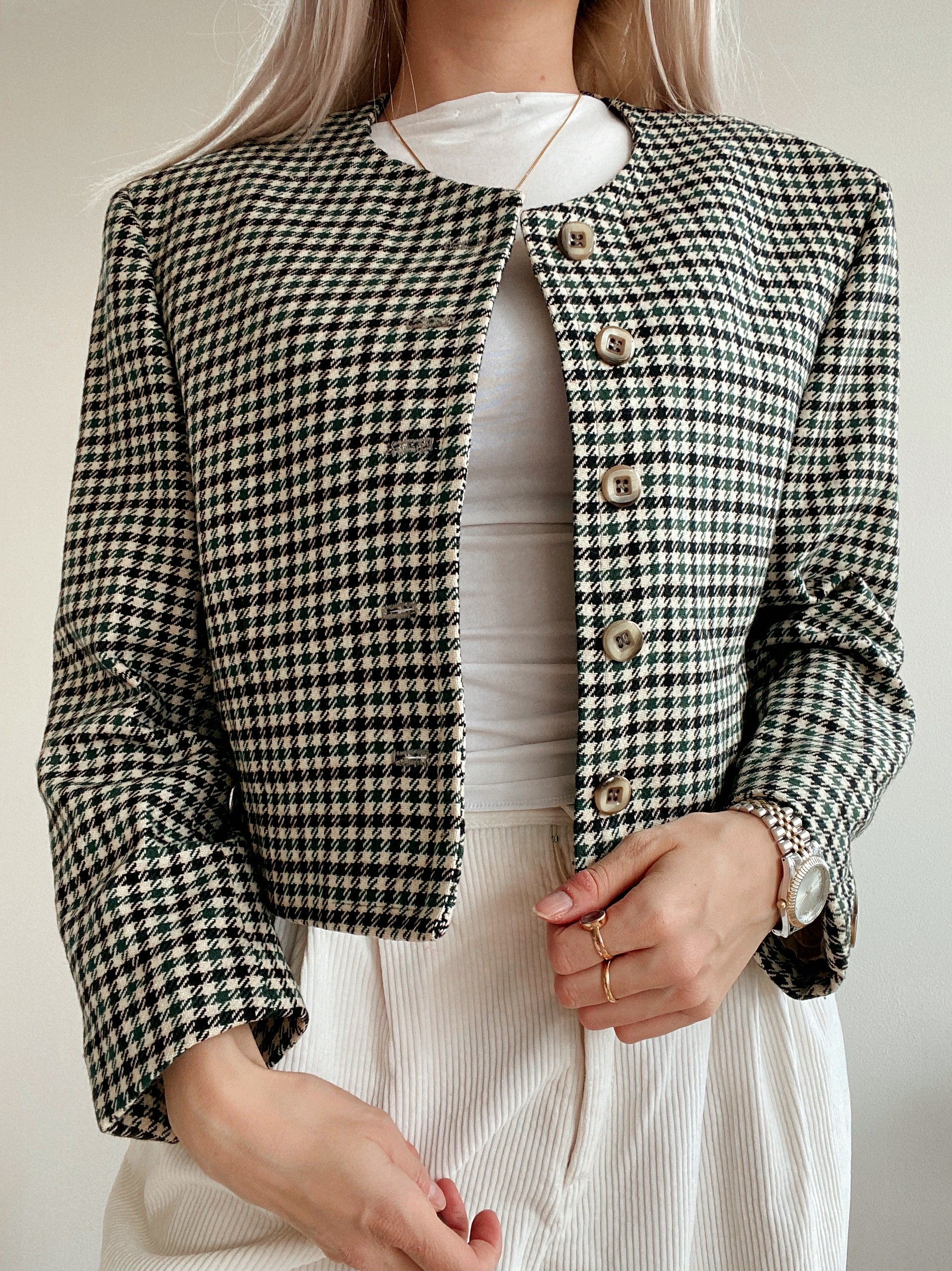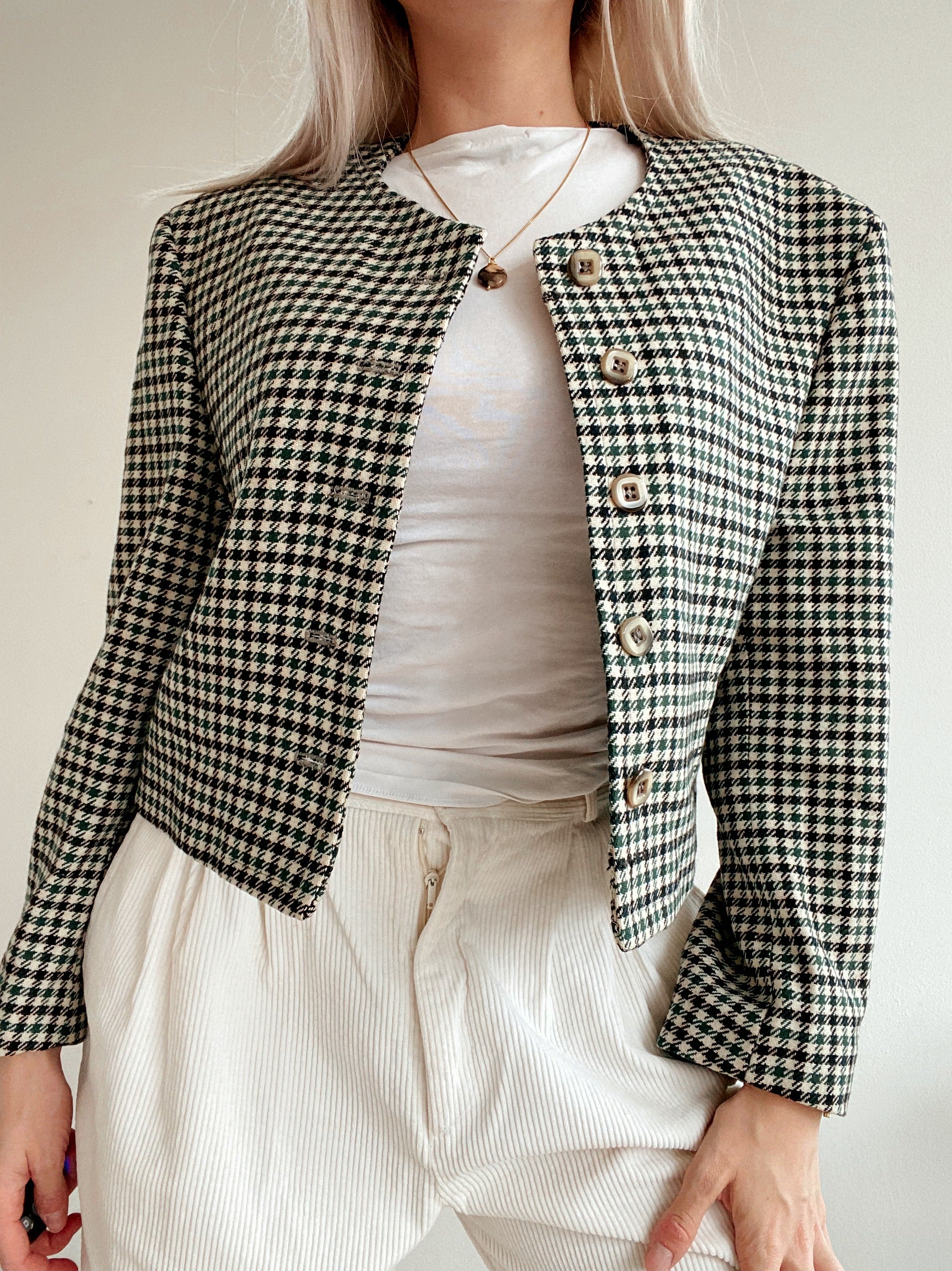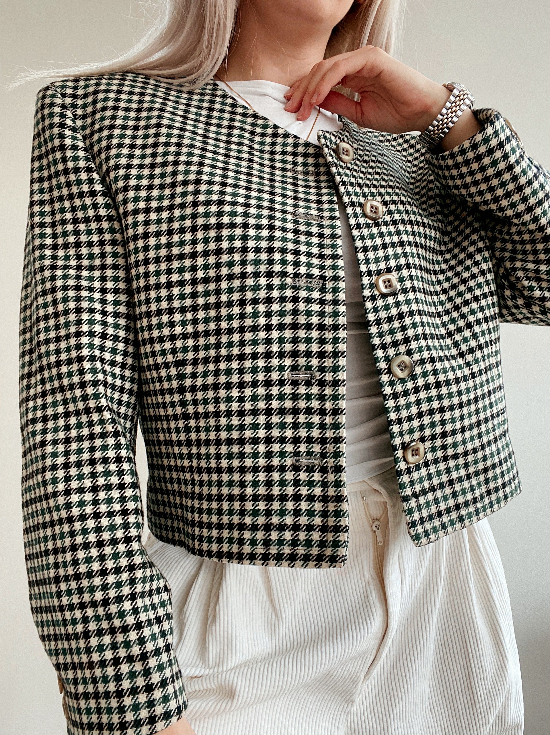 Veste Blazer pied de poule verte/blanche/noire M/L