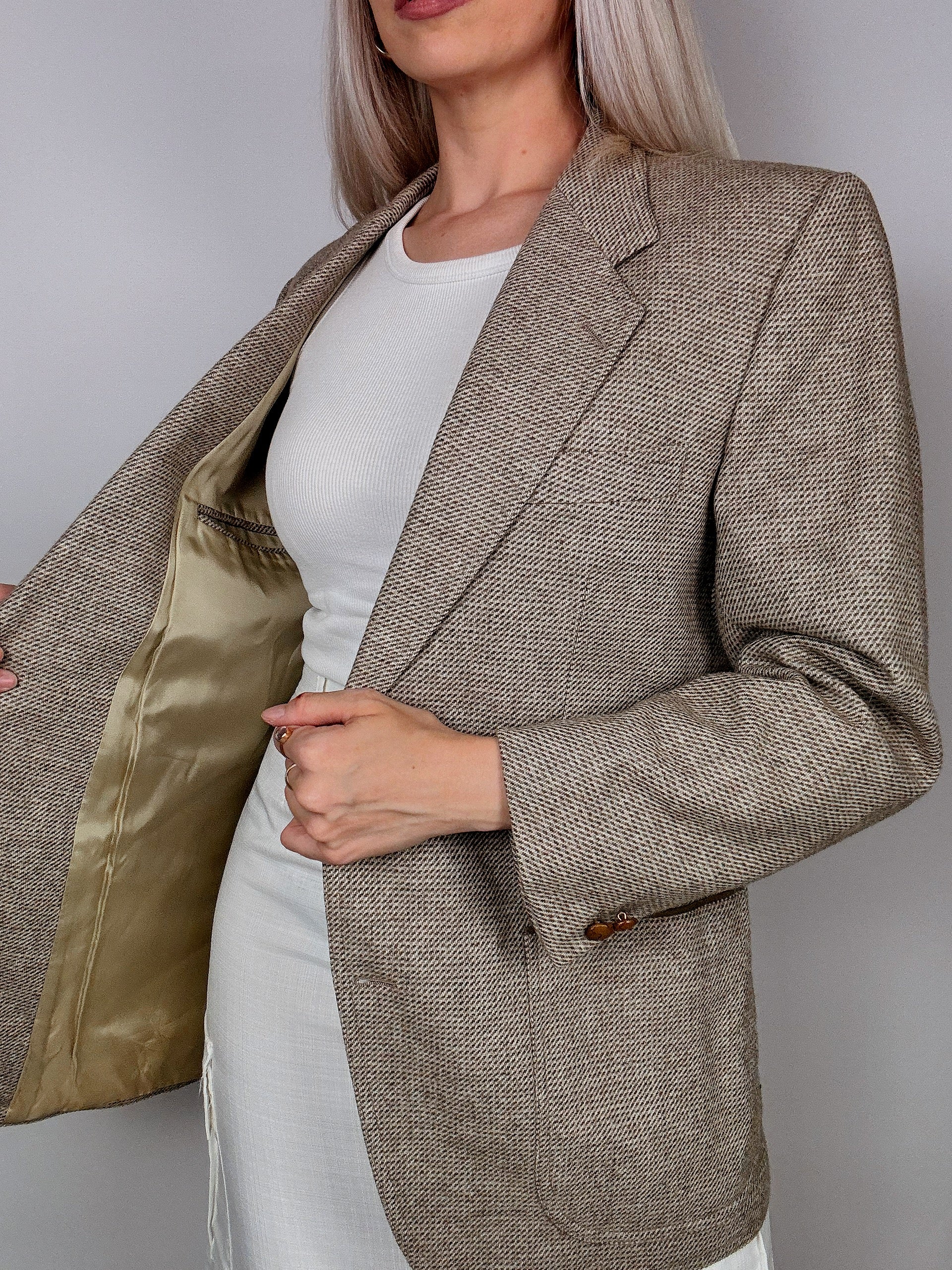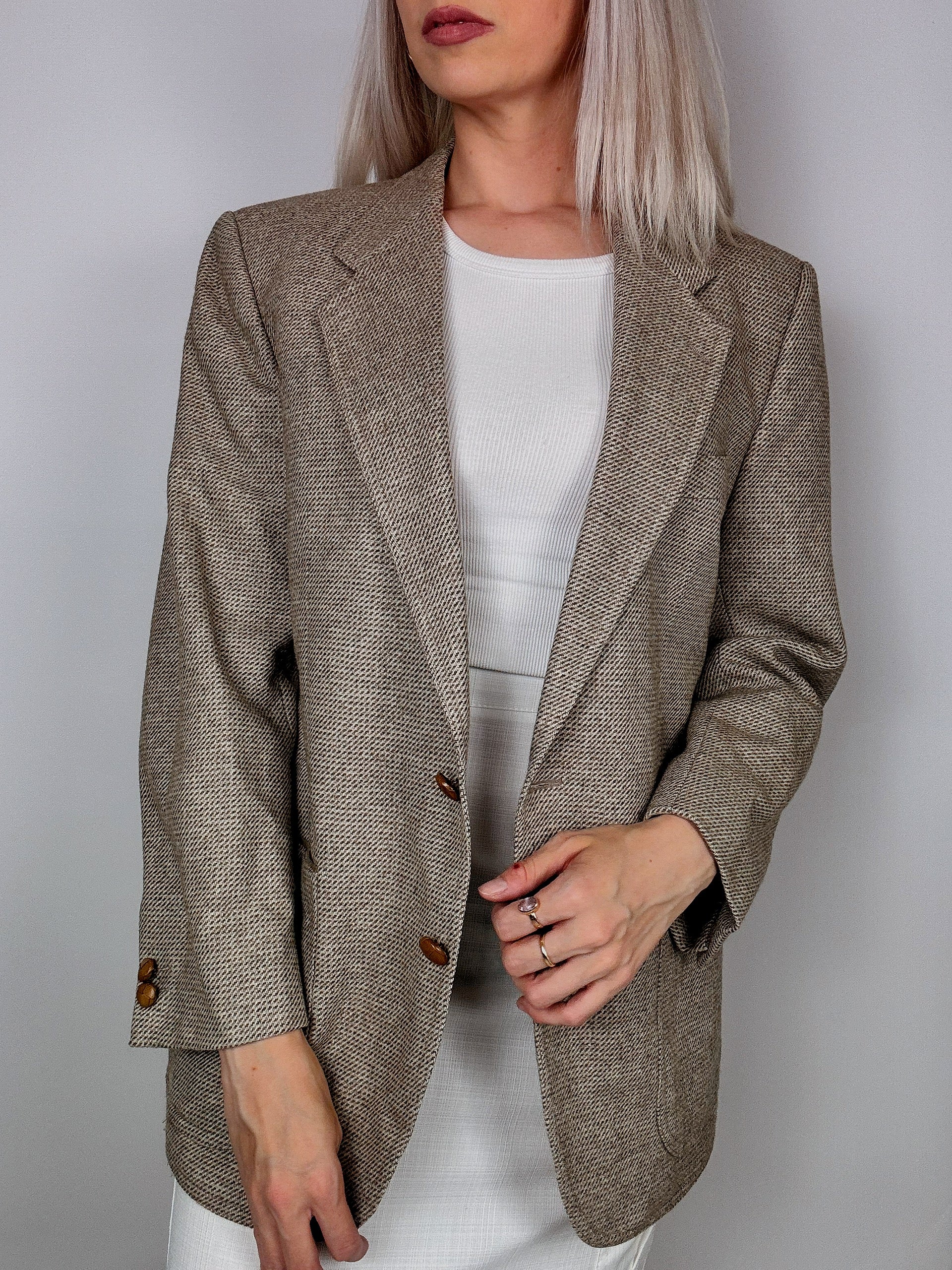 ÉTAT : Très bon état (blazer assez fin mais qui garde bien la chaleur grâce à son extérieur en laine, jolie détail avec les bouton couleur cognac en similicuir)