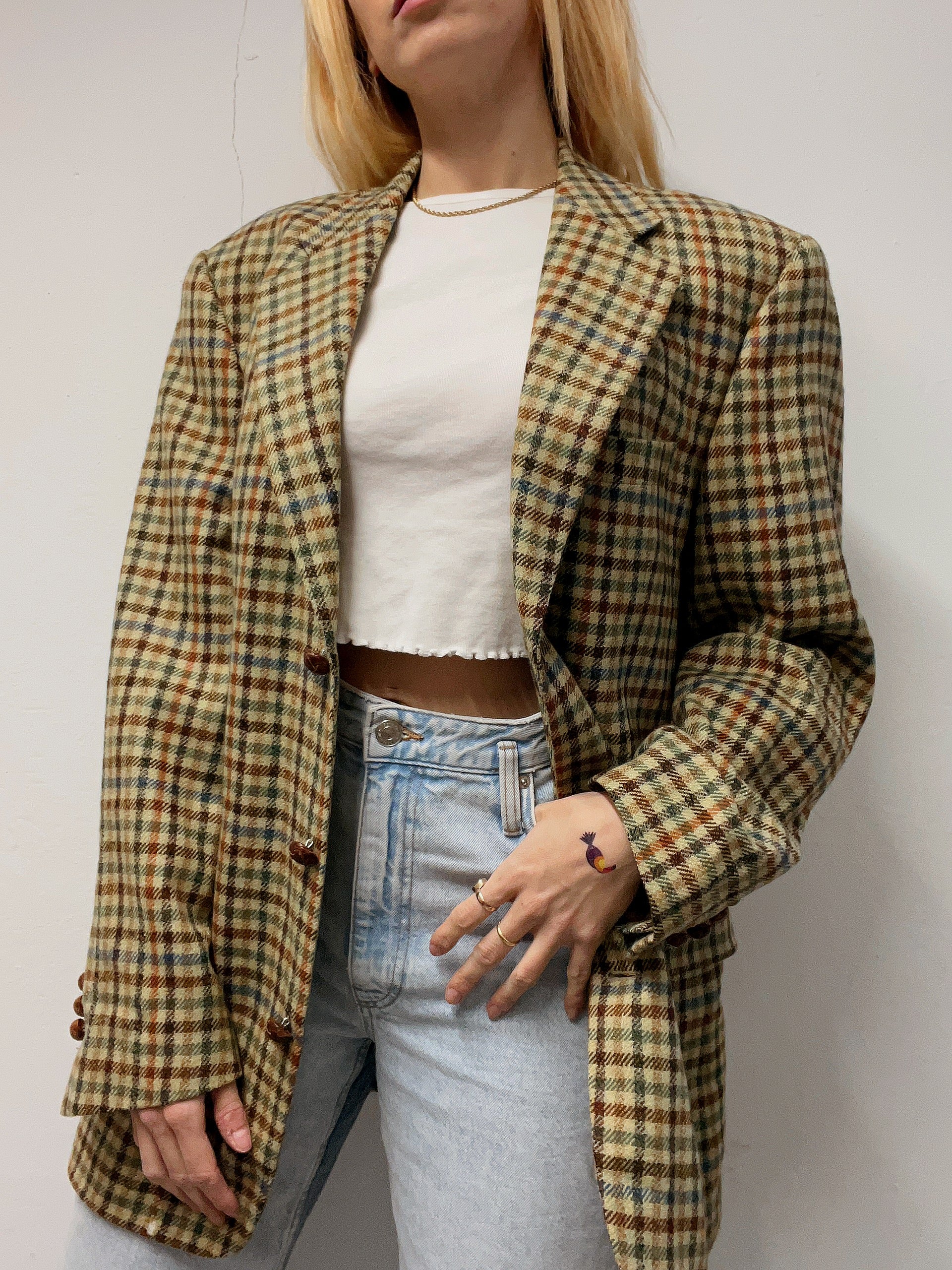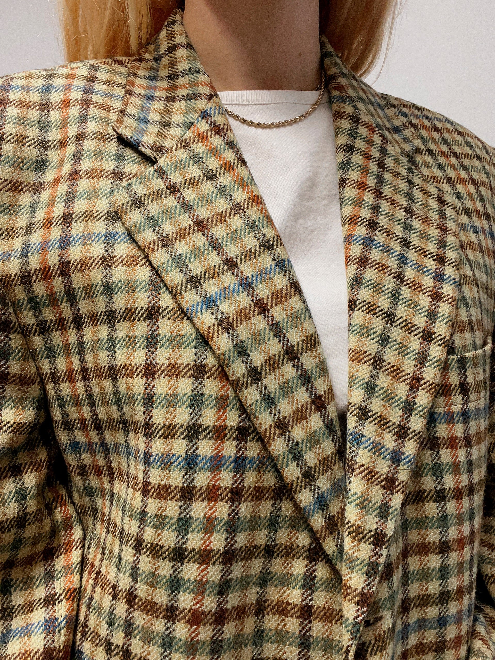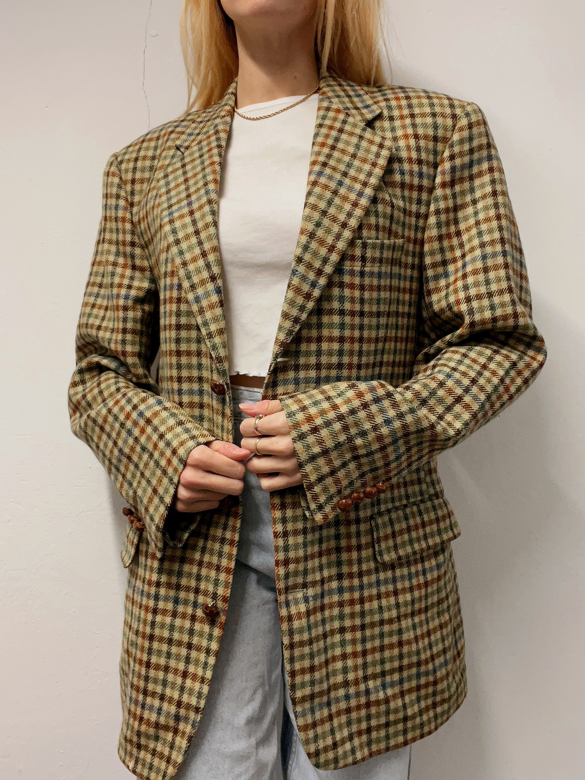 Veste blazer vintage beige brun vert bleu L