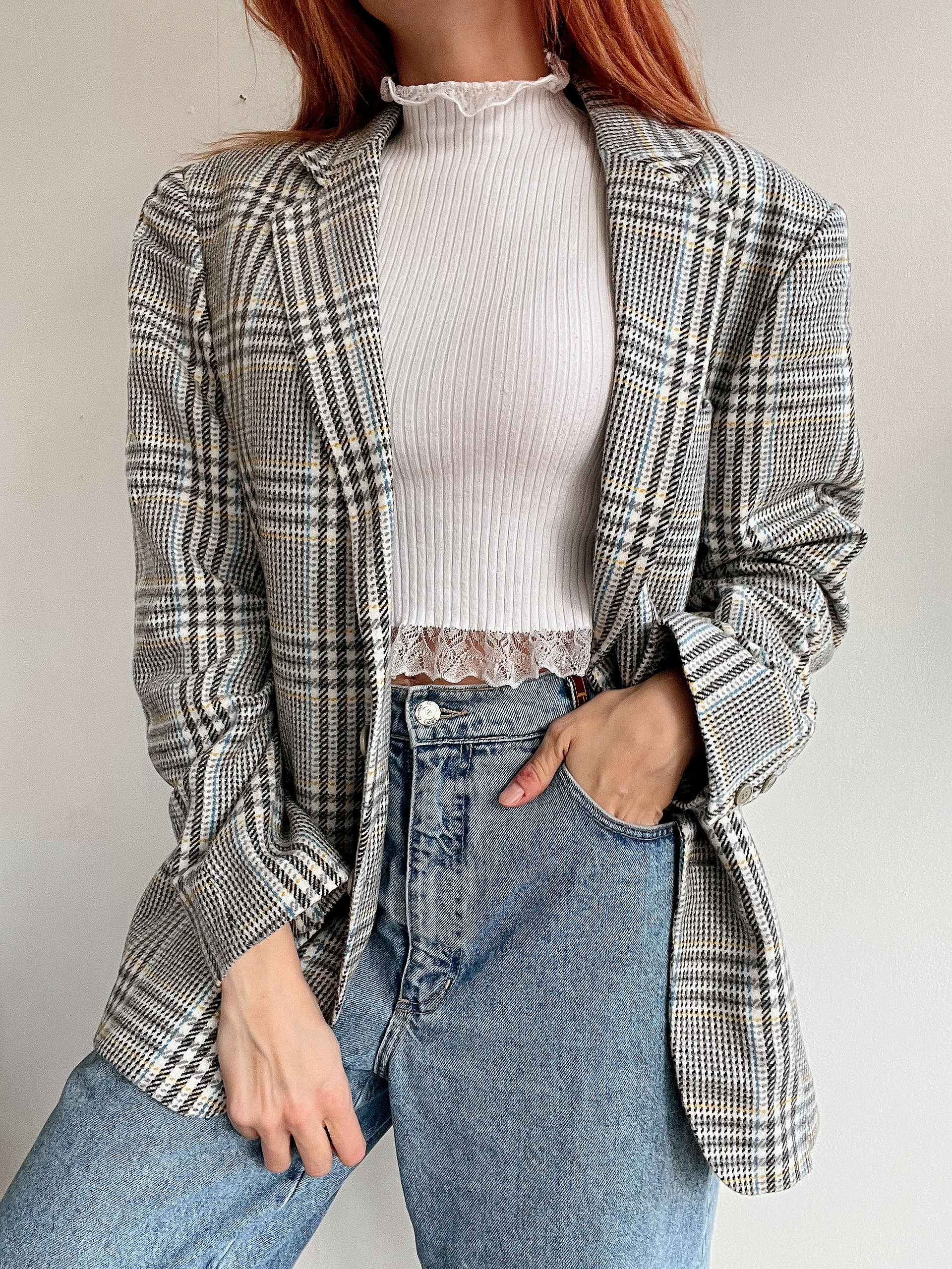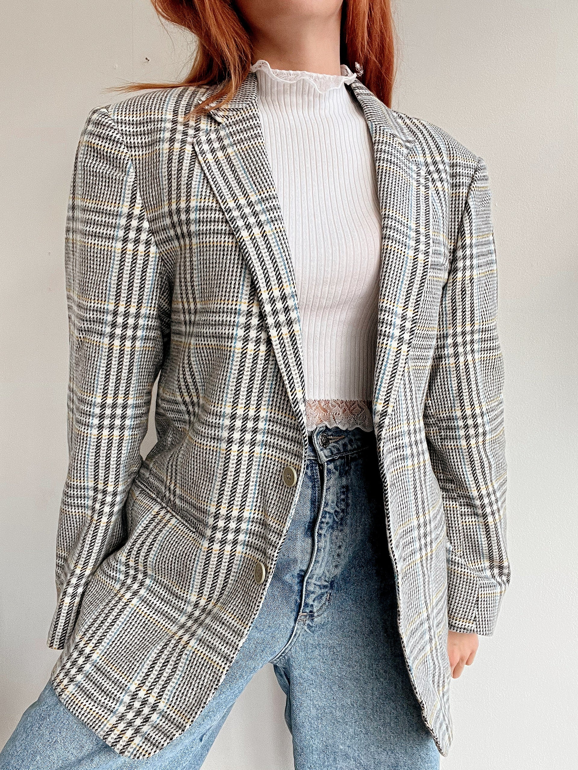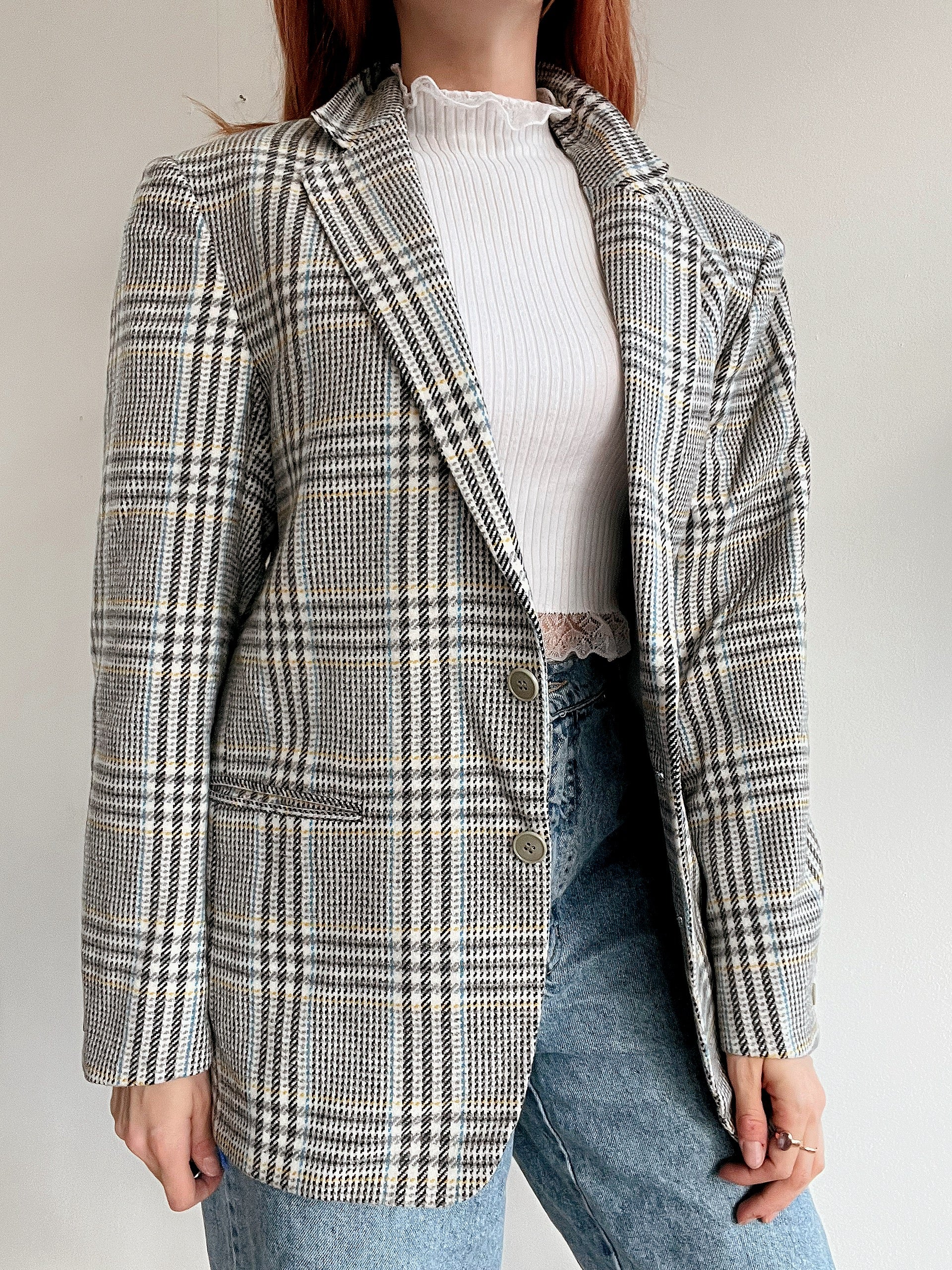Veste blazer vintage blanche, grise, bleue, jaune M/L