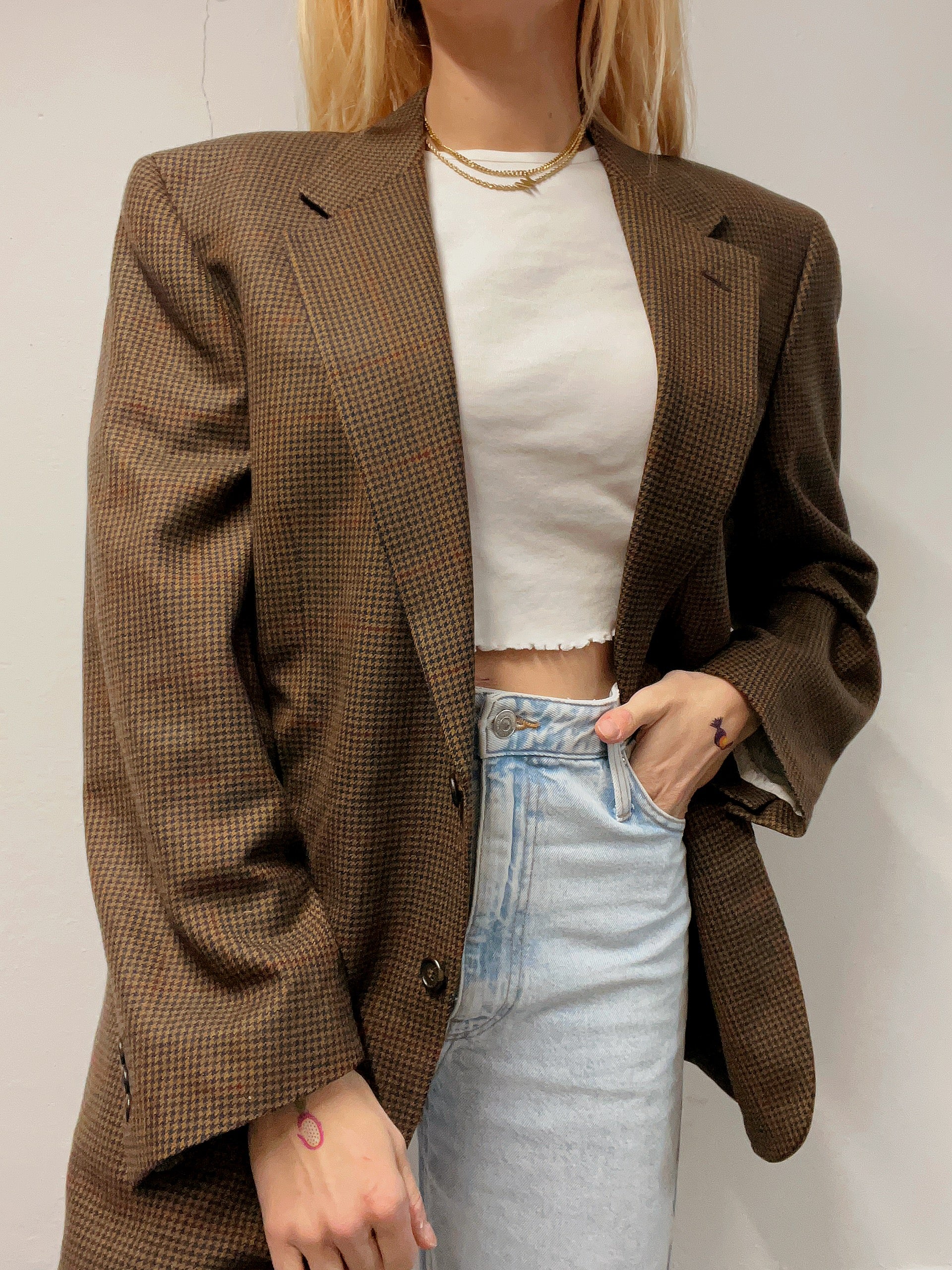 Veste blazer vintage brun et bleu foncé pied de poule M/L