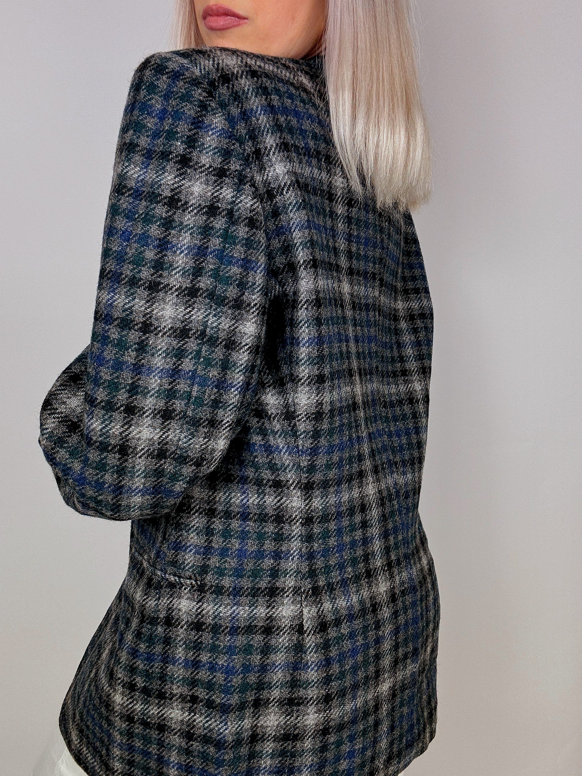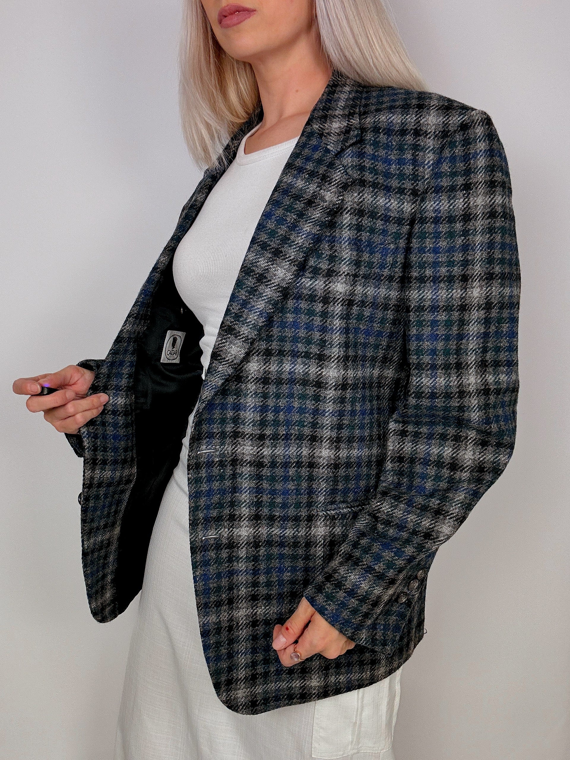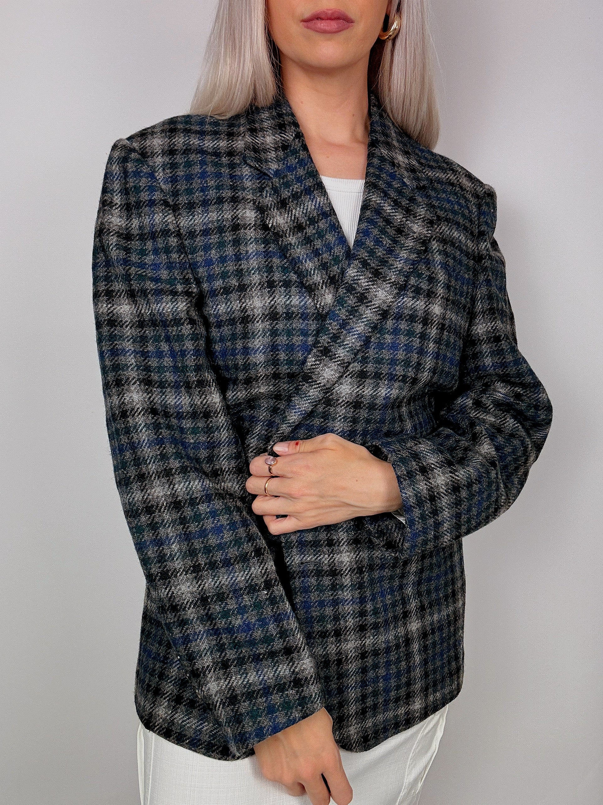 Blazer vintage oversize à carreaux bleu