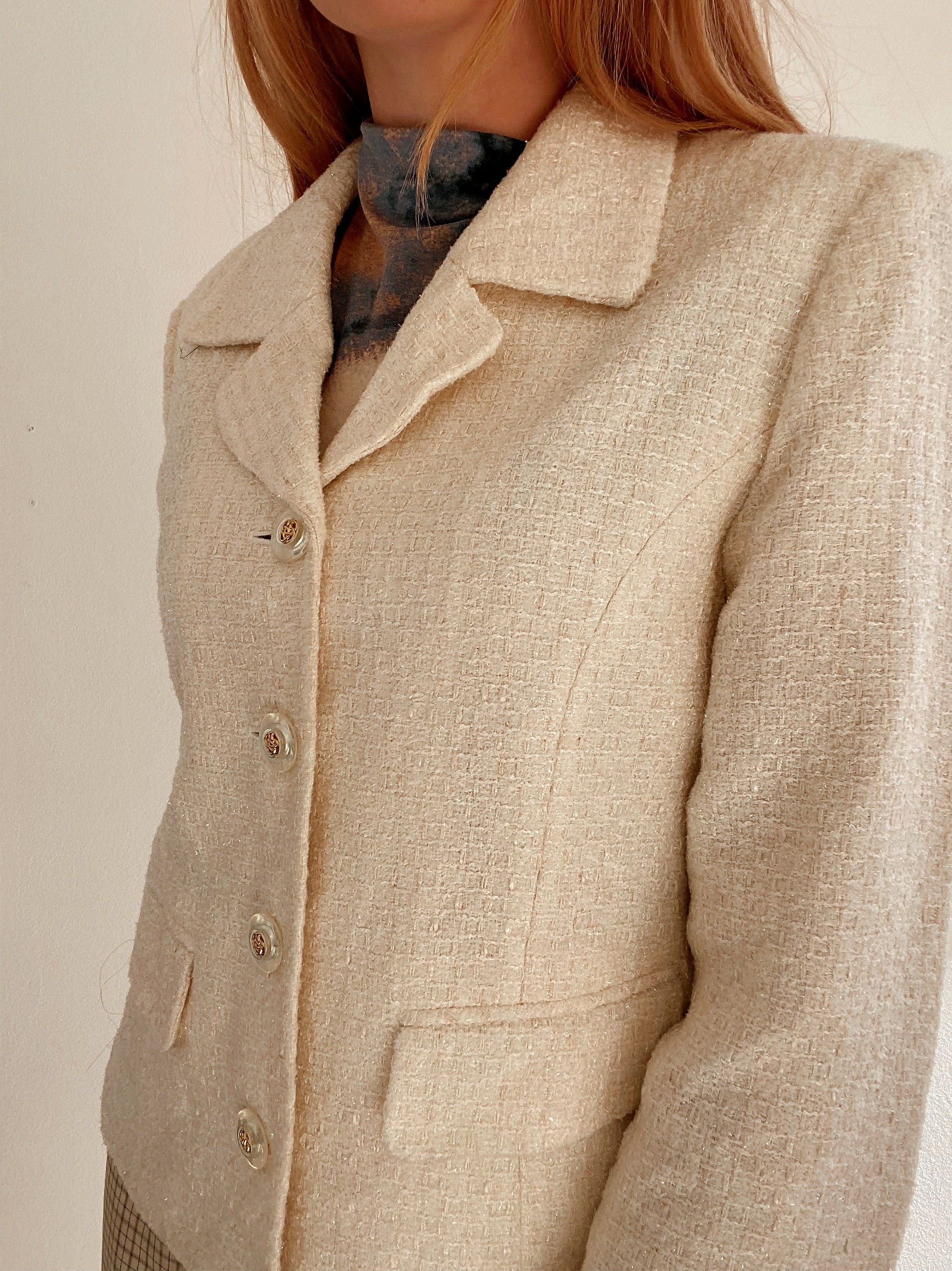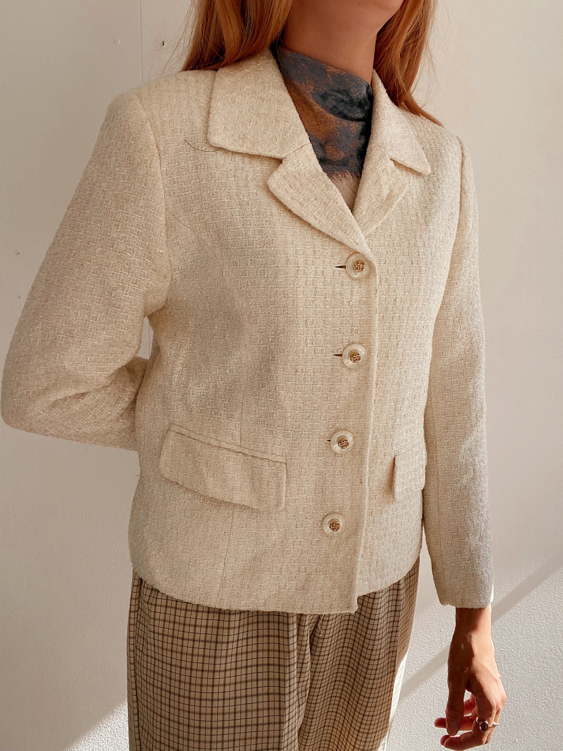 Veste blazer vintage courte blanc cassé M