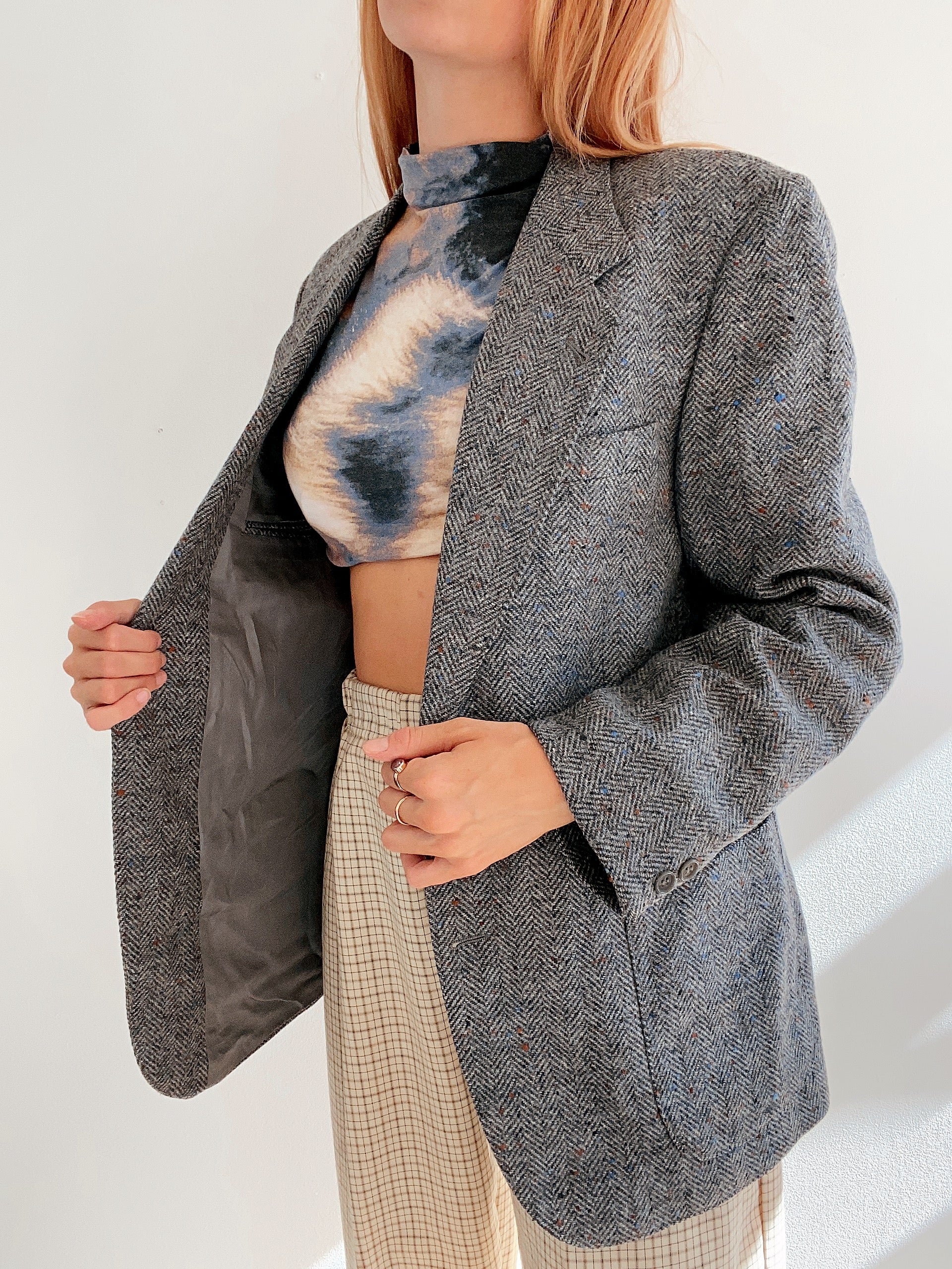 Veste blazer vintage gris épais L