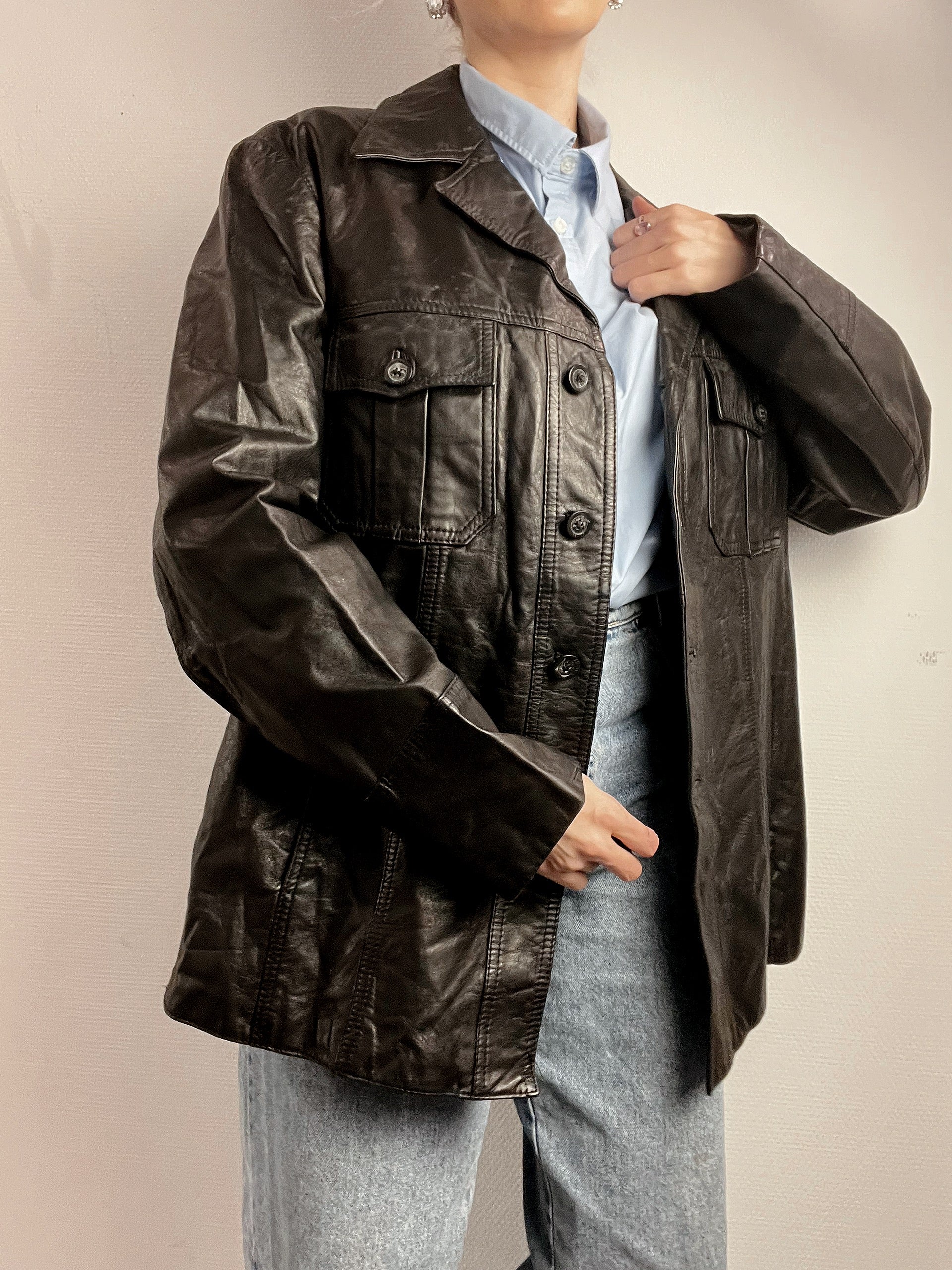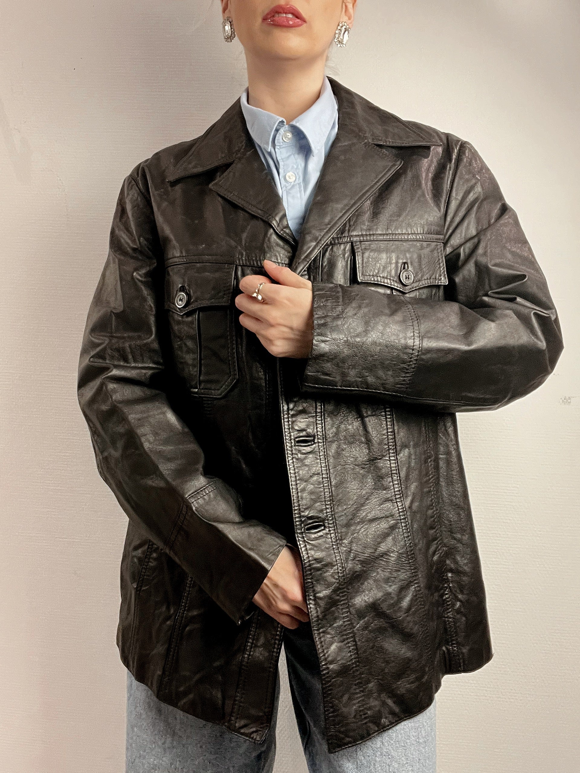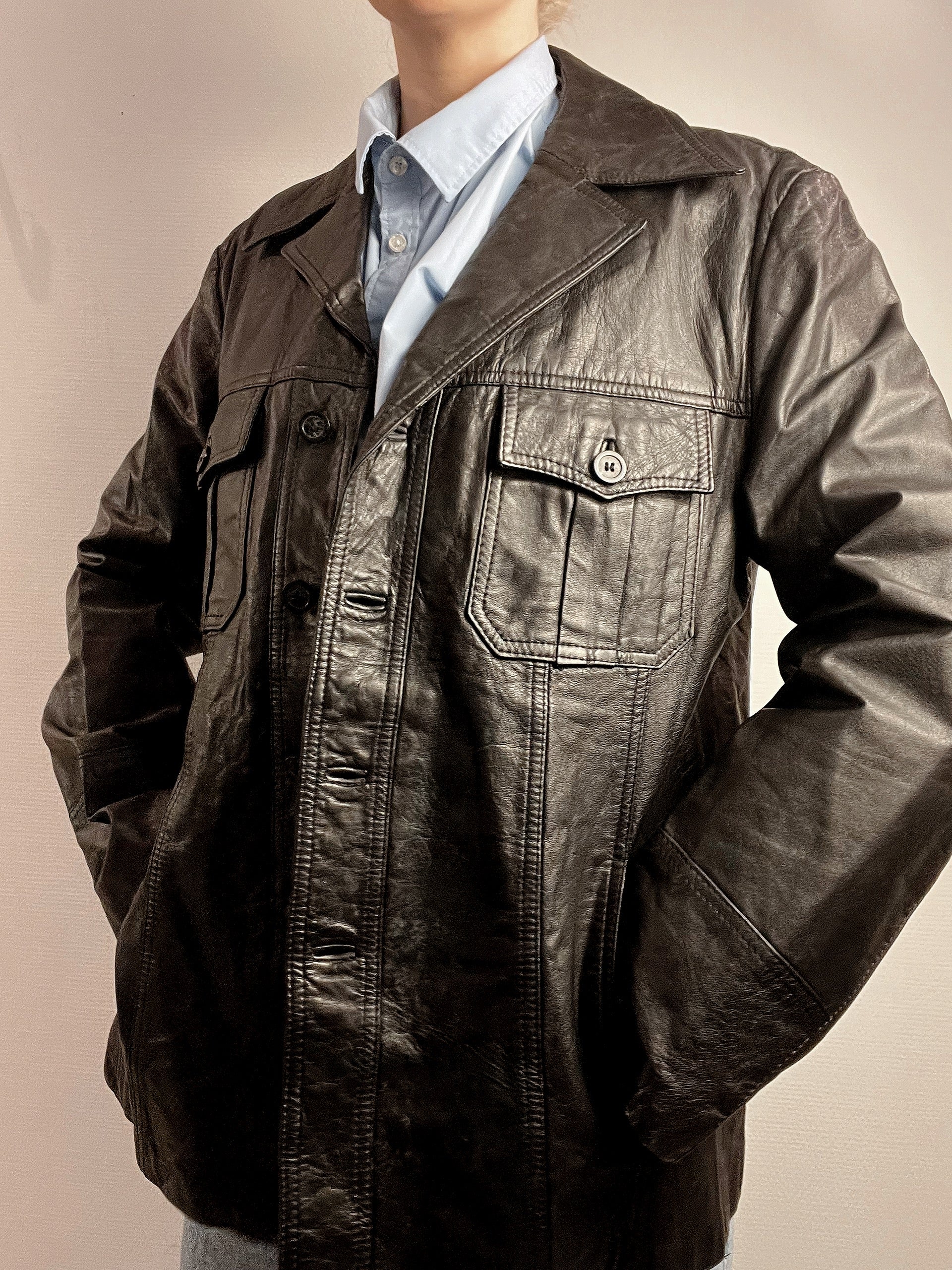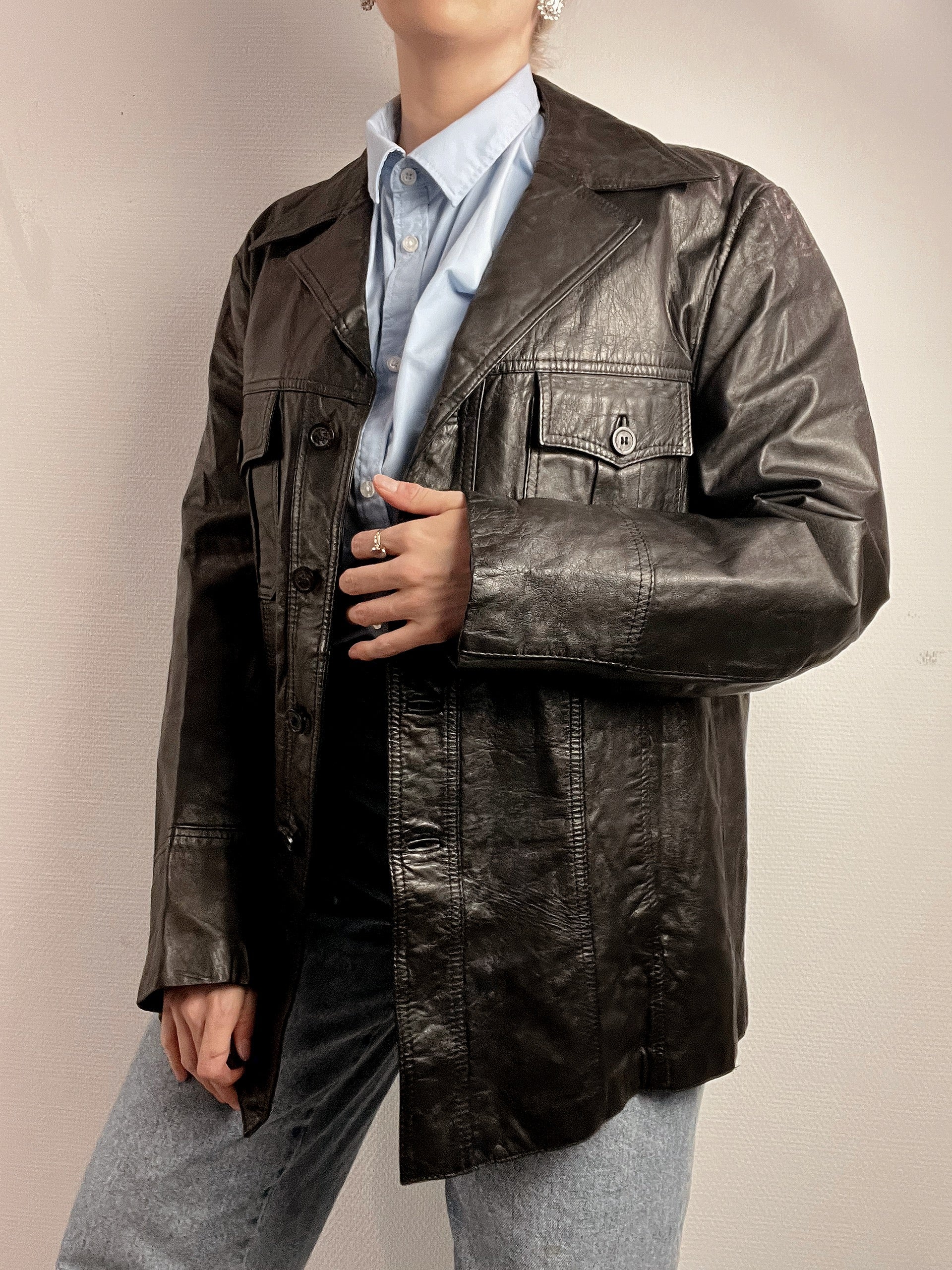Veste Blazer vintage noir en cuir M/L