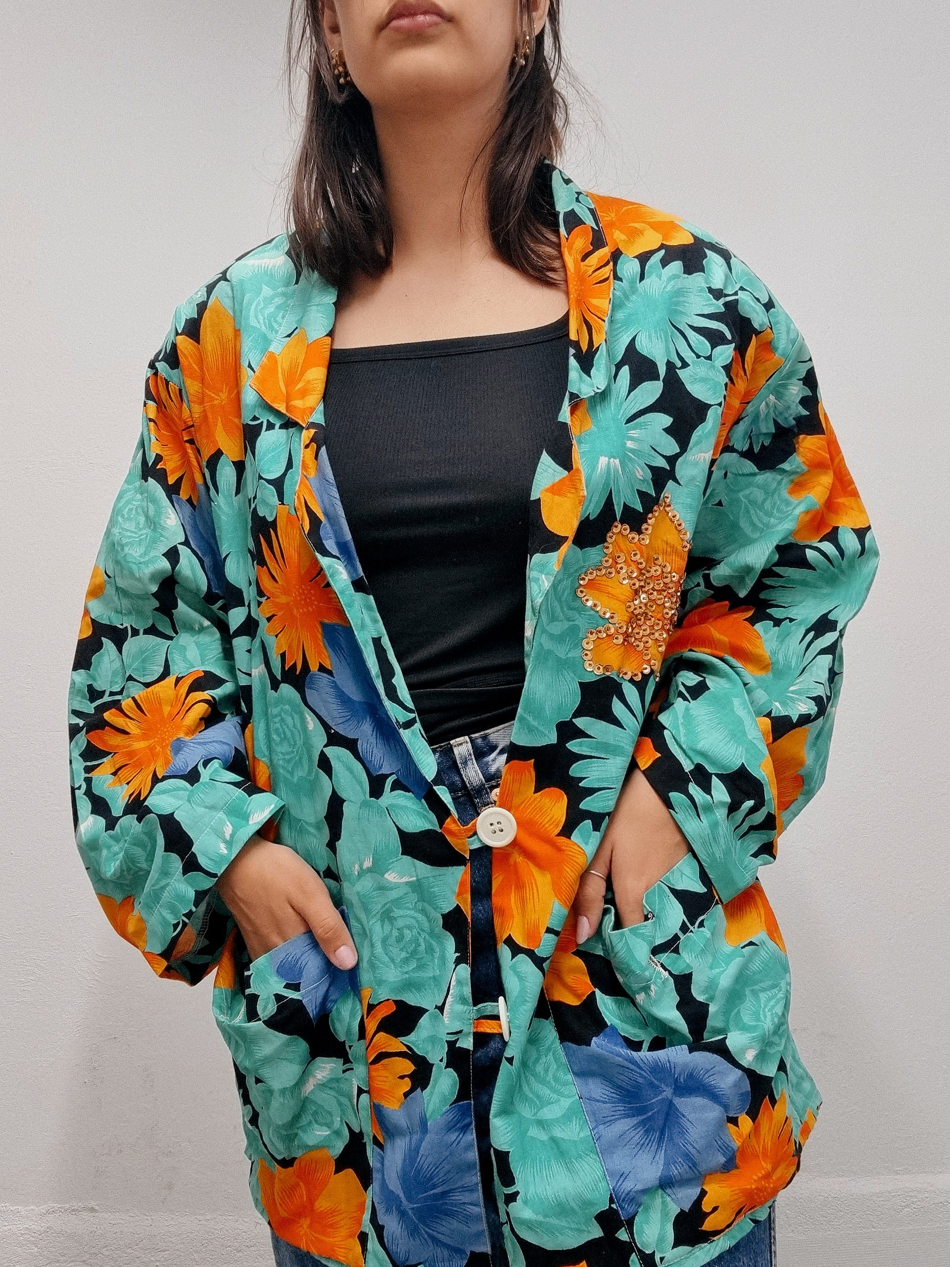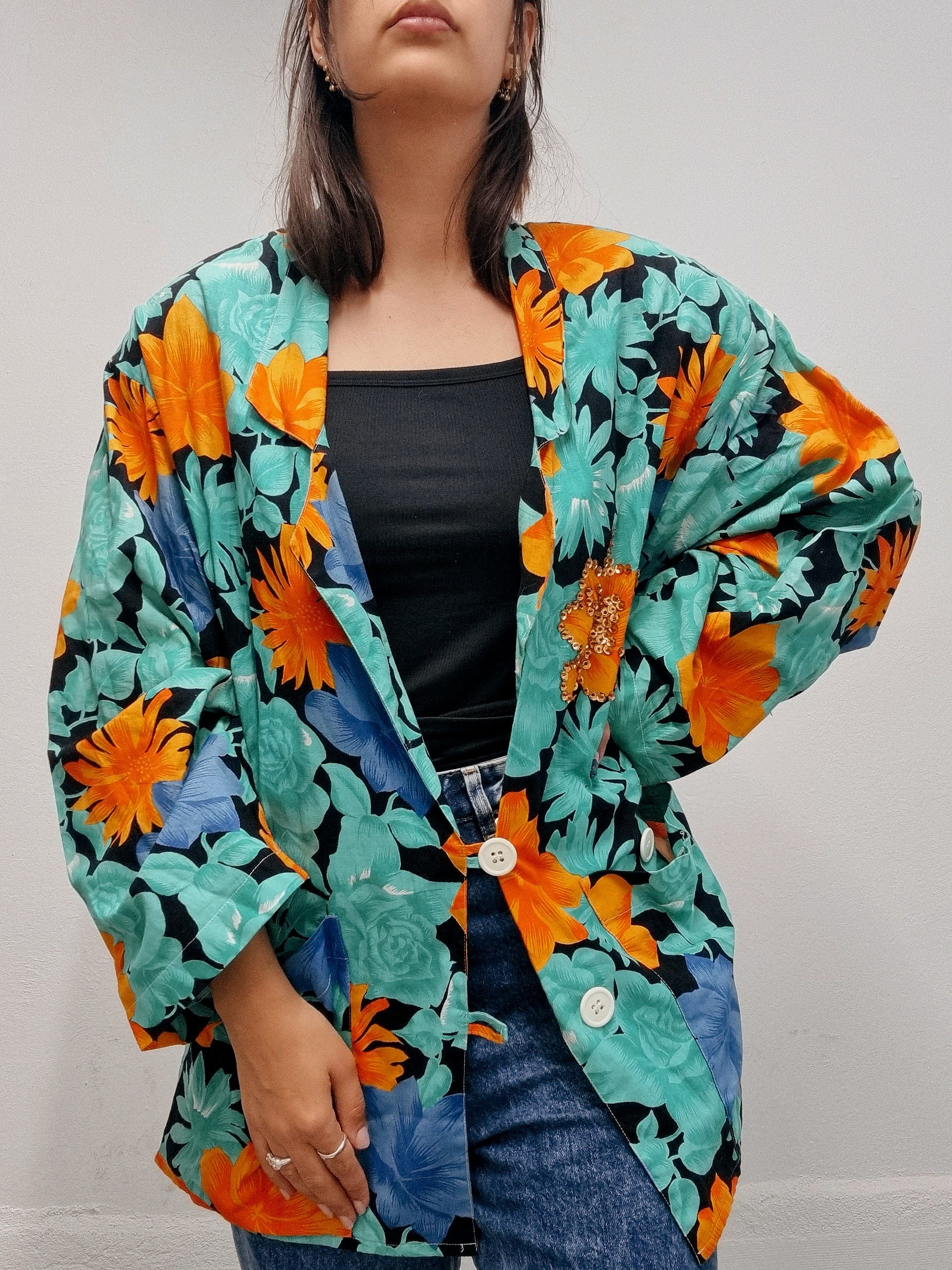 Veste blazer vintage oversized à paillettes L/XL