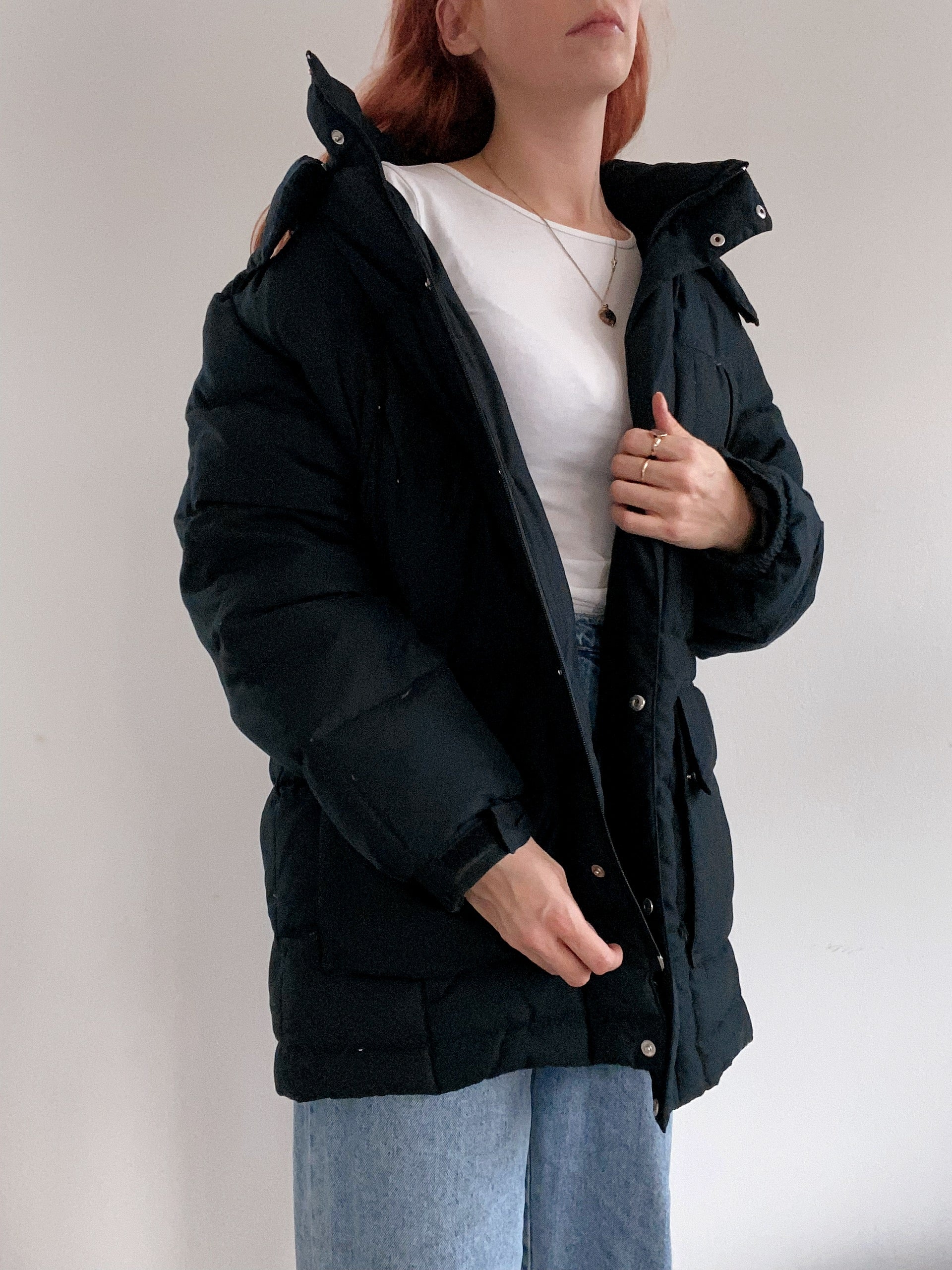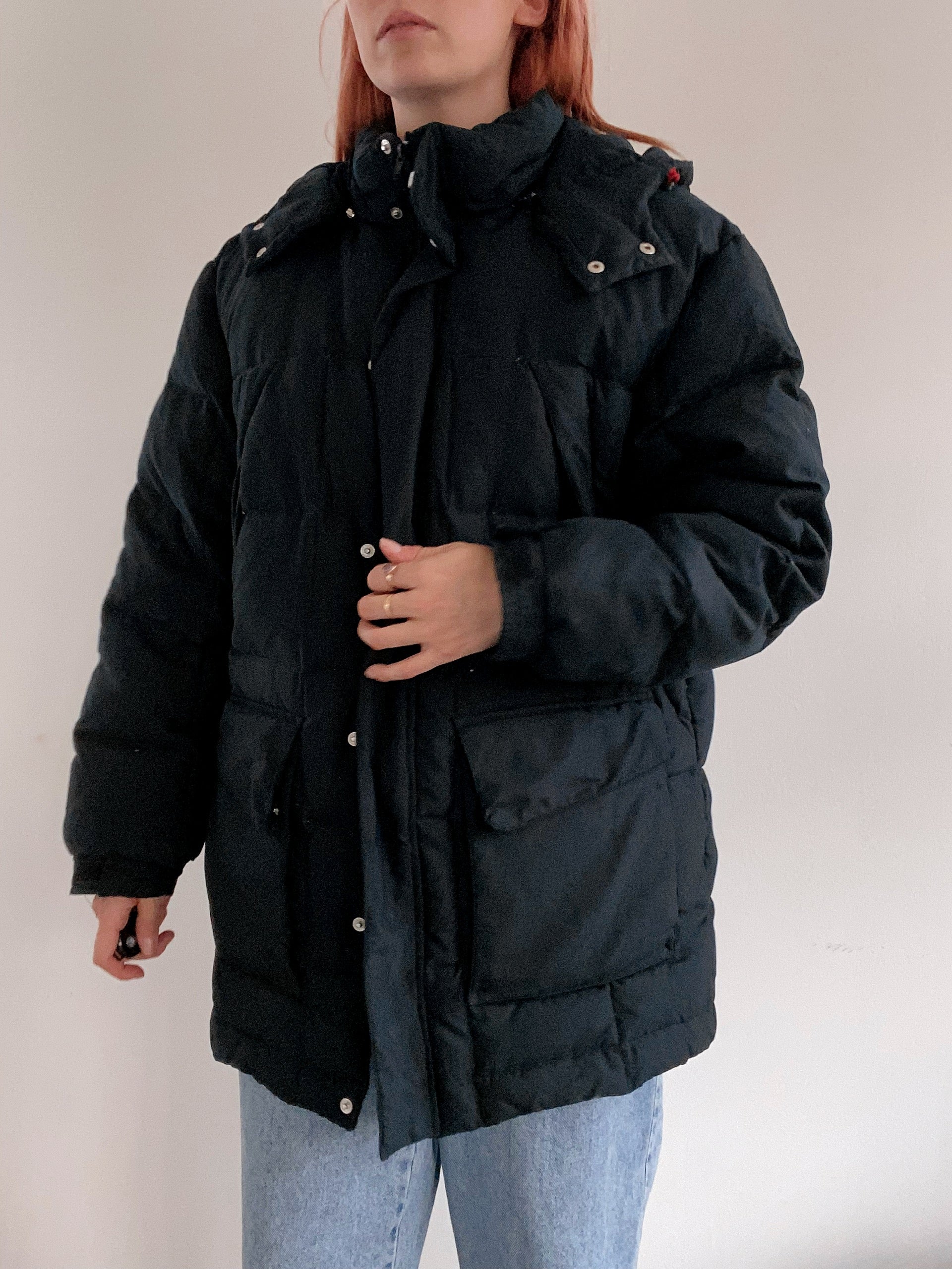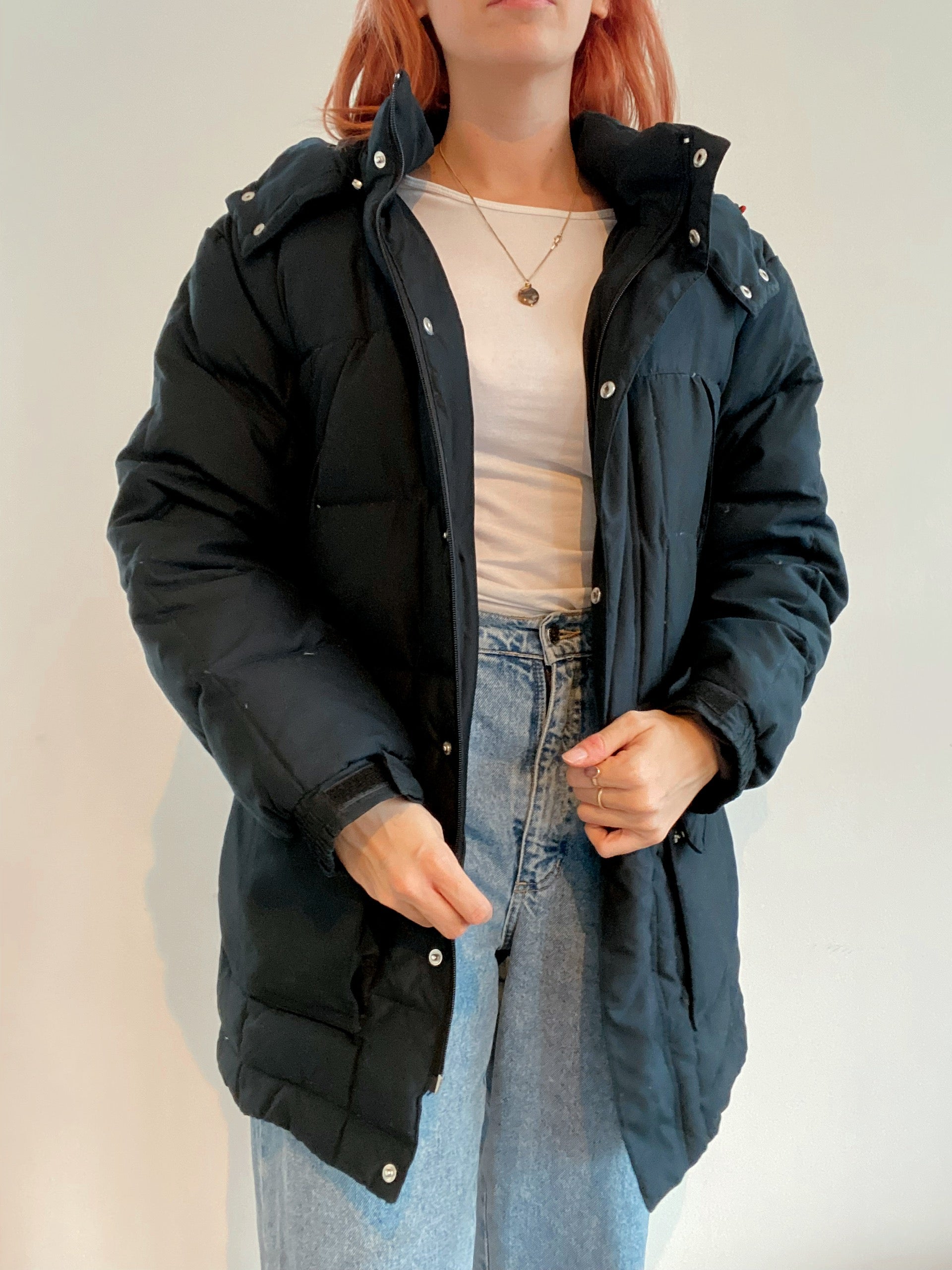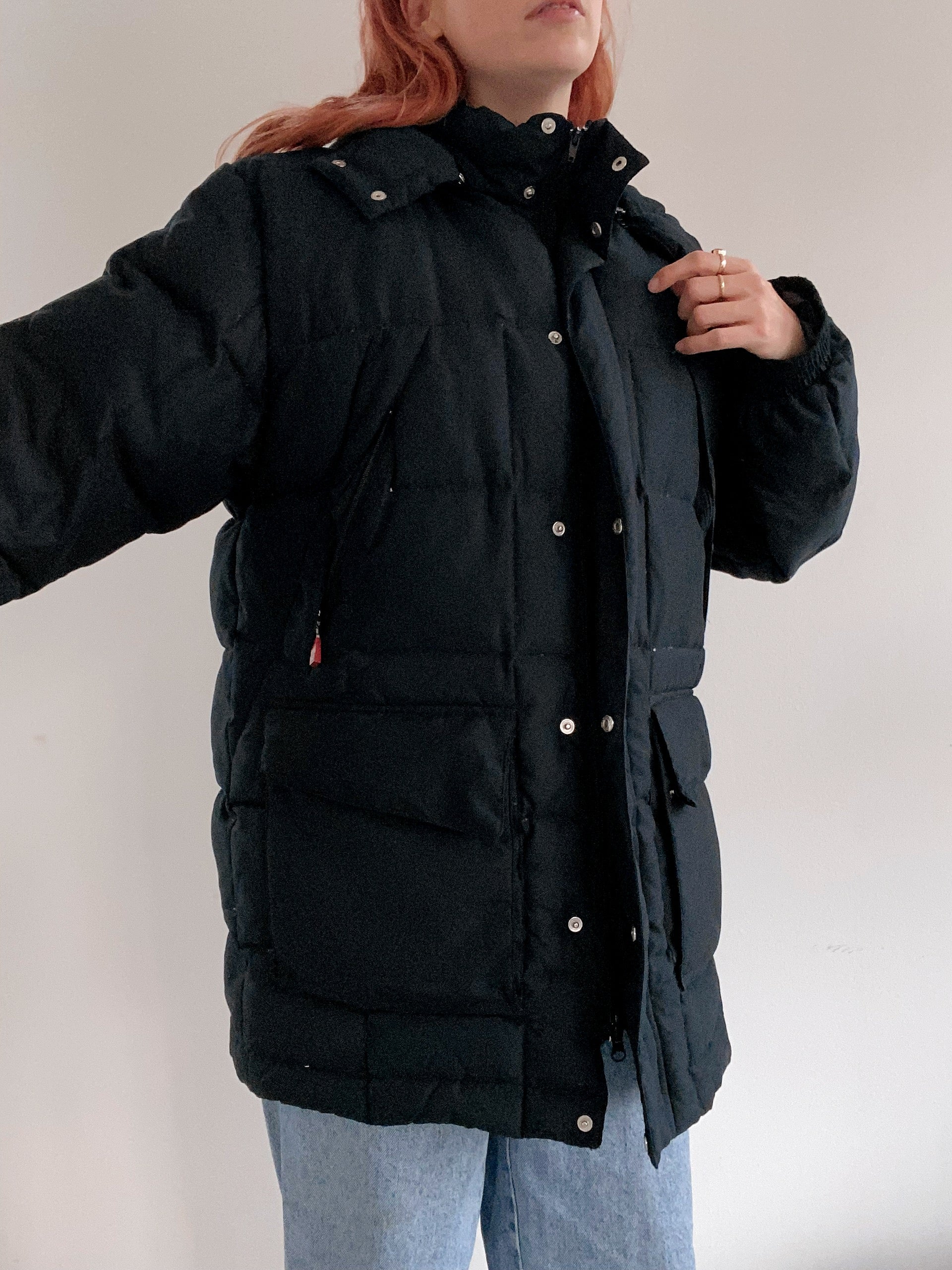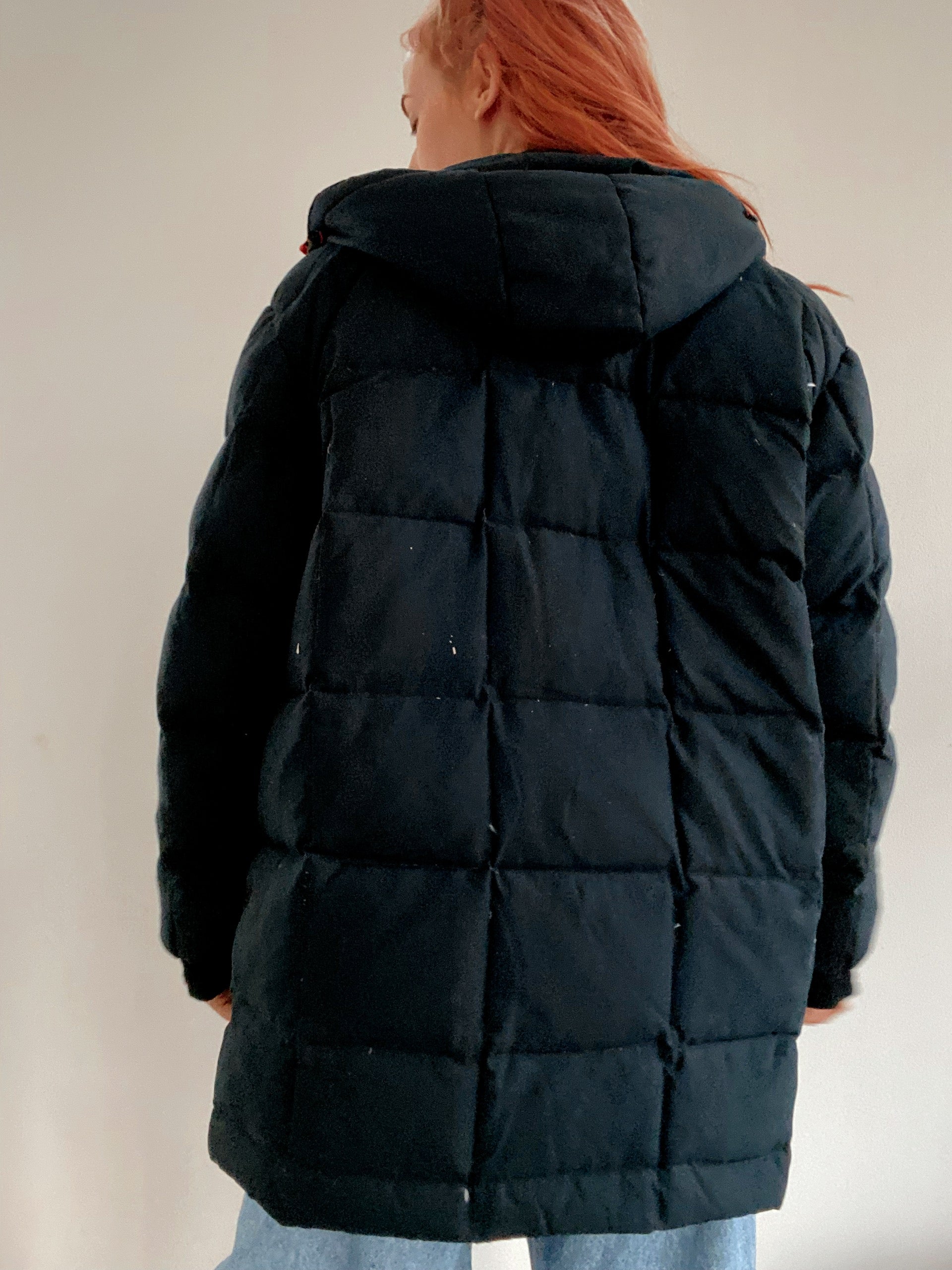 Veste doudoune vintage en plume noire à capuche L