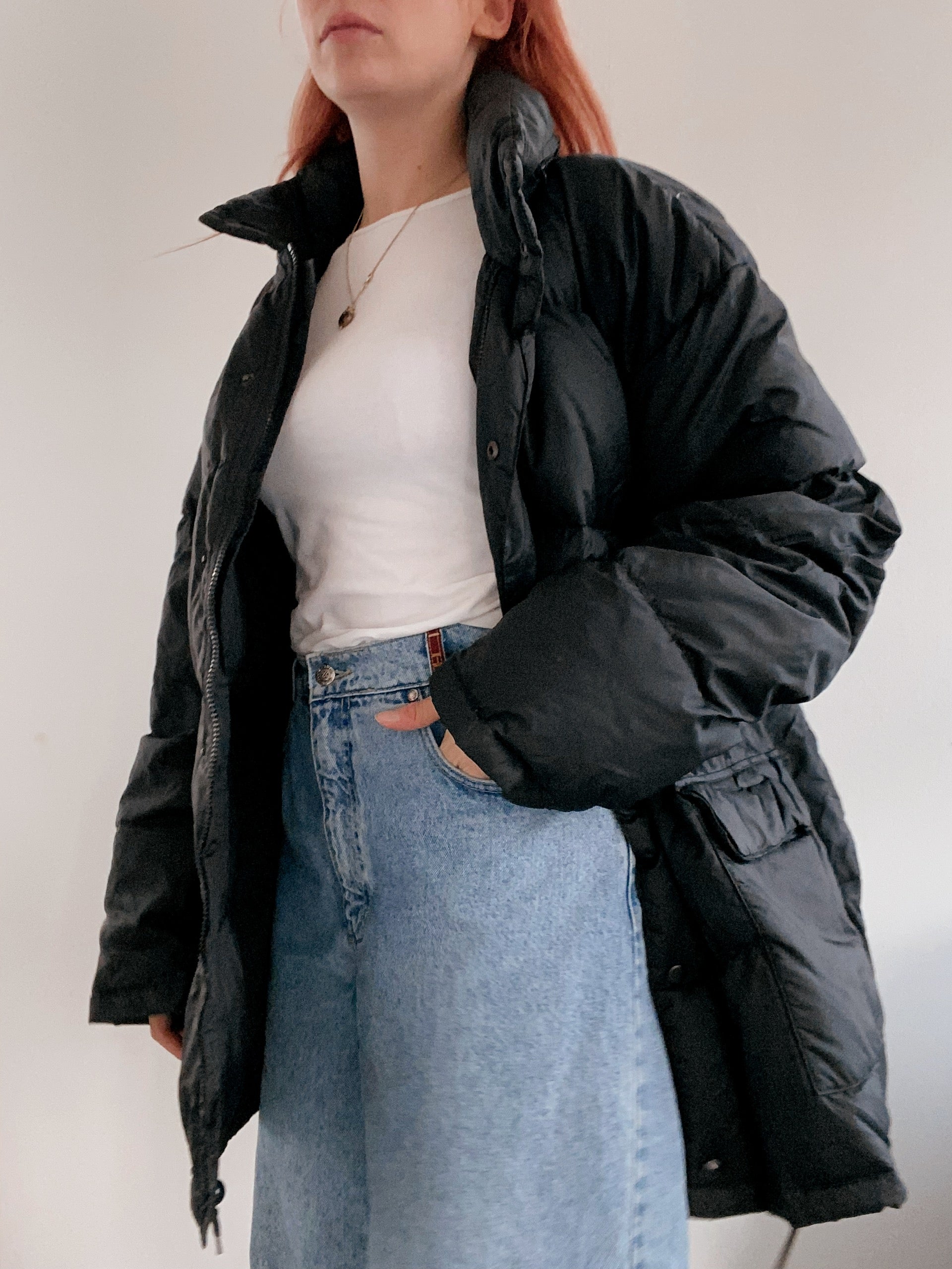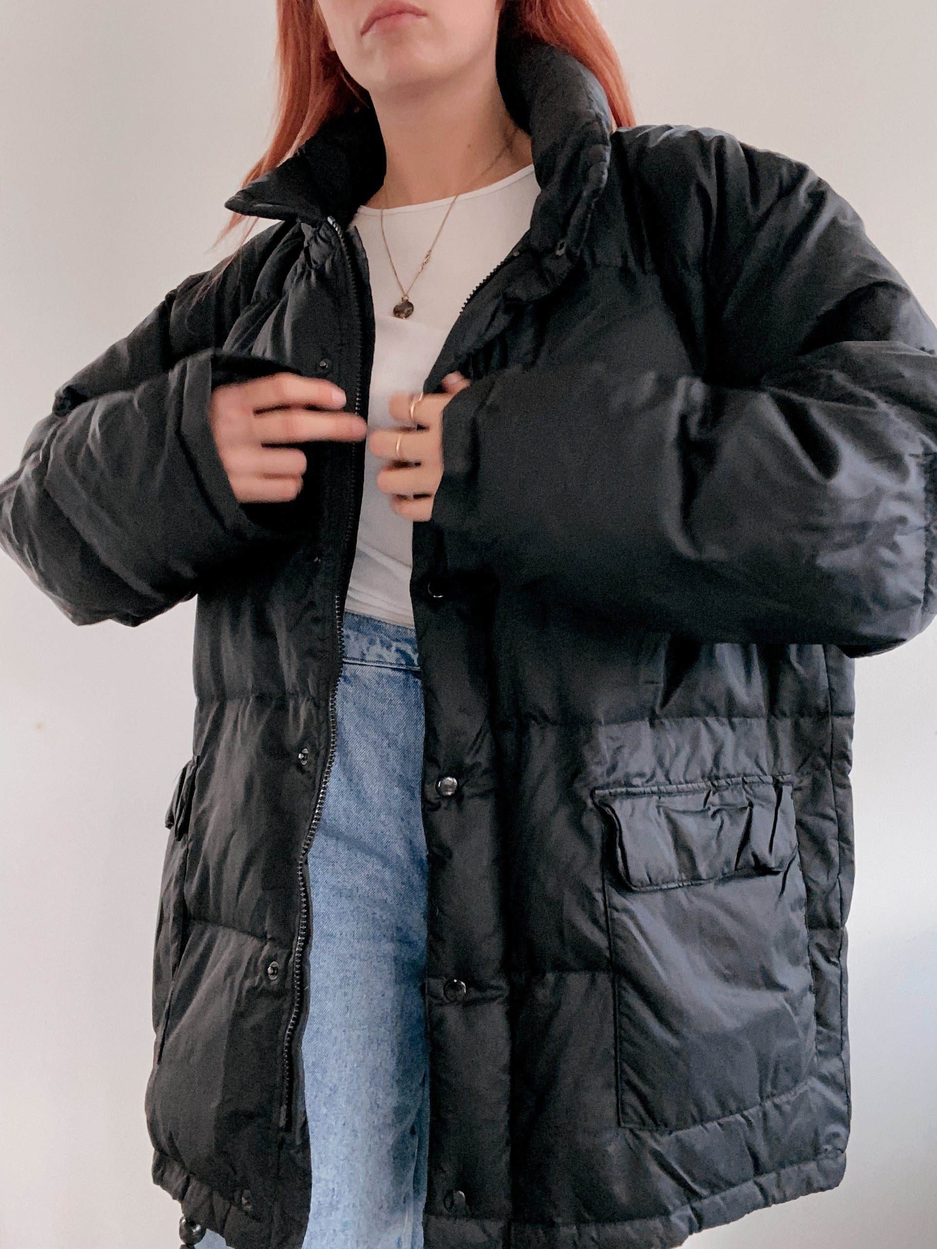 Veste doudoune vintage en plume noire L