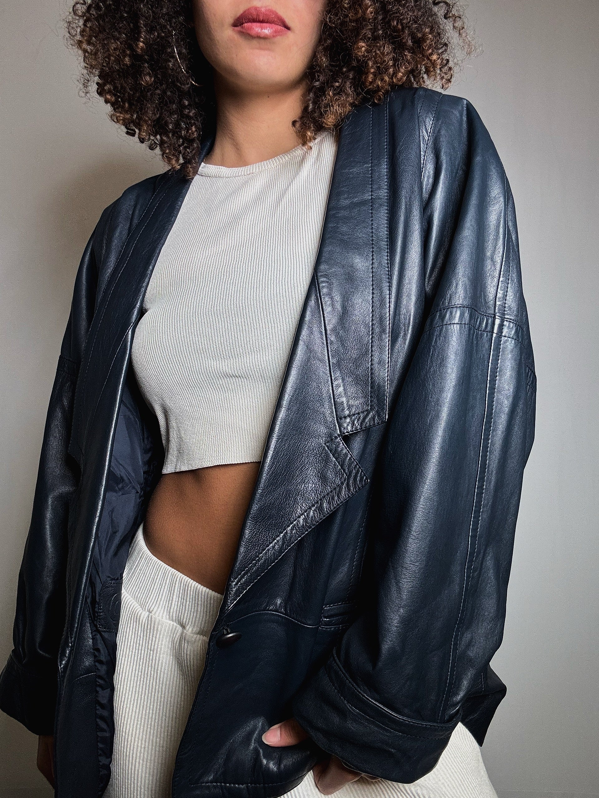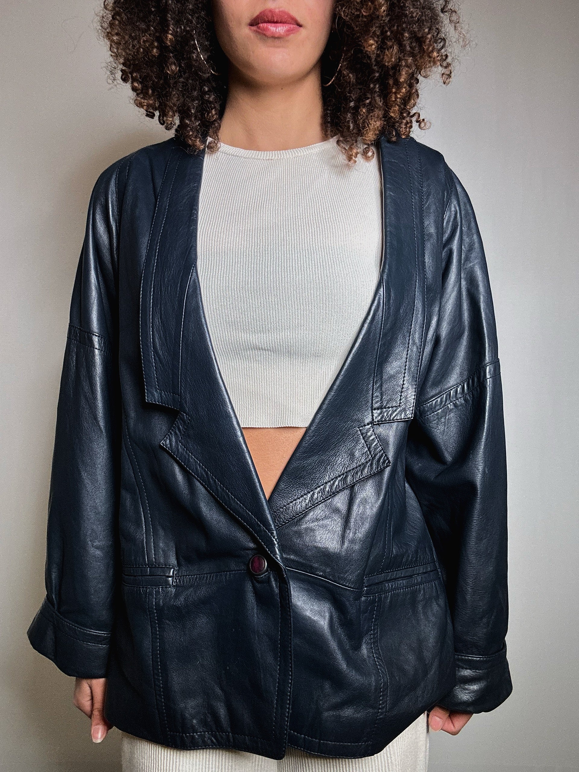 Veste en cuir bleue M/L vintage
