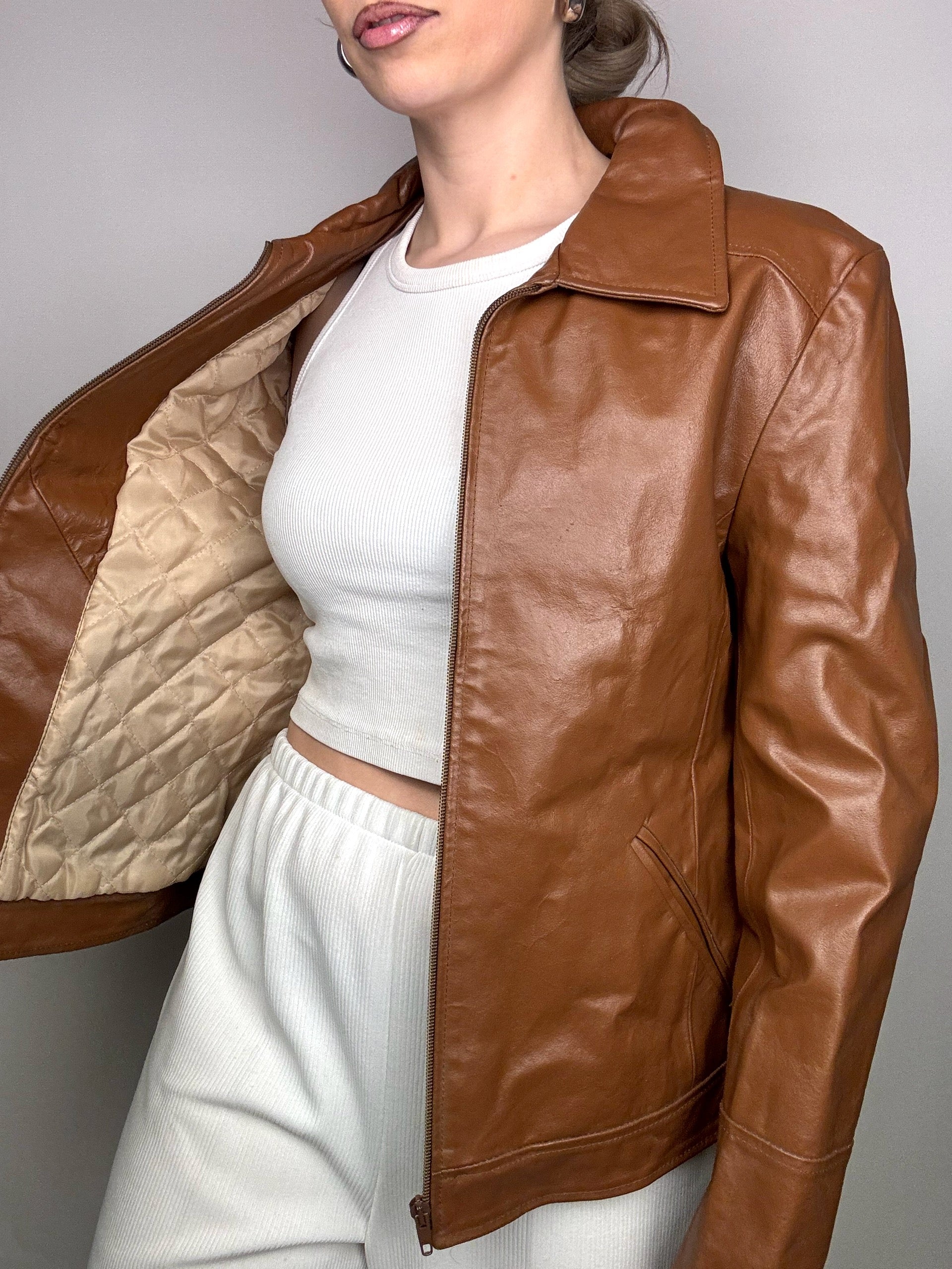 Veste en cuir camel M vintage