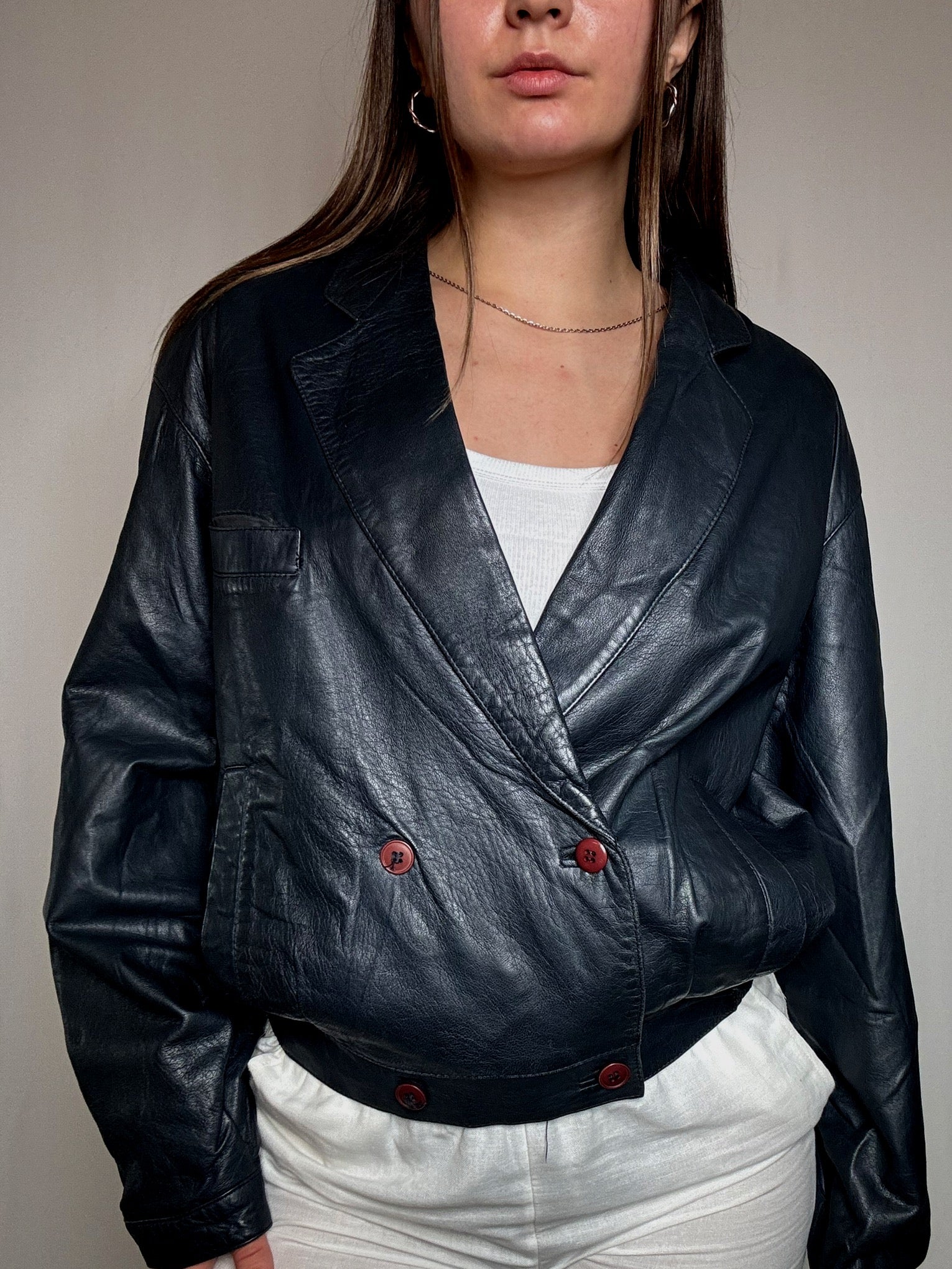Veste en cuir marine L vintage