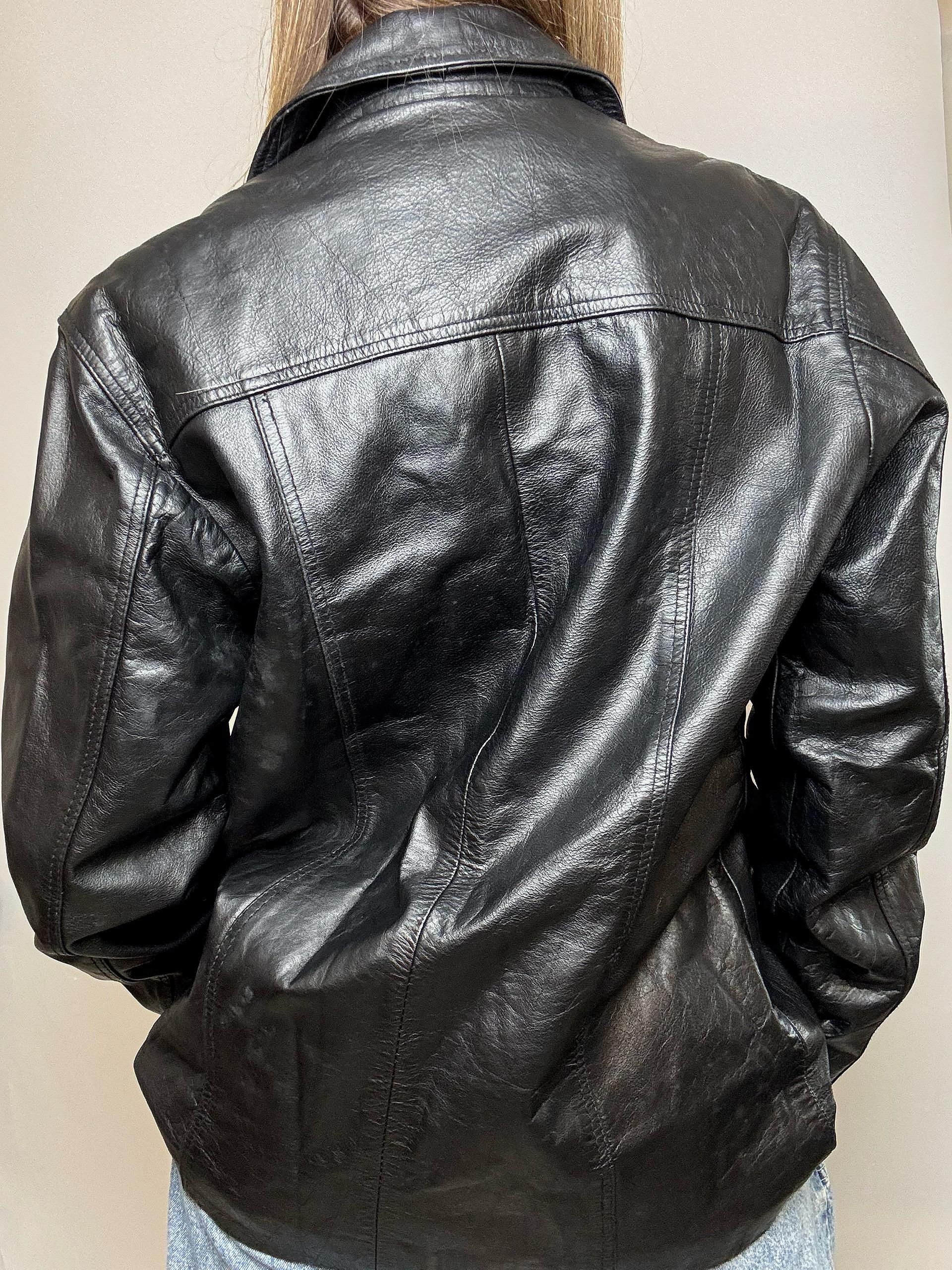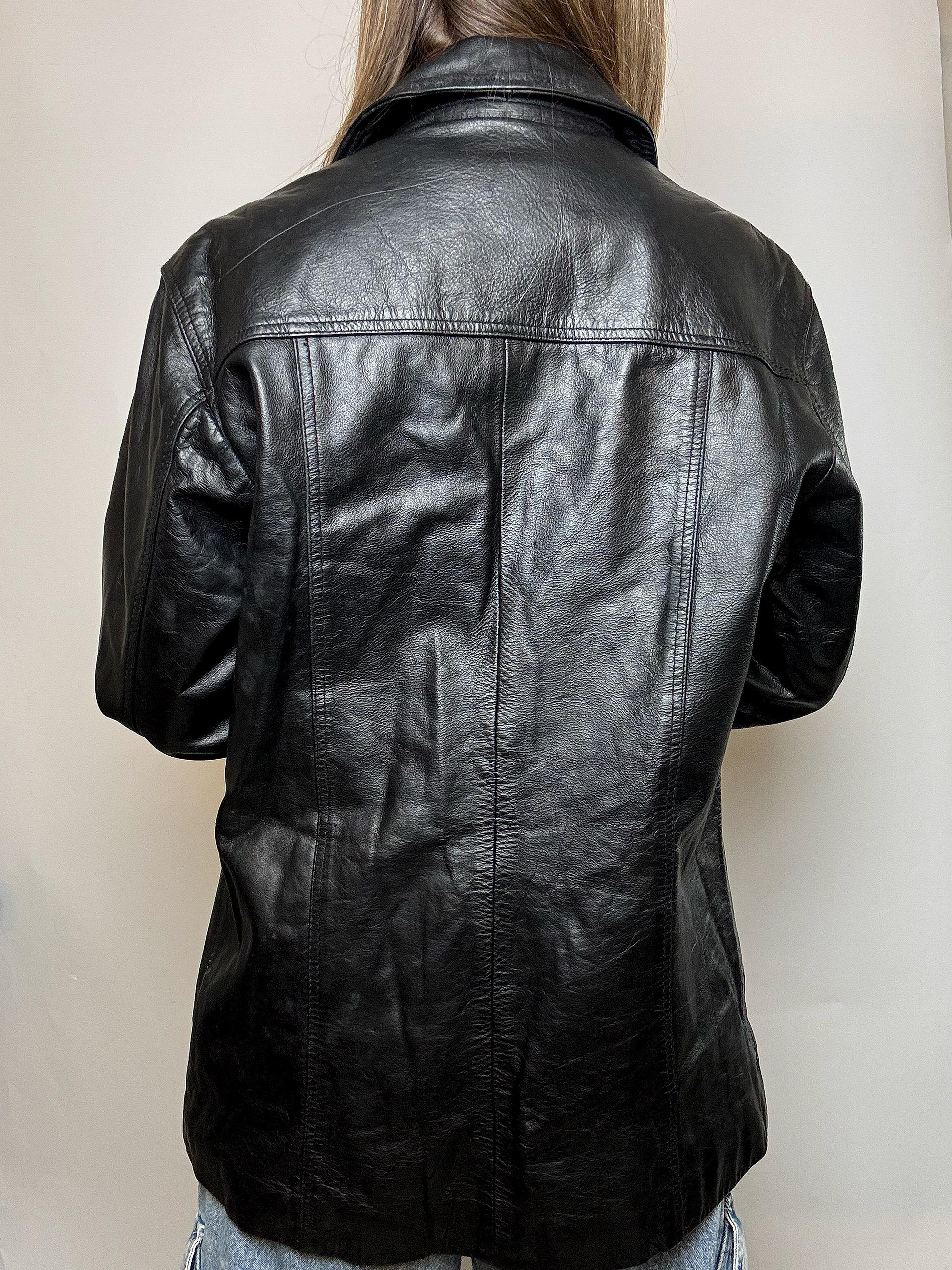 Veste en cuir mi-longue vintage noire M